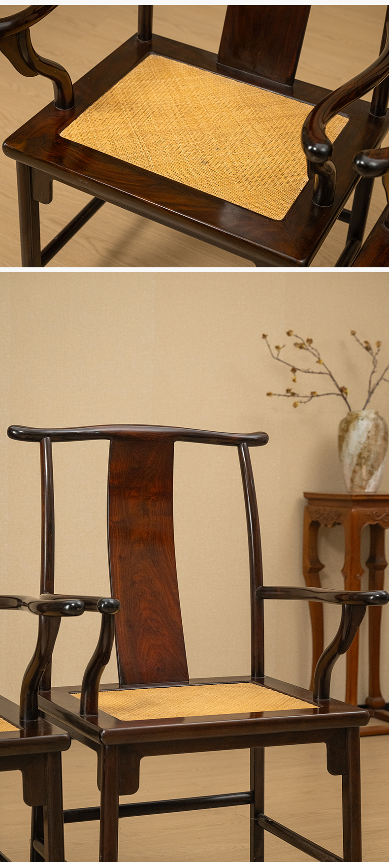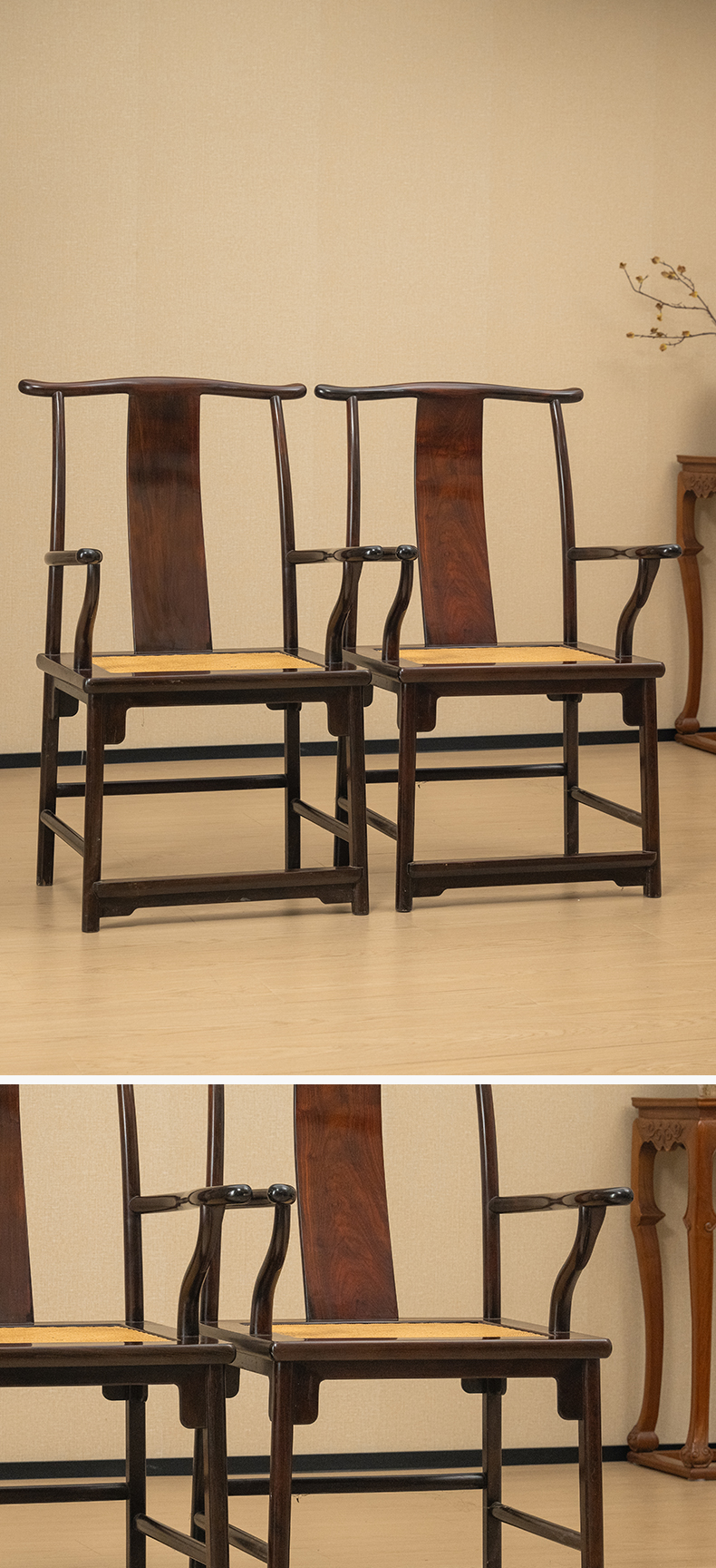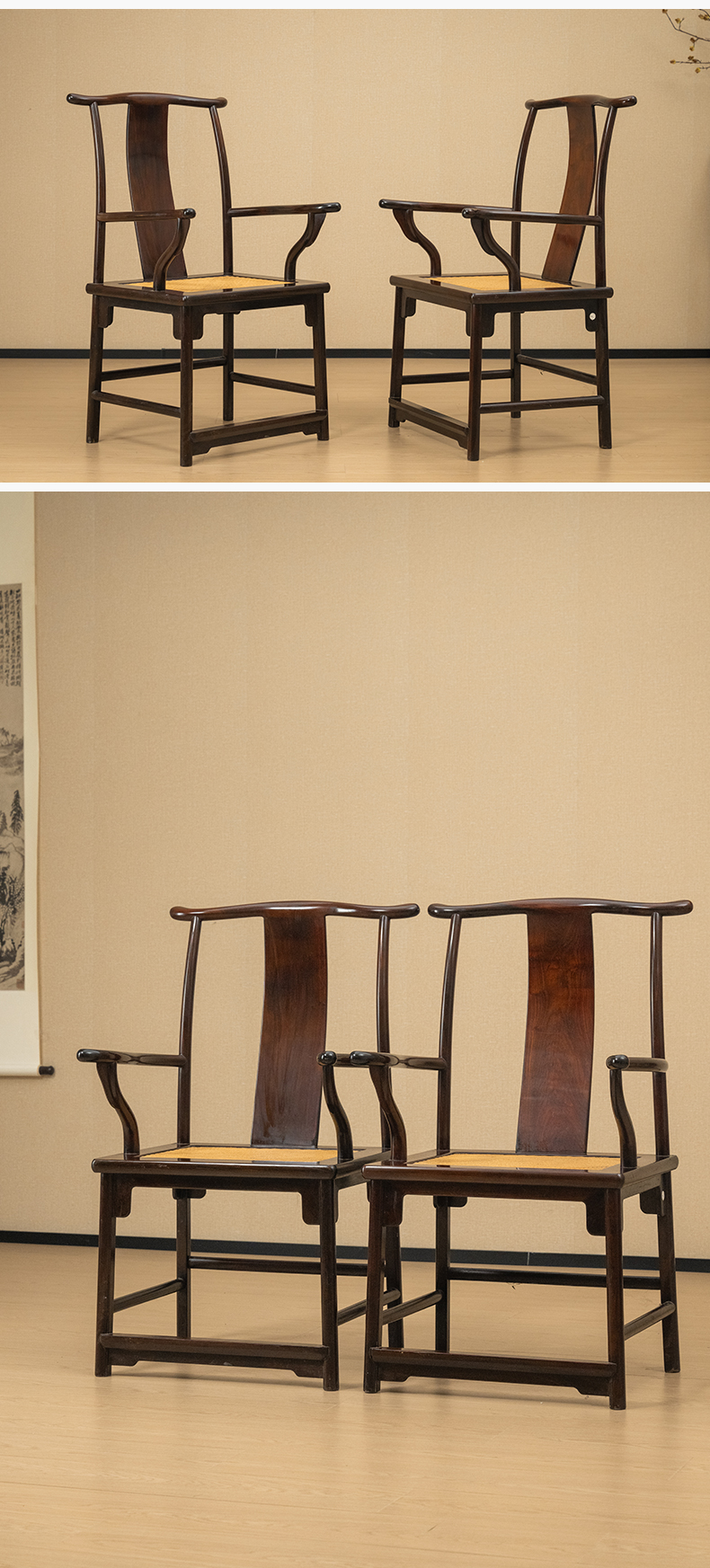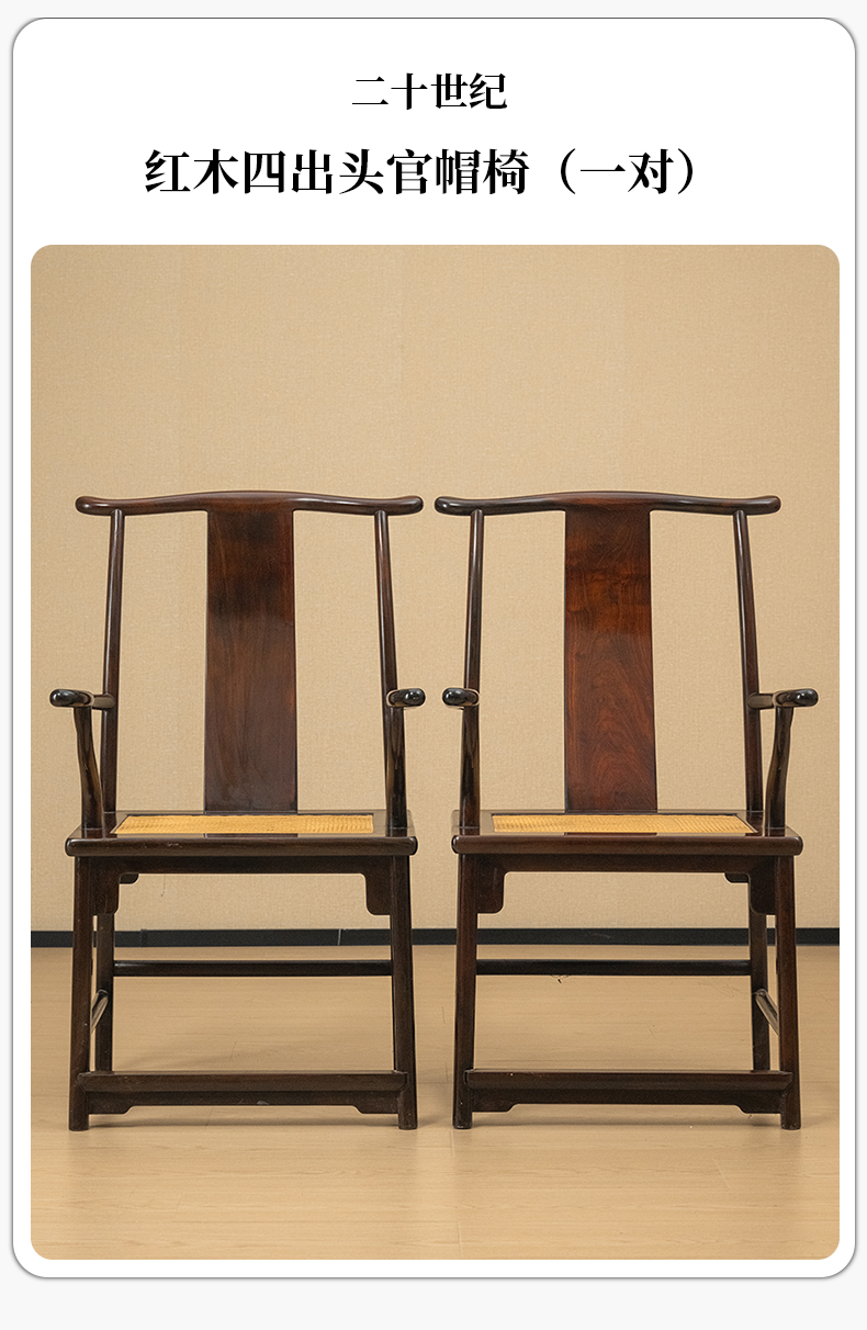二十世纪 红木四出头官帽椅(一对)