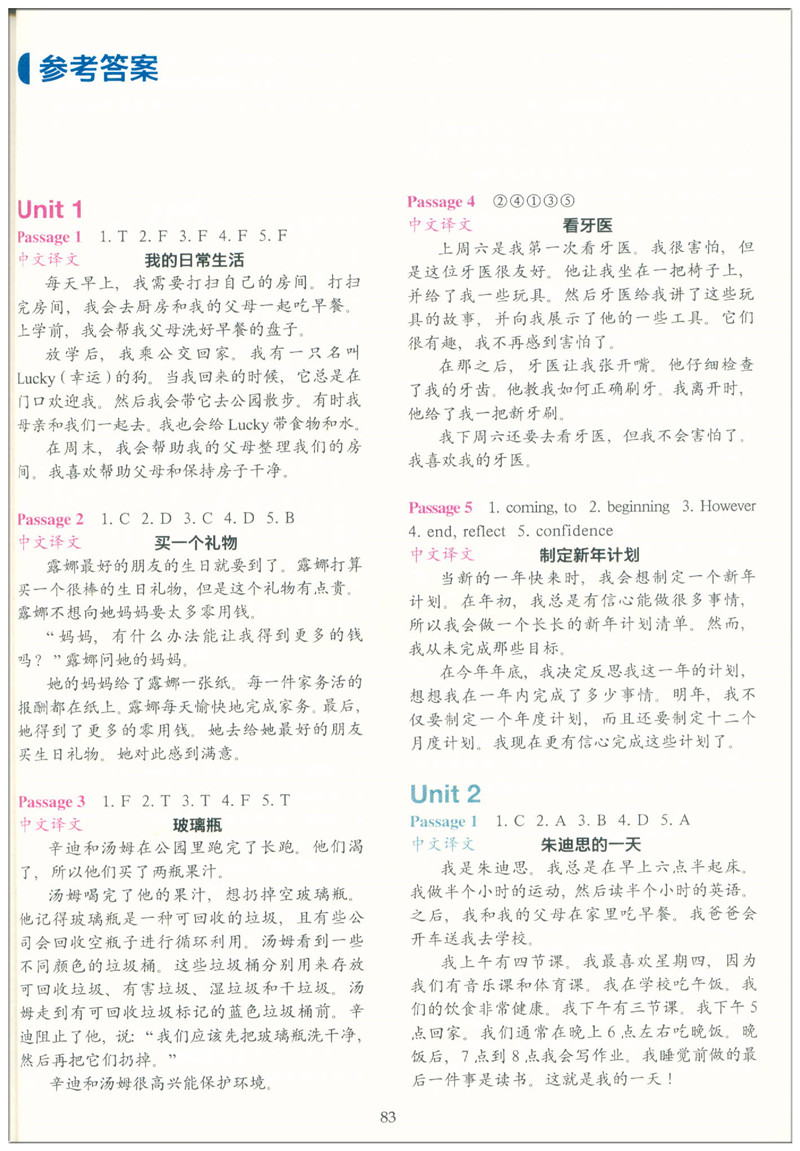 小学英语阅读训练100篇5年级】(三年级起点)英语阅读理解专项训练
