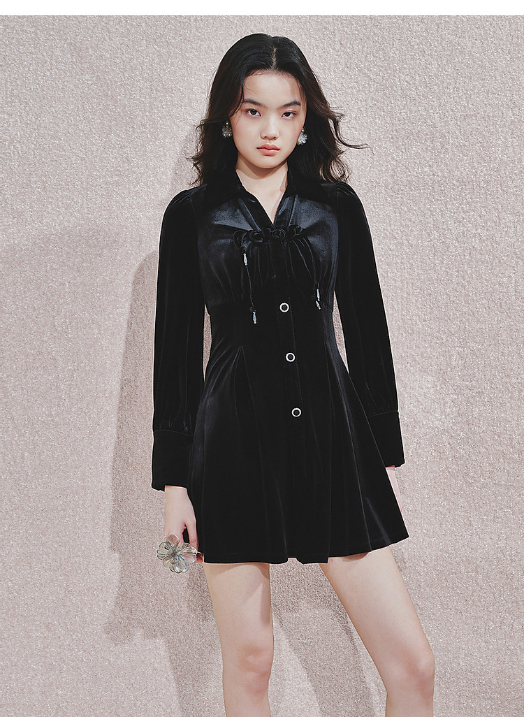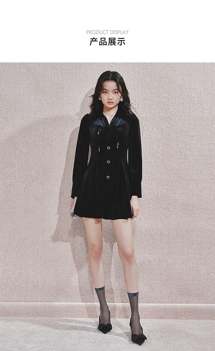 MAXRIENY法式复古感连衣裙新经典赫本风裙子收腰修身