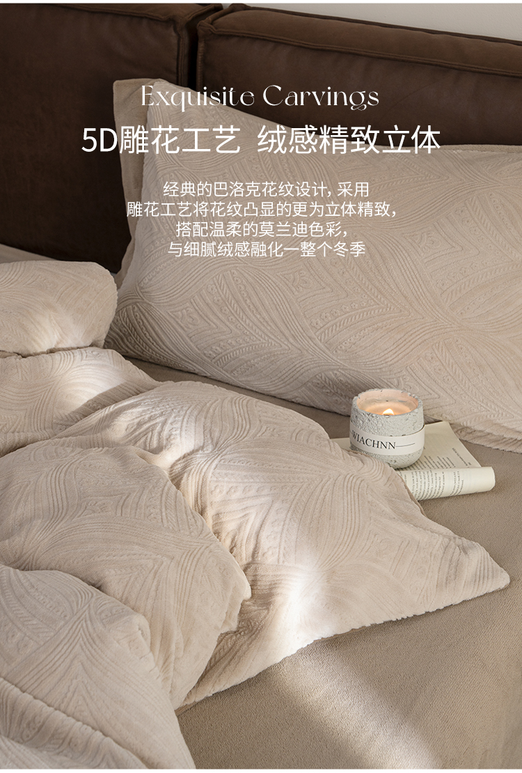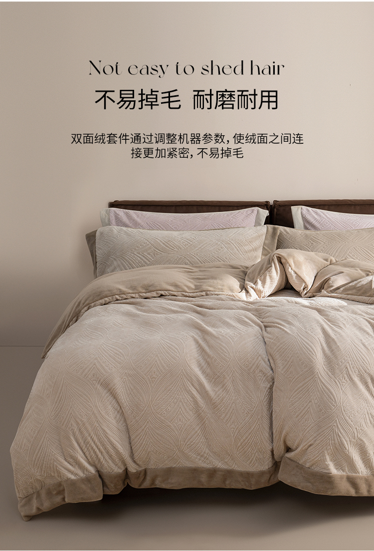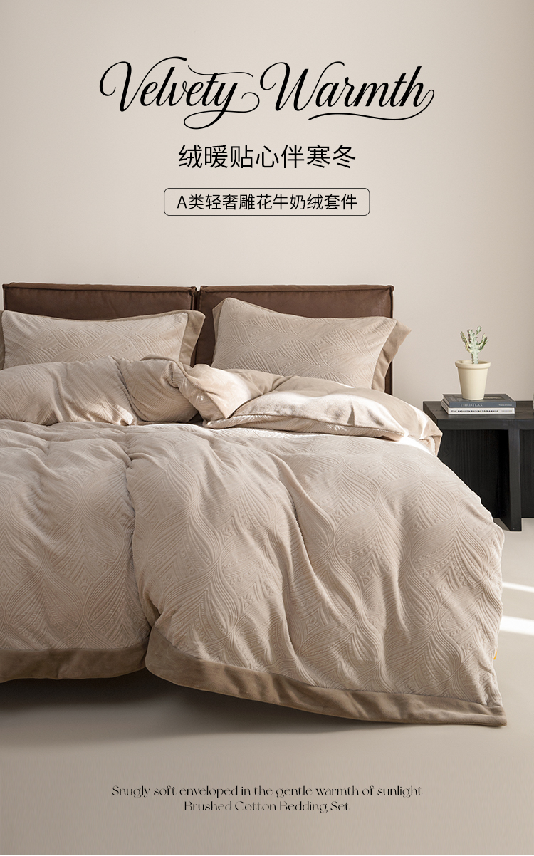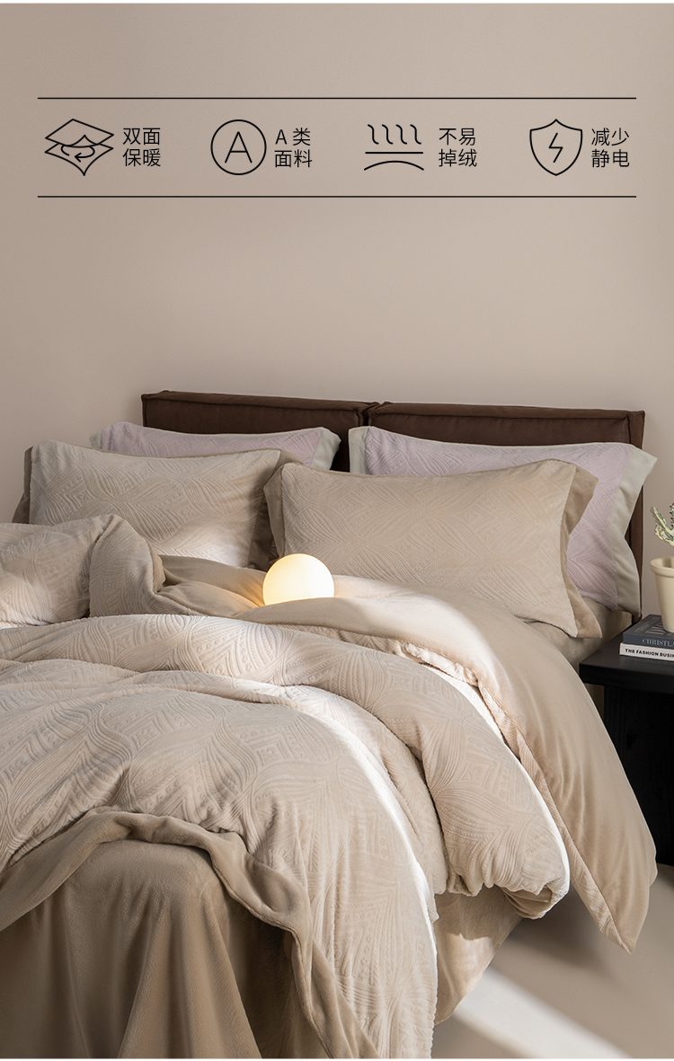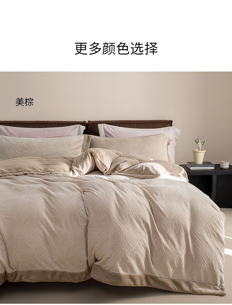 【预售-12月29日配送】佳丽斯A类雕花牛奶绒四件套(床单款-美棕)/1套(被套200*230cm,适合1.5/1.8m床)