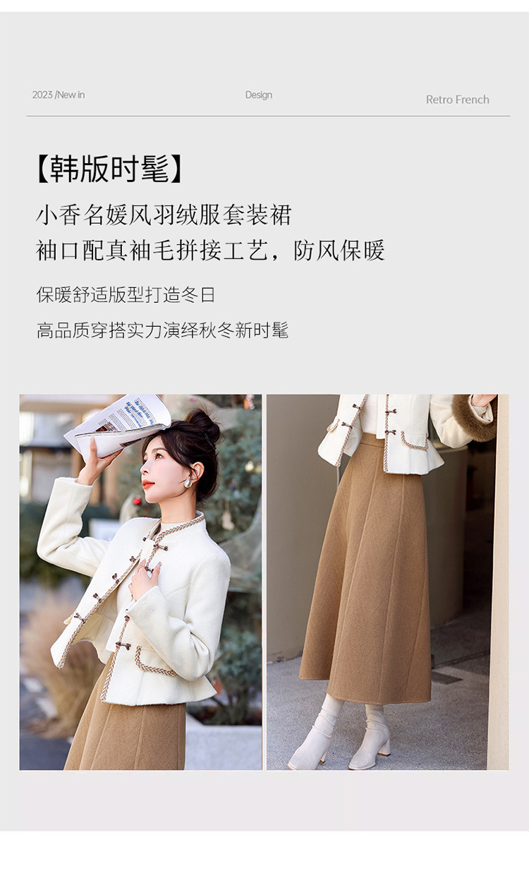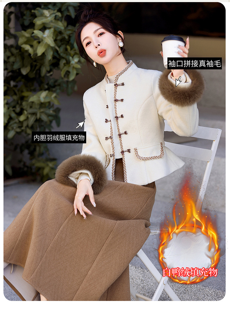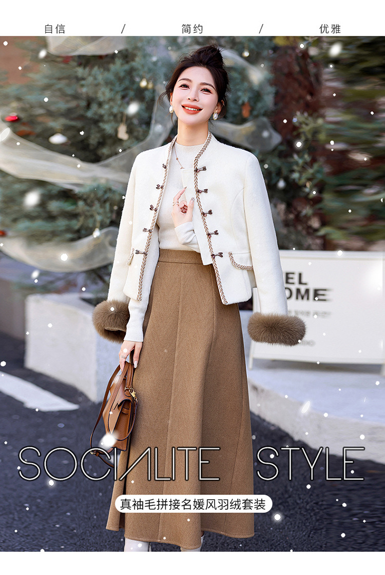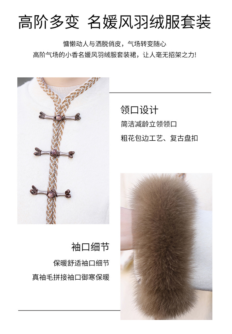 MDLMJY8828 新中式国风羽绒服套装女冬新款毛呢时尚狐狸毛白鸭绒两件套