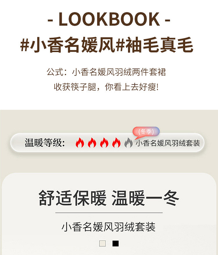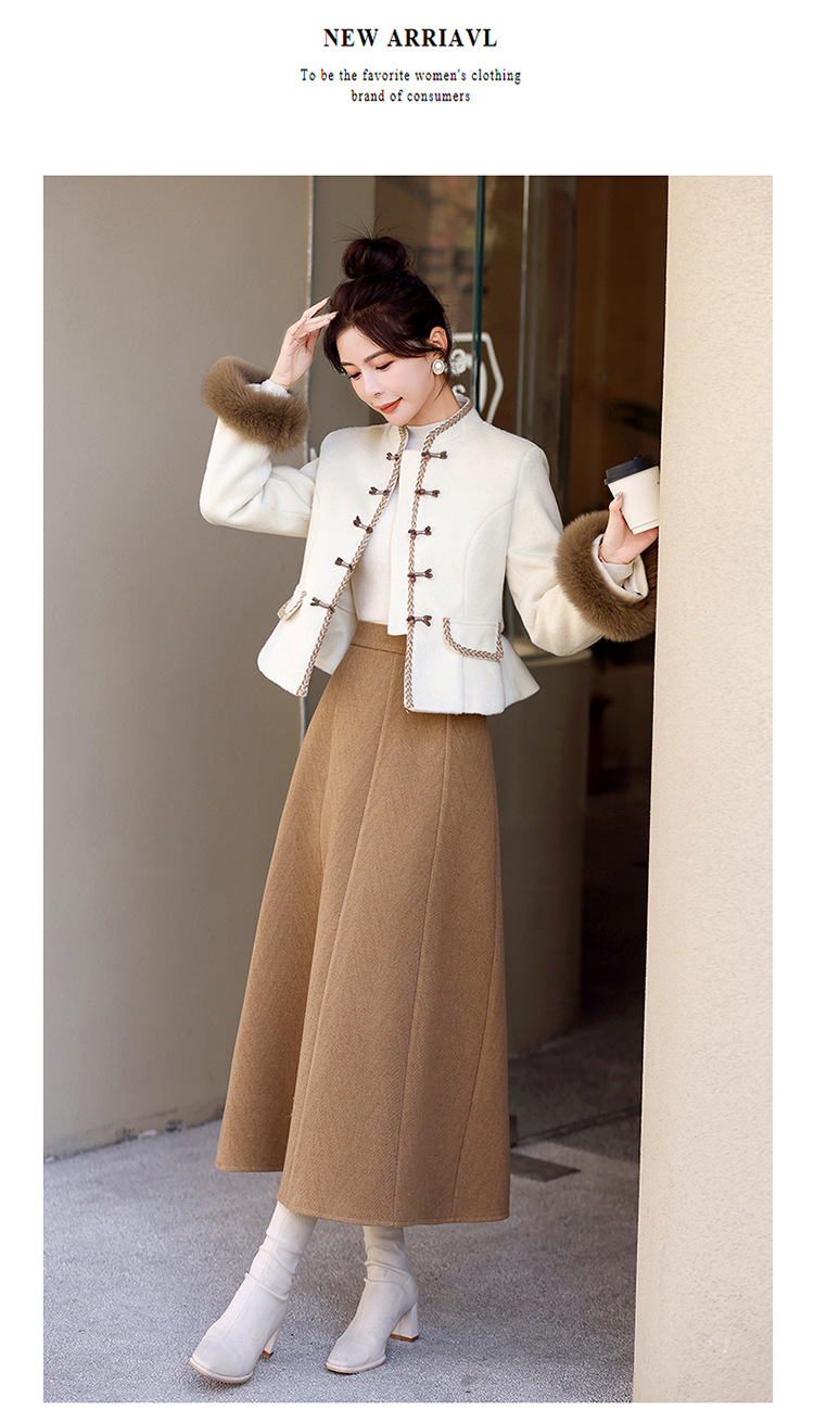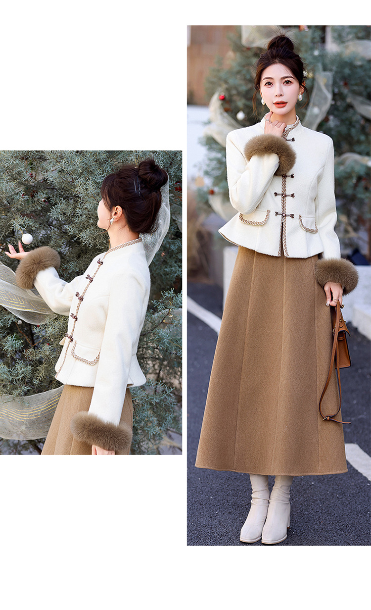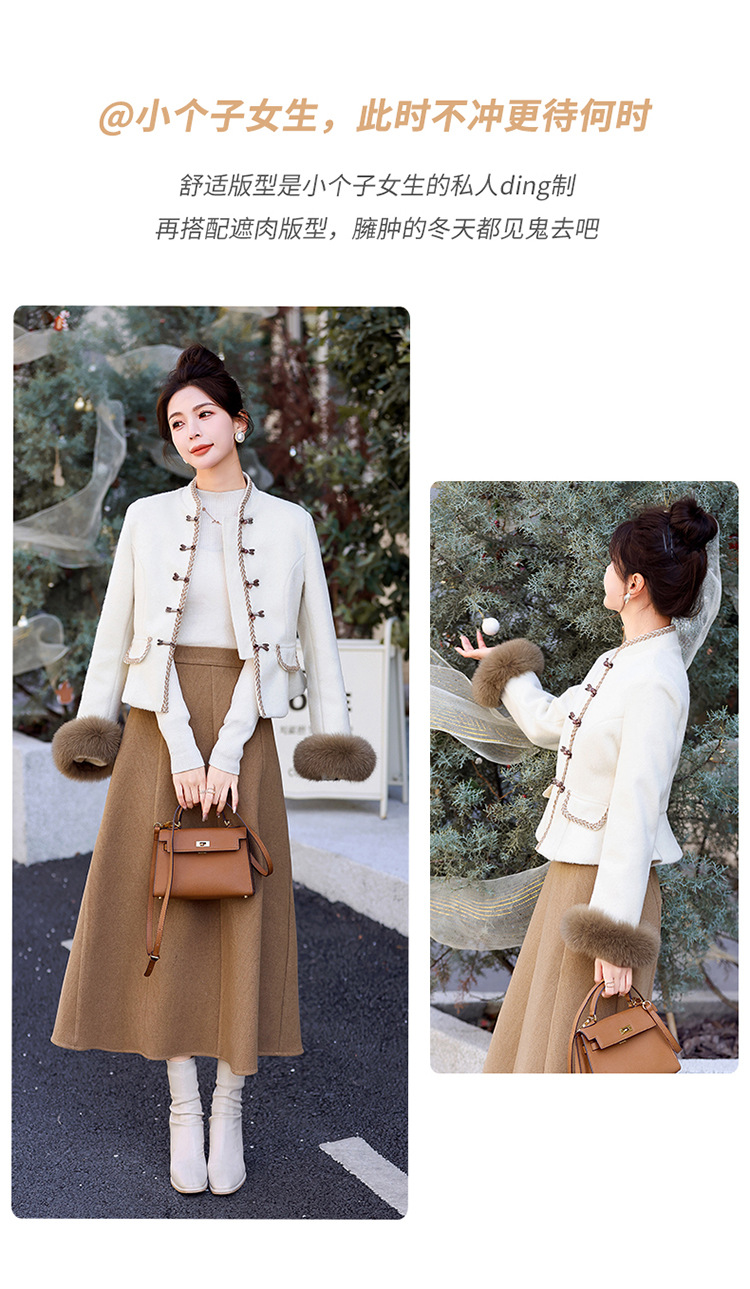 MDLMJY8828 新中式国风羽绒服套装女冬新款毛呢时尚狐狸毛白鸭绒两件套