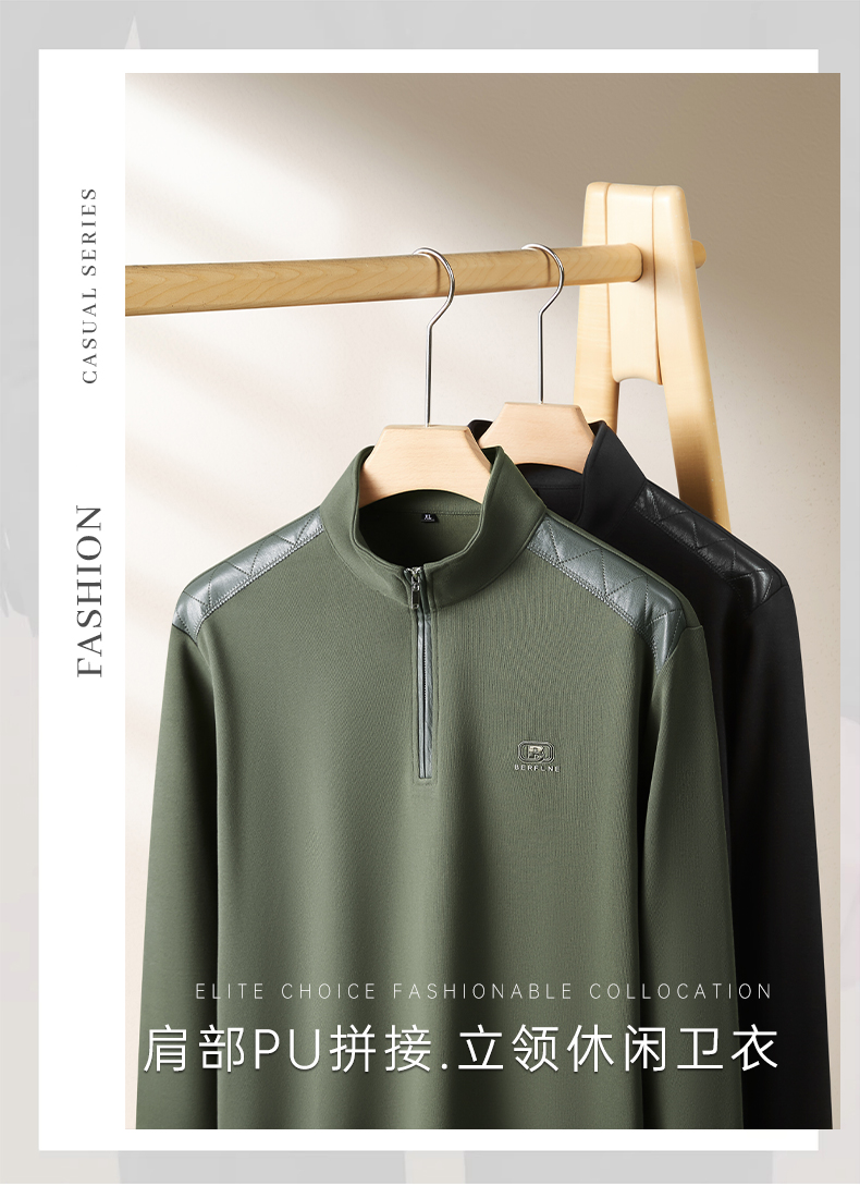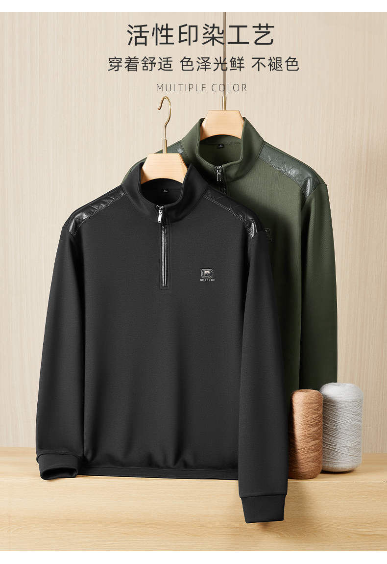 【DDP】大依优型大码男装卫衣pu拼接立领休闲长袖卫衣半拉链商务品质新款加肥加大码气质宽松