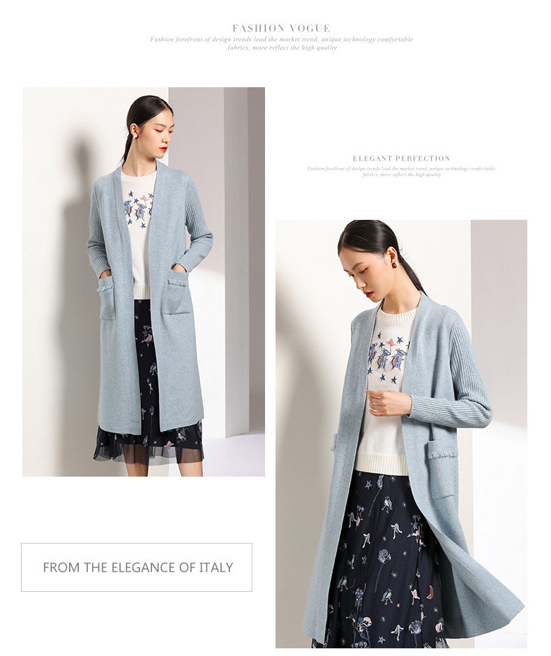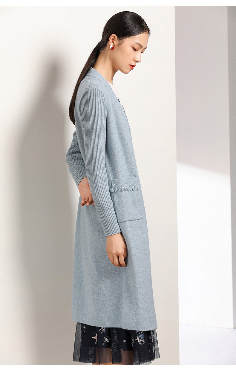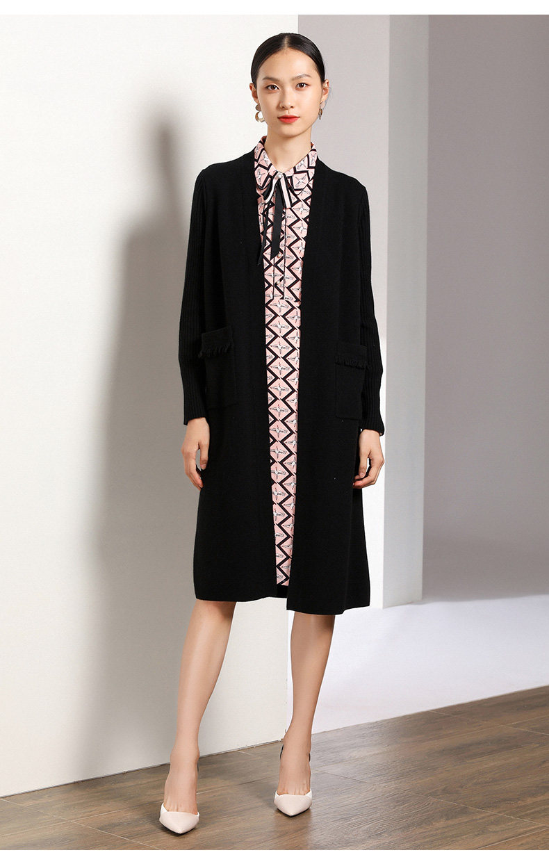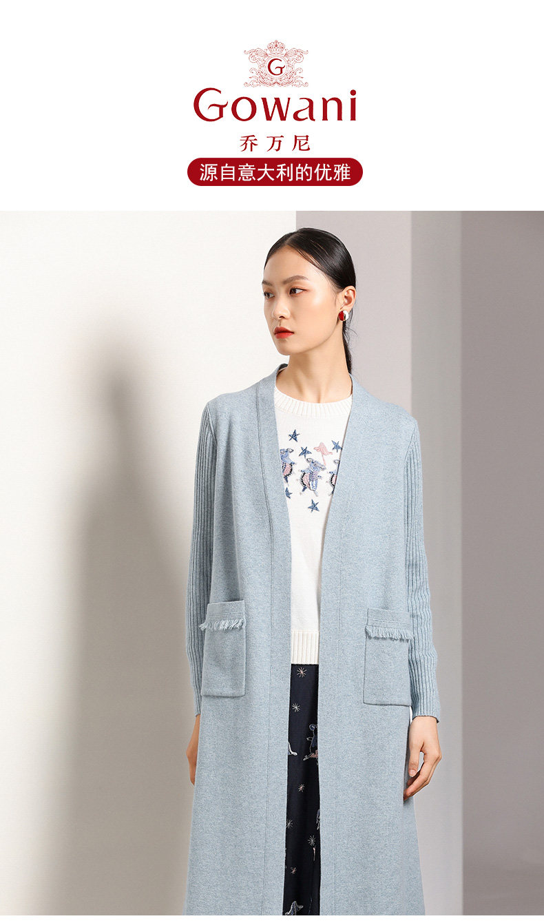 【两色可选】乔万尼春秋装修身外搭外套长袖羊毛针织开衫过膝长款EN3M398