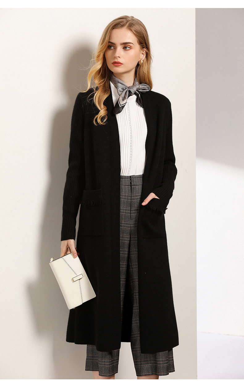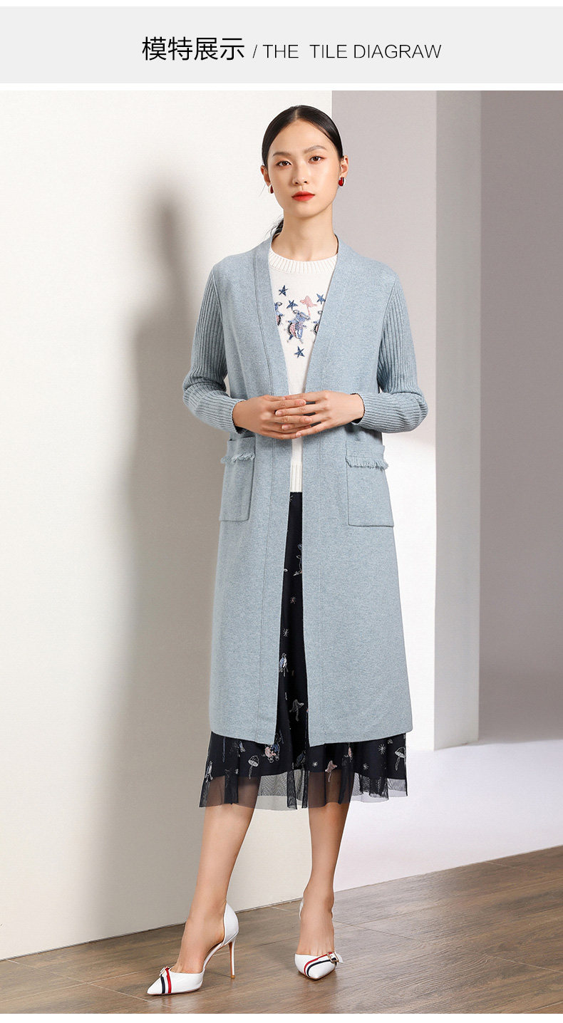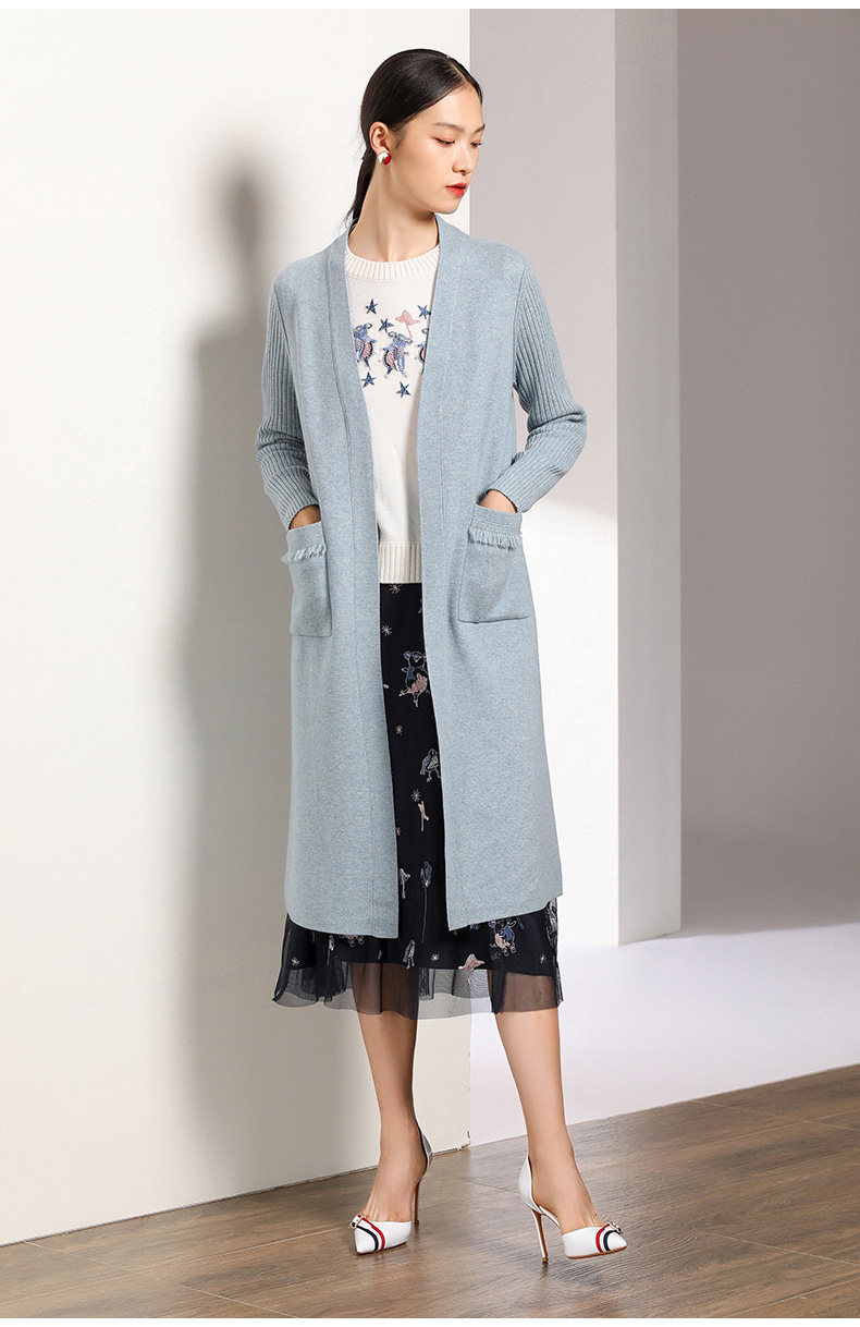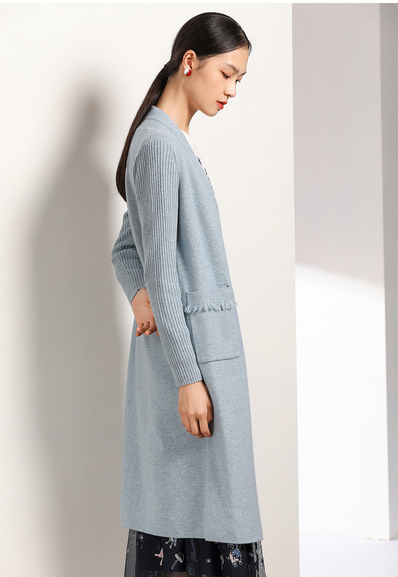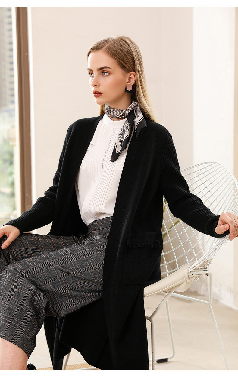 【两色可选】乔万尼春秋装修身外搭外套长袖羊毛针织开衫过膝长款EN3M398