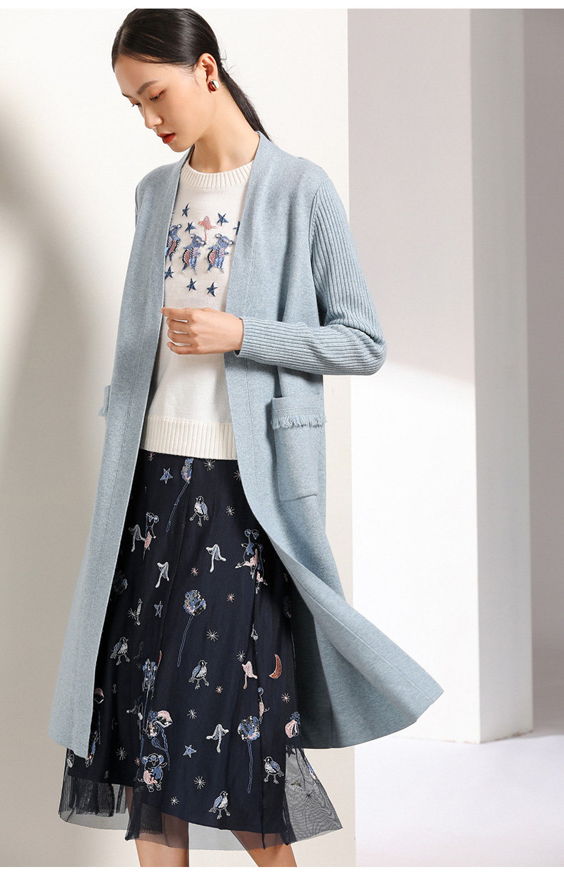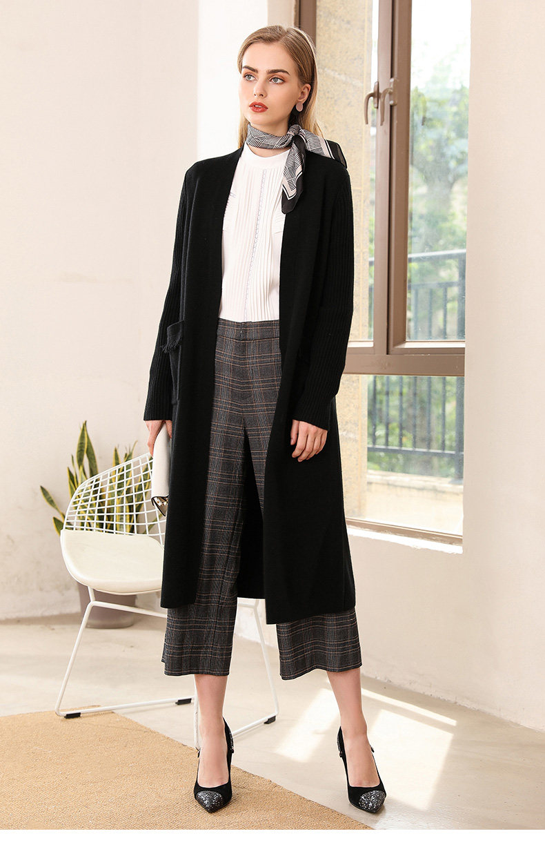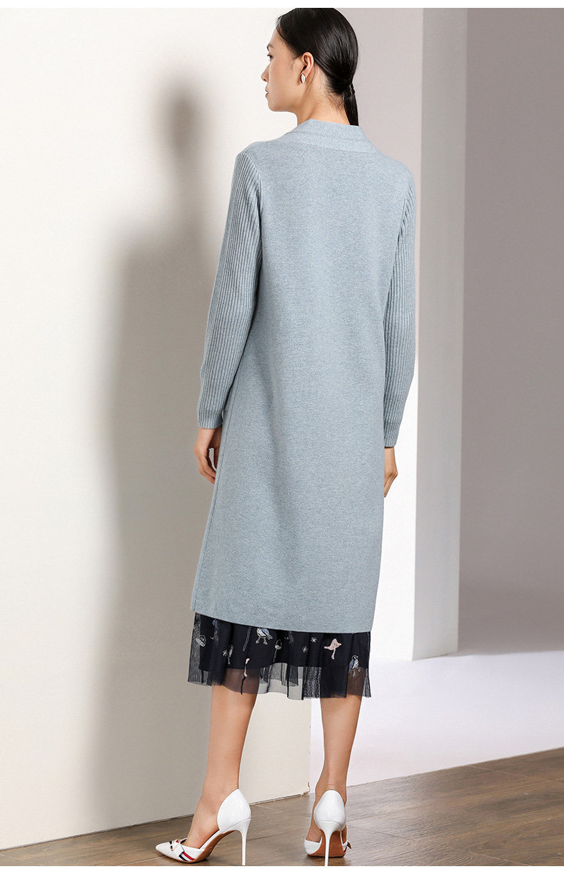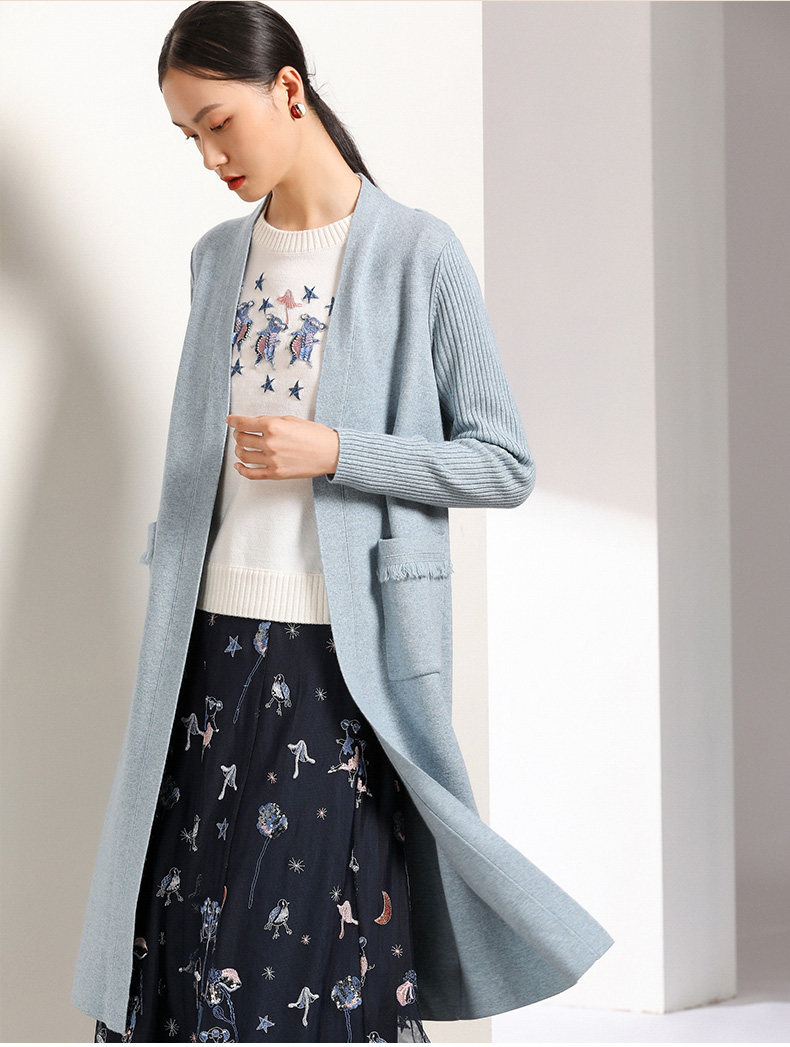 【两色可选】乔万尼春秋装修身外搭外套长袖羊毛针织开衫过膝长款EN3M398