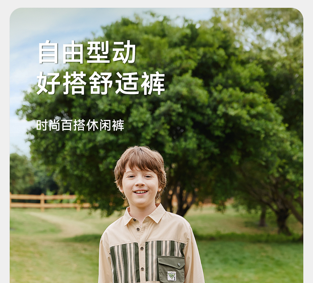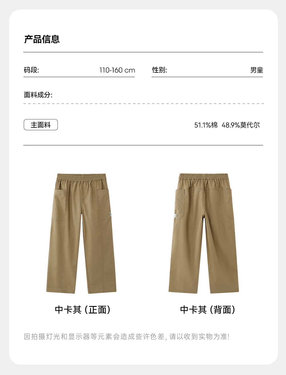 英氏儿童裤子春夏男童直筒裤休闲百搭中大童帅气长裤2025新款裤子