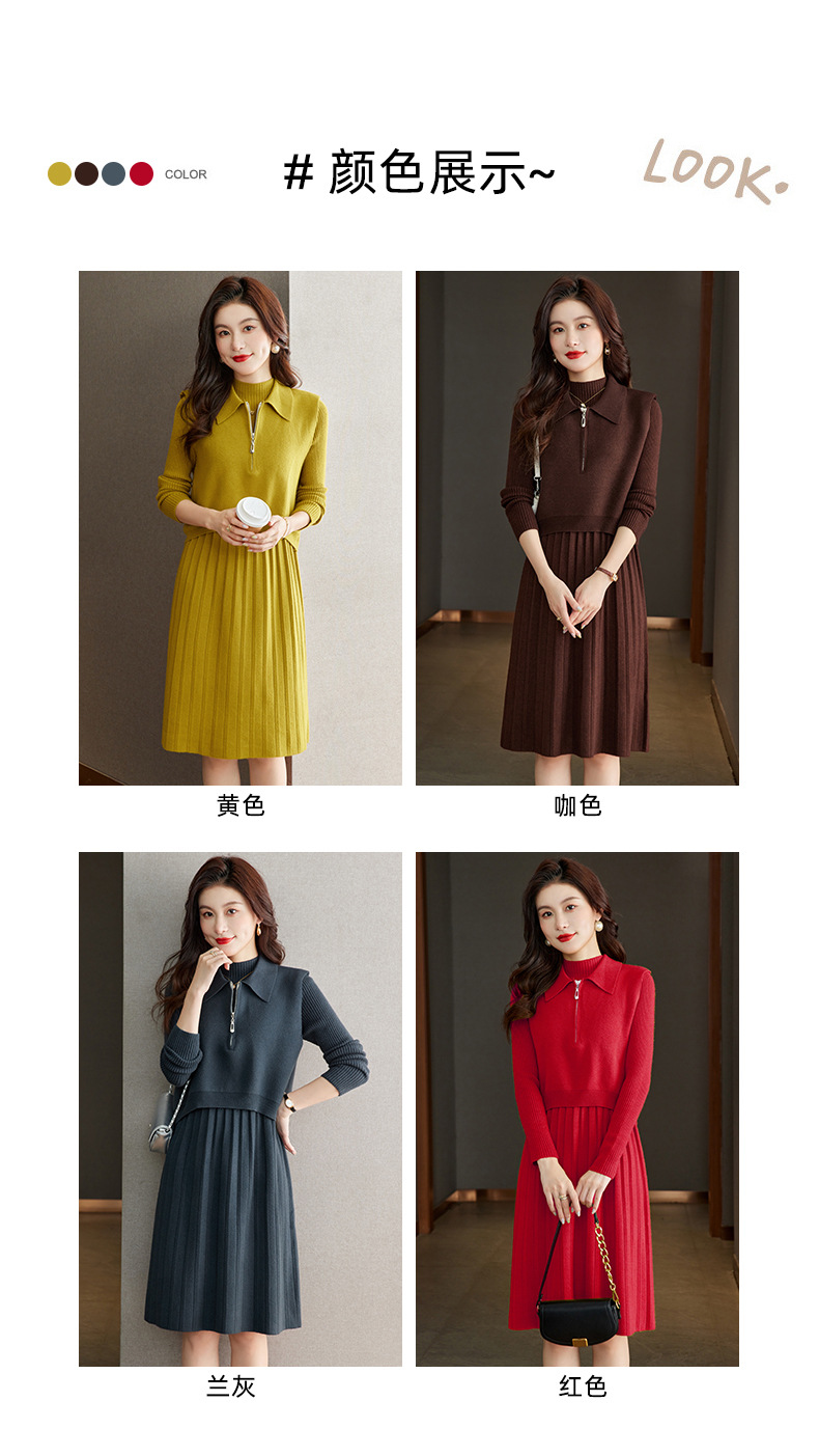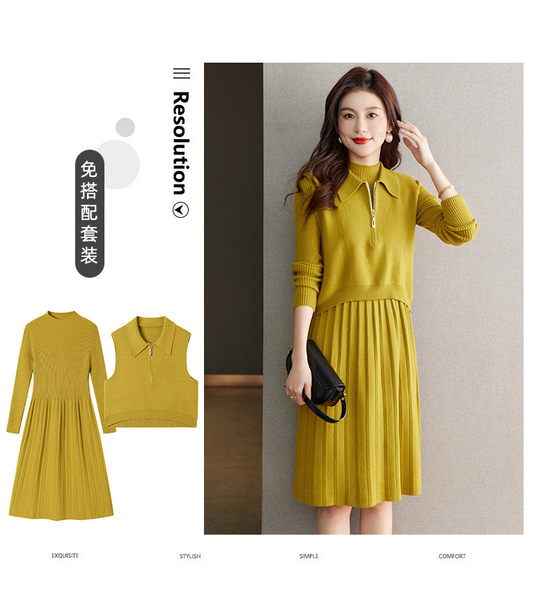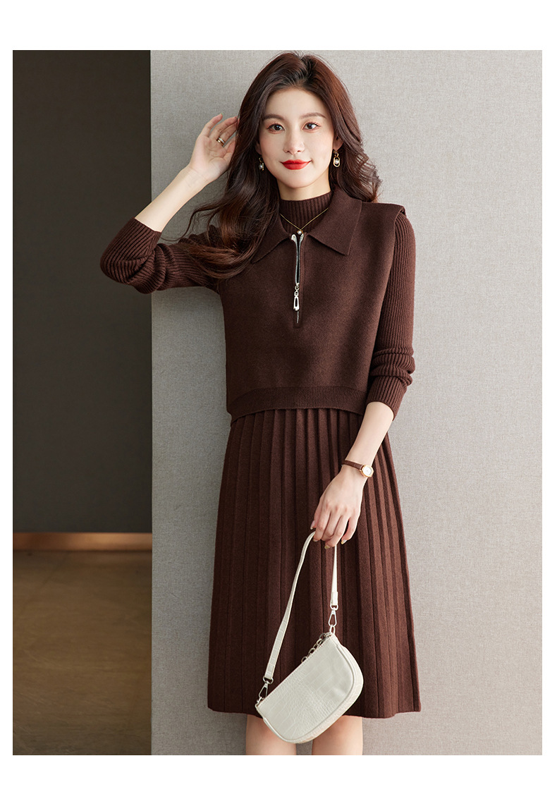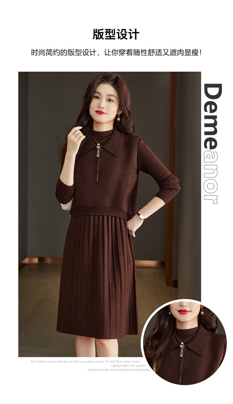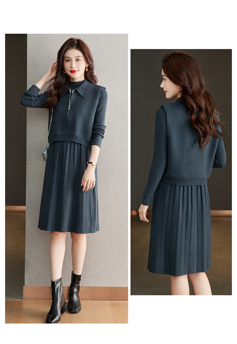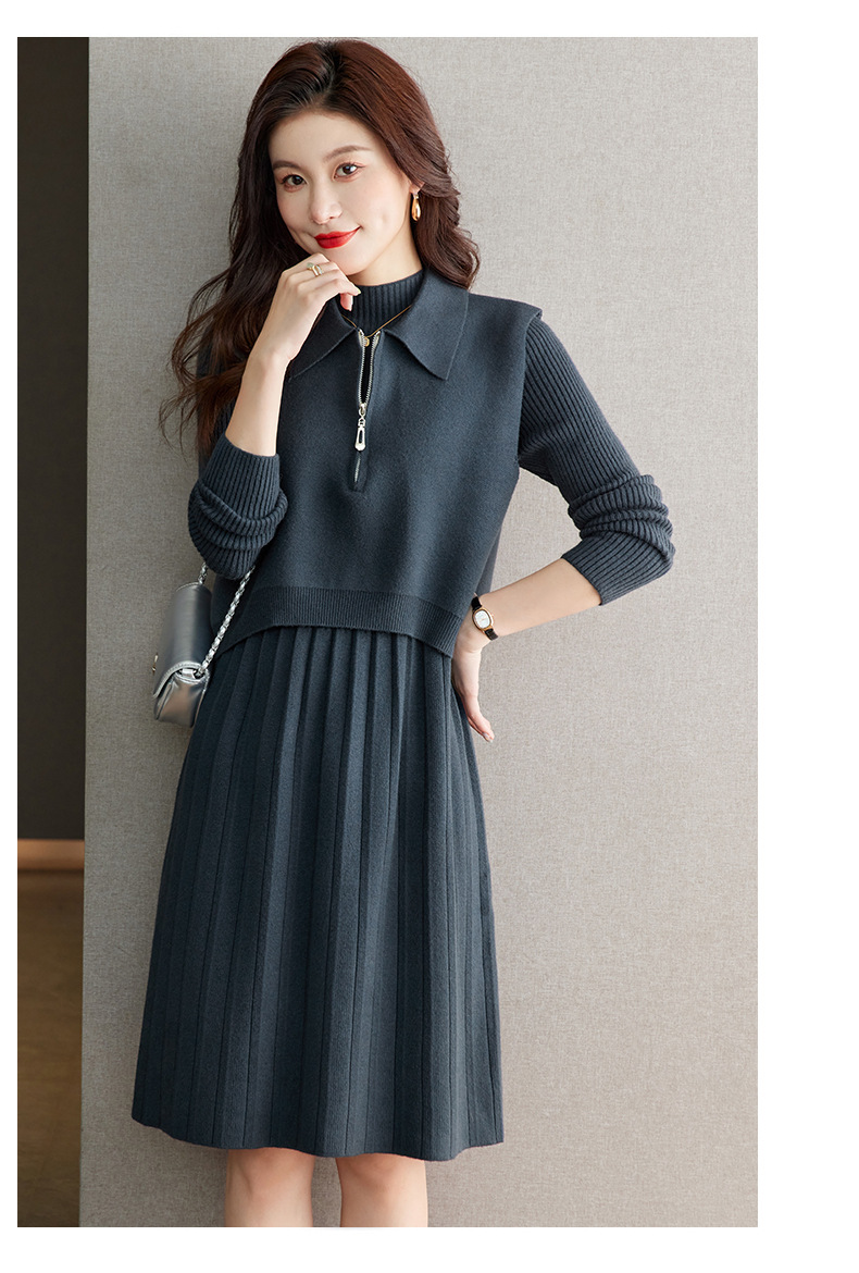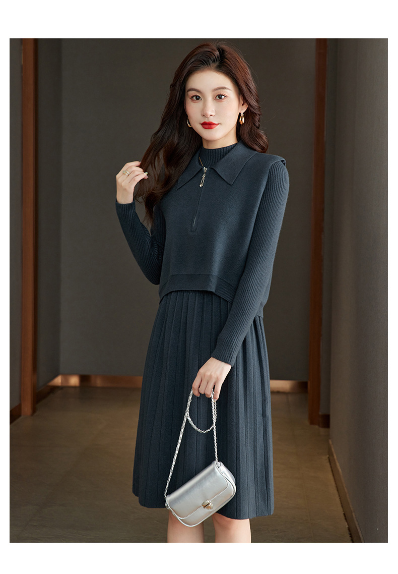 针织连衣裙时尚中长款毛衣两件套CC8416