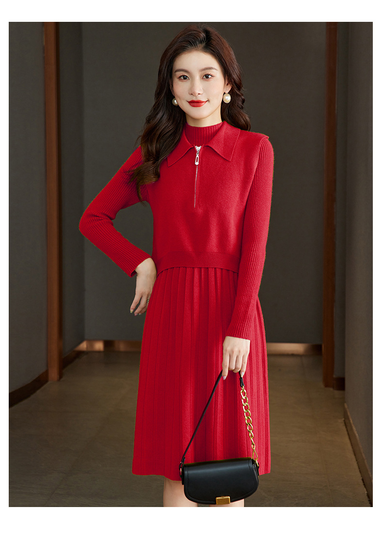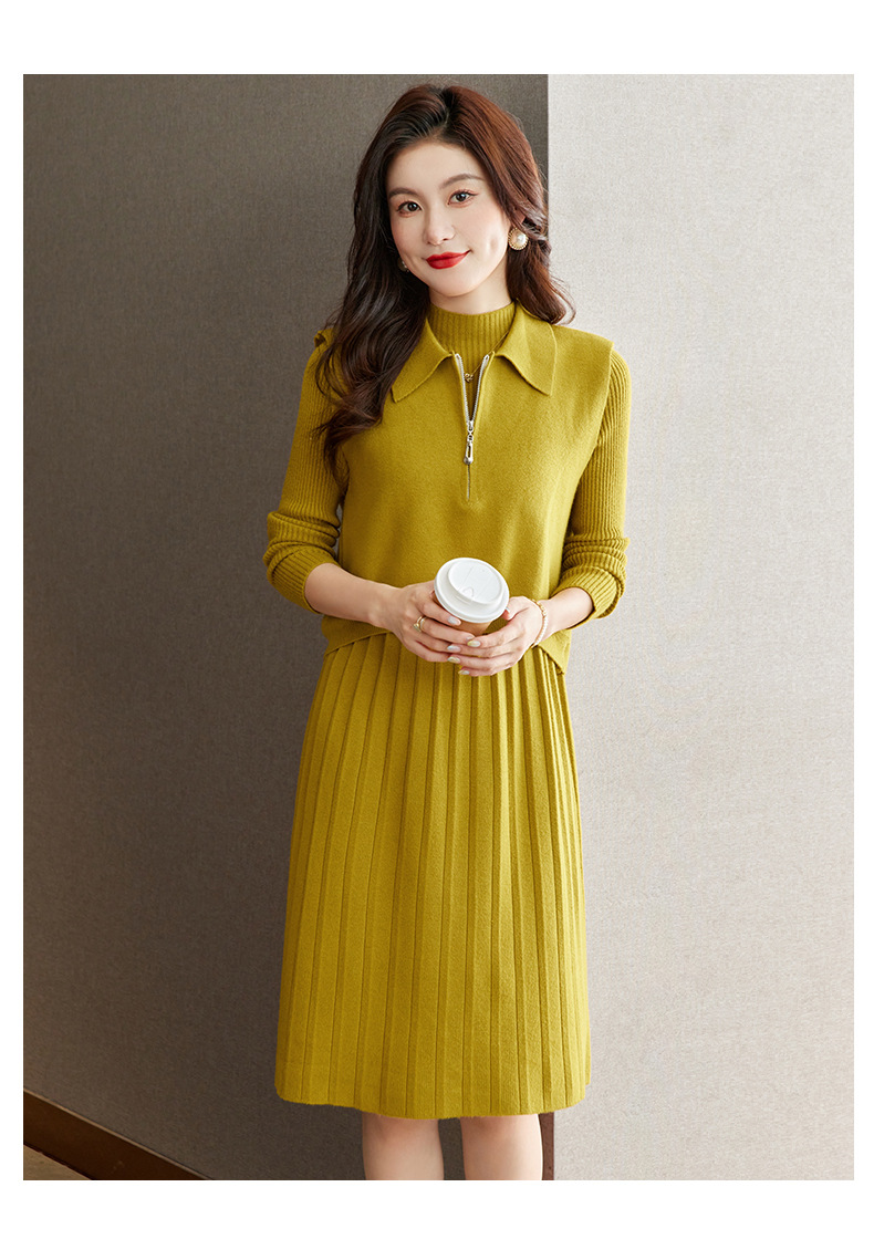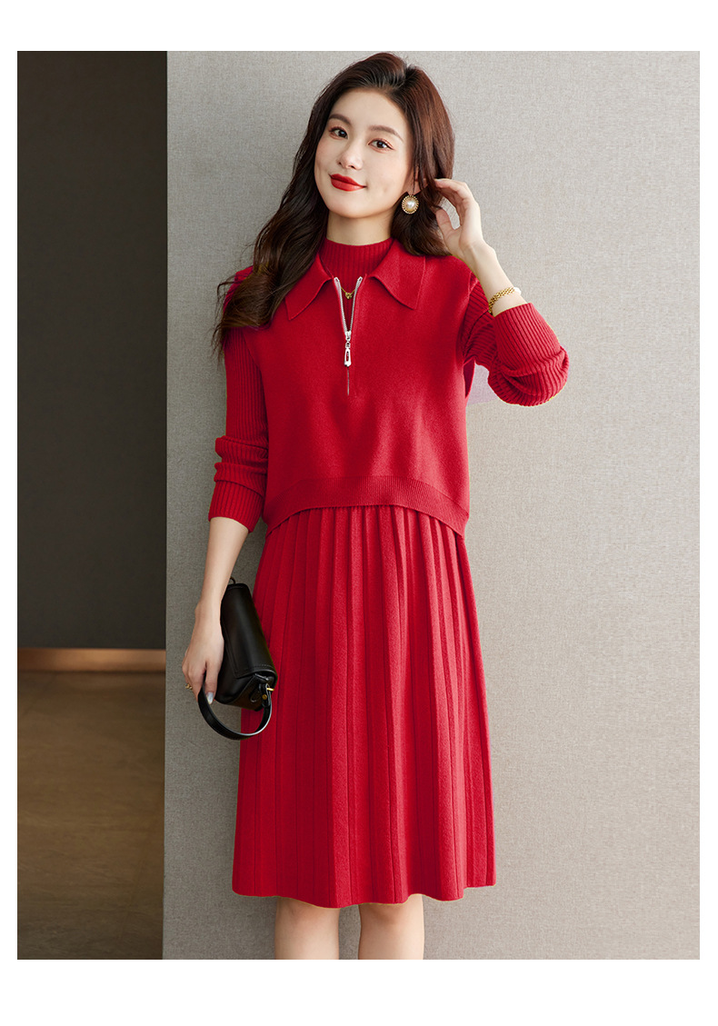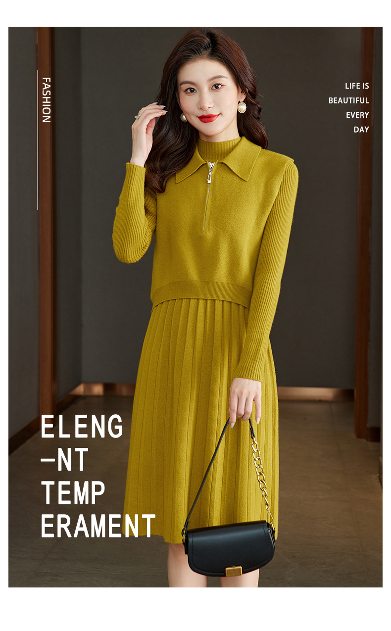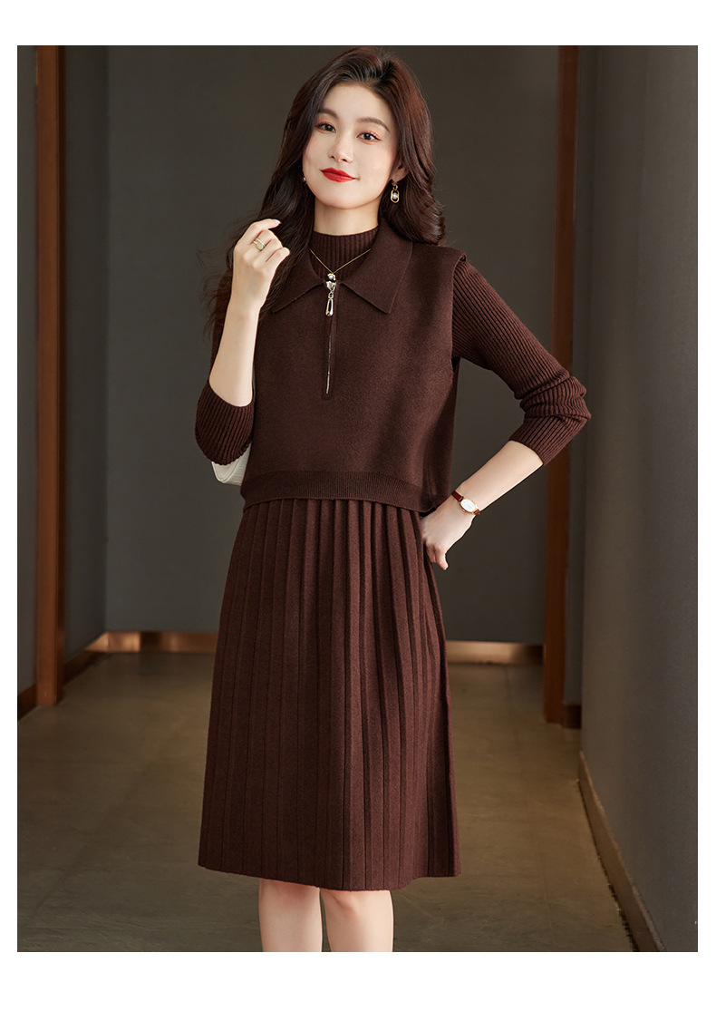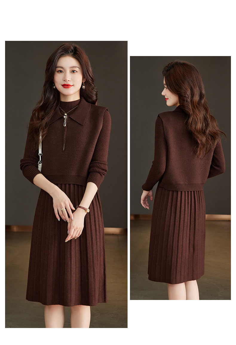 针织连衣裙时尚中长款毛衣两件套CC8416