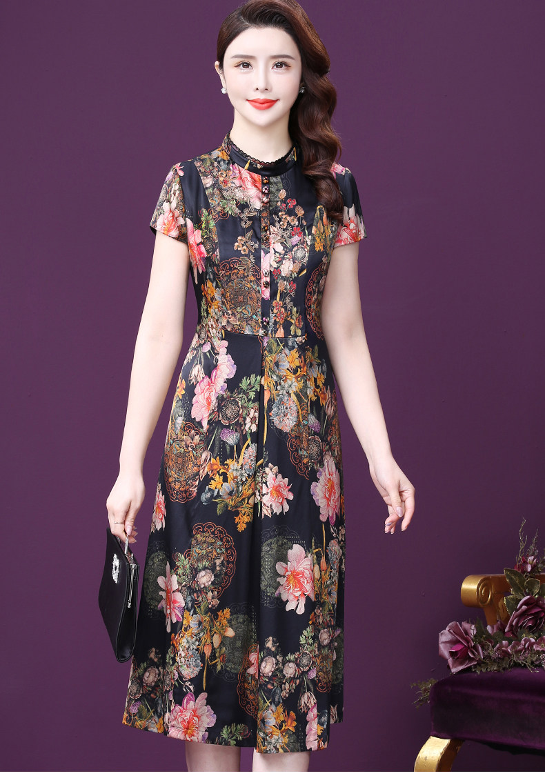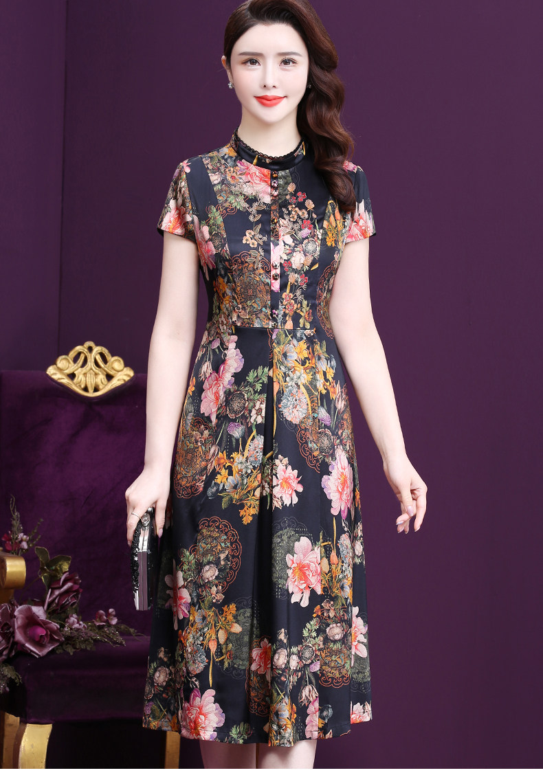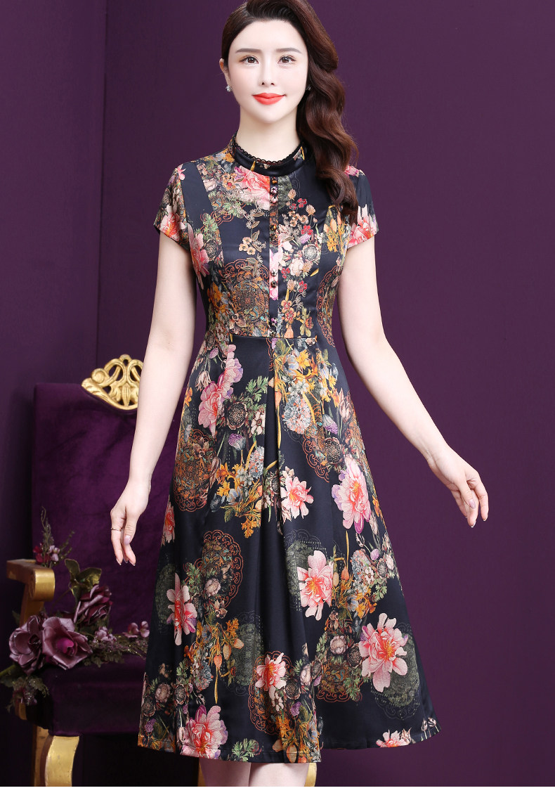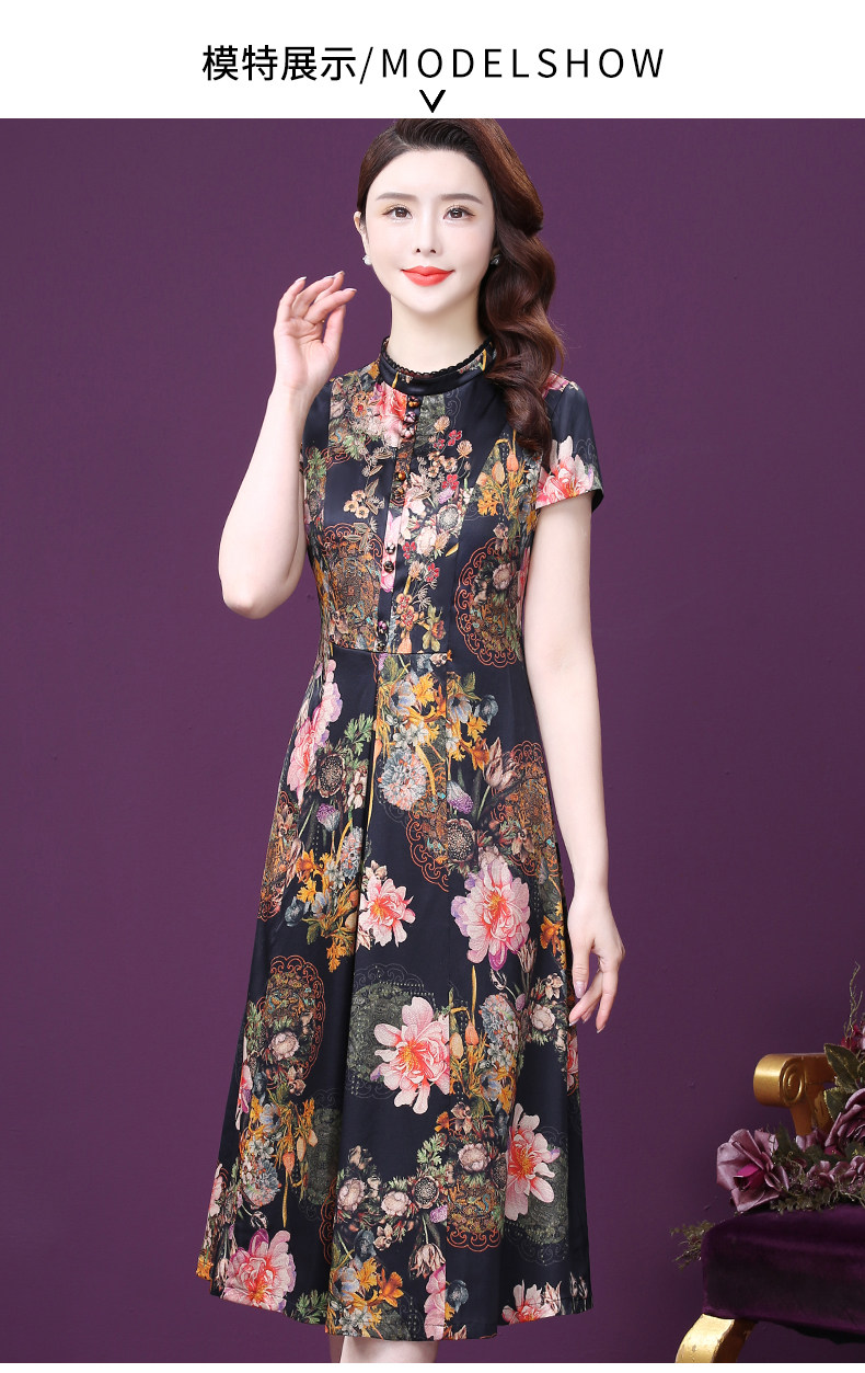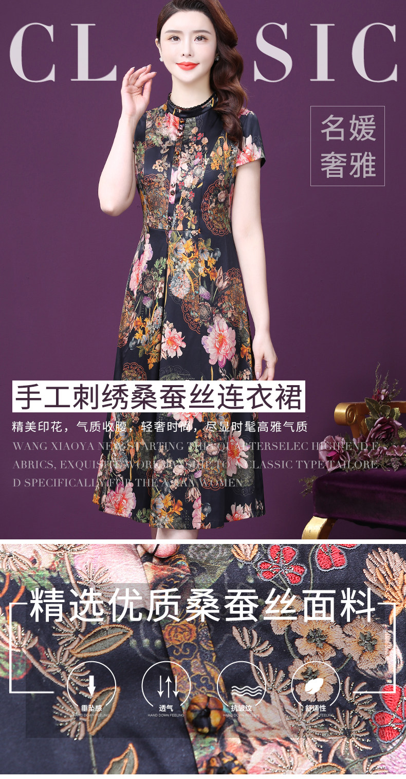 WXY-6081夏新款气质韩版显年轻遮肉重磅真丝收腰桑蚕丝连衣裙
