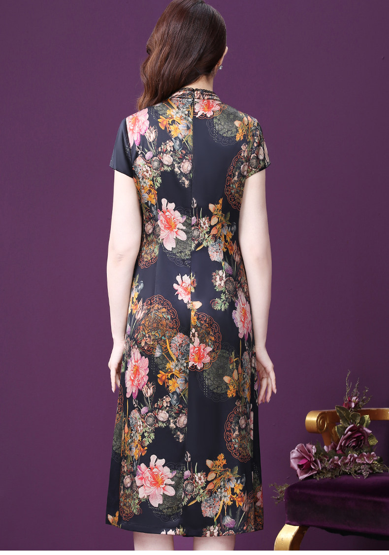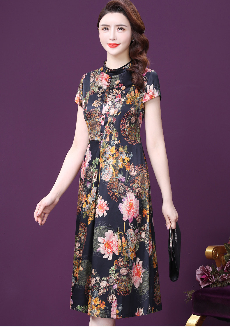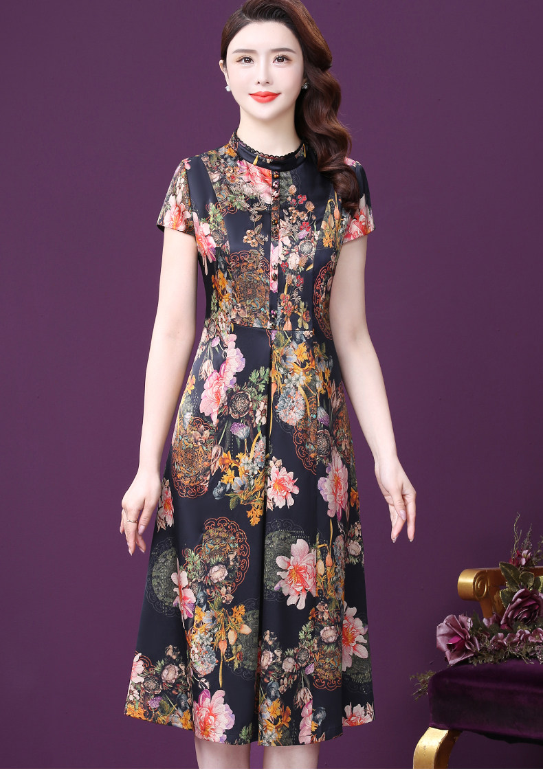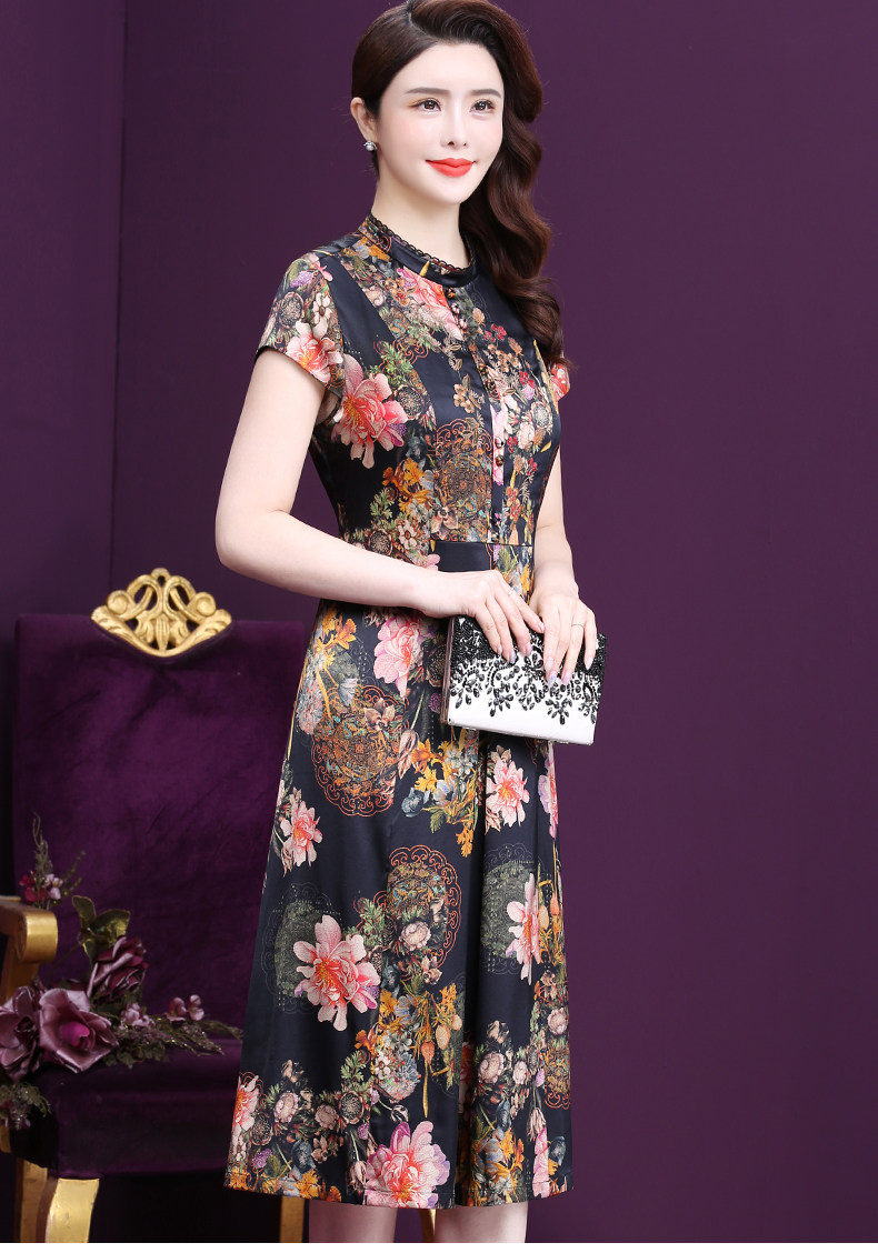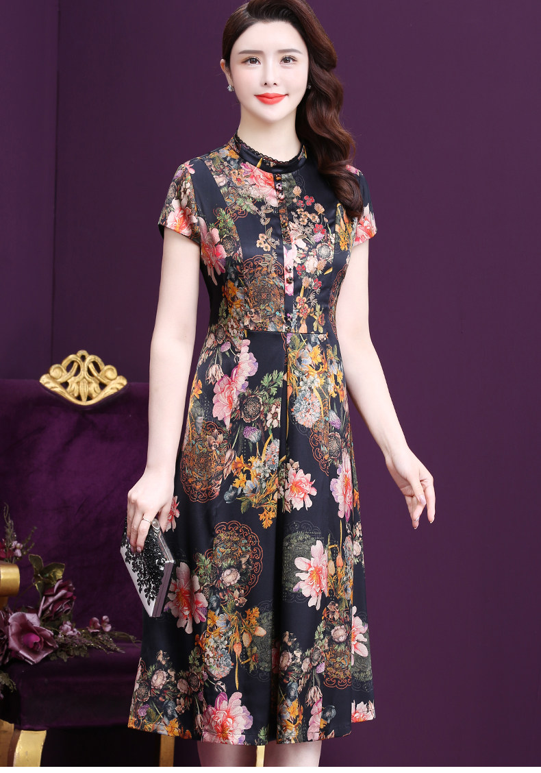 WXY-6081夏新款气质韩版显年轻遮肉重磅真丝收腰桑蚕丝连衣裙