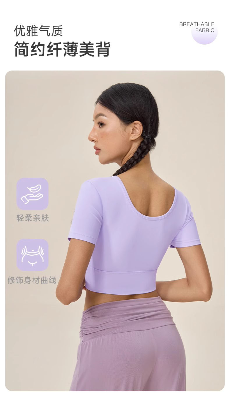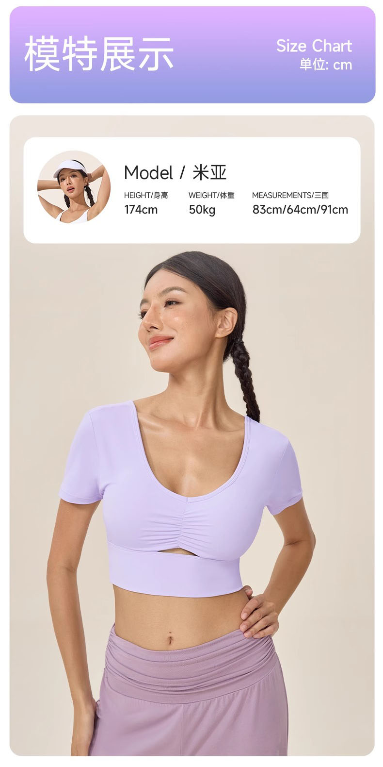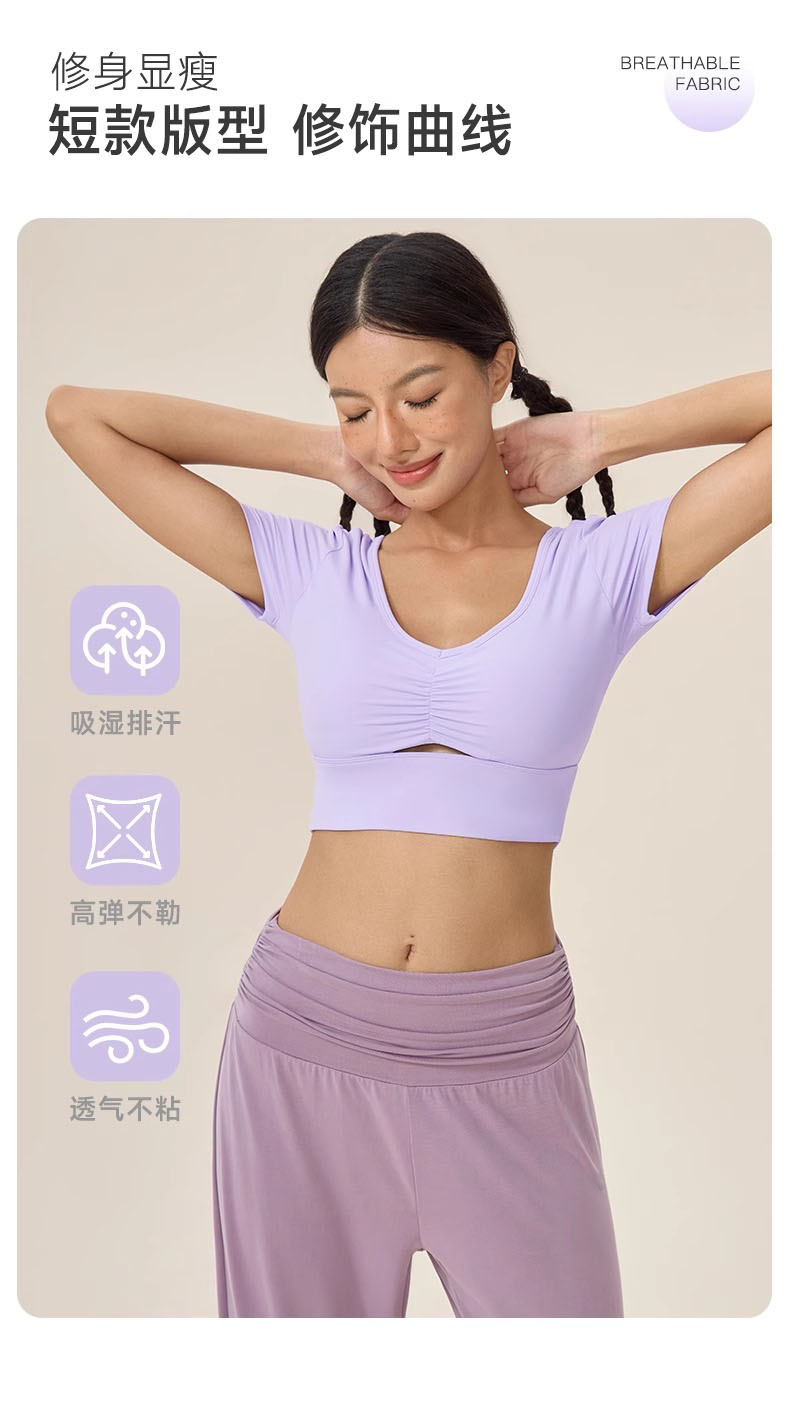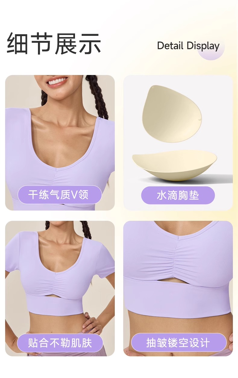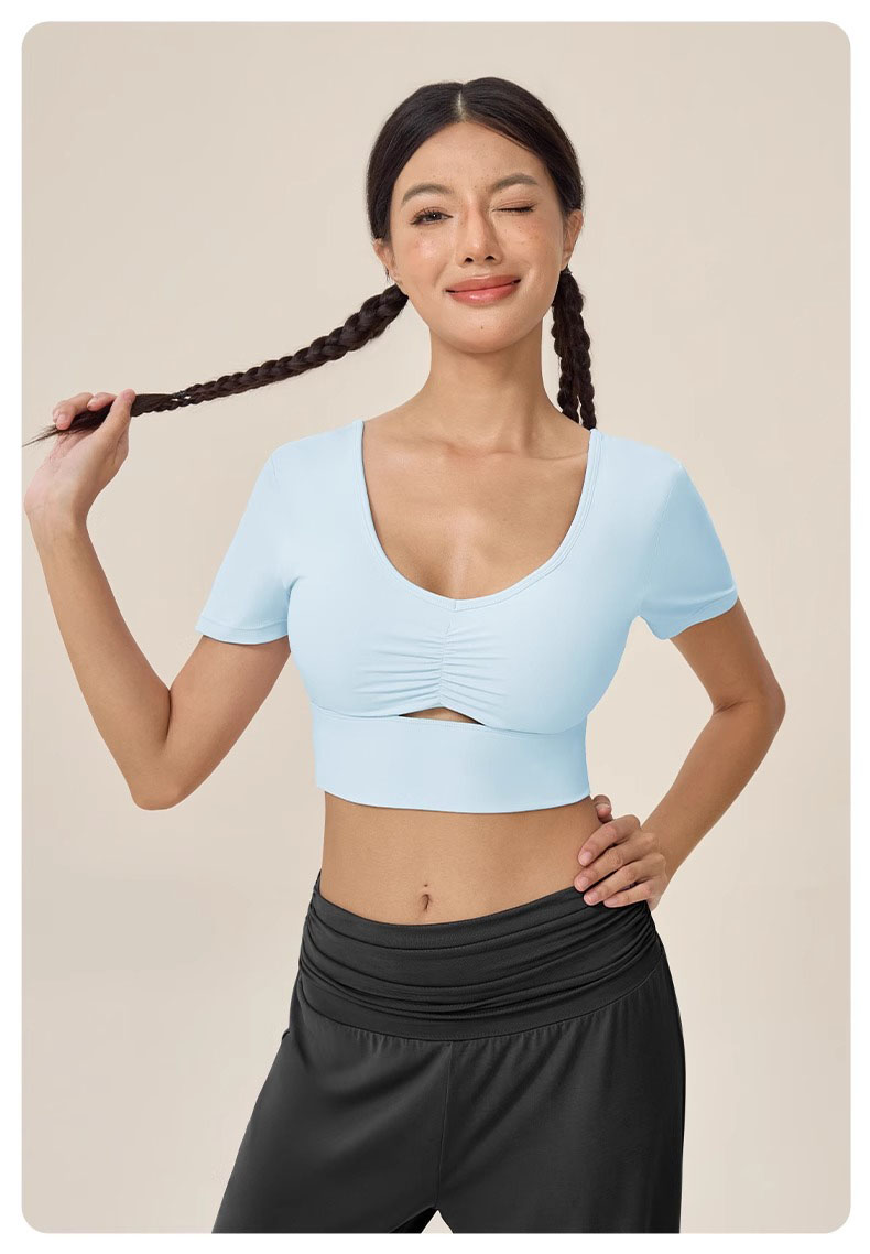 跃牌【欲动春风】系列 女瑜伽服短袖带胸垫V领性感紧身运动T恤24133