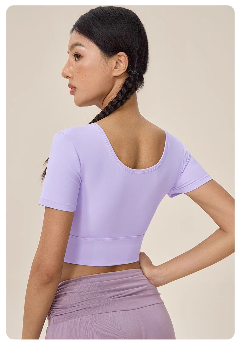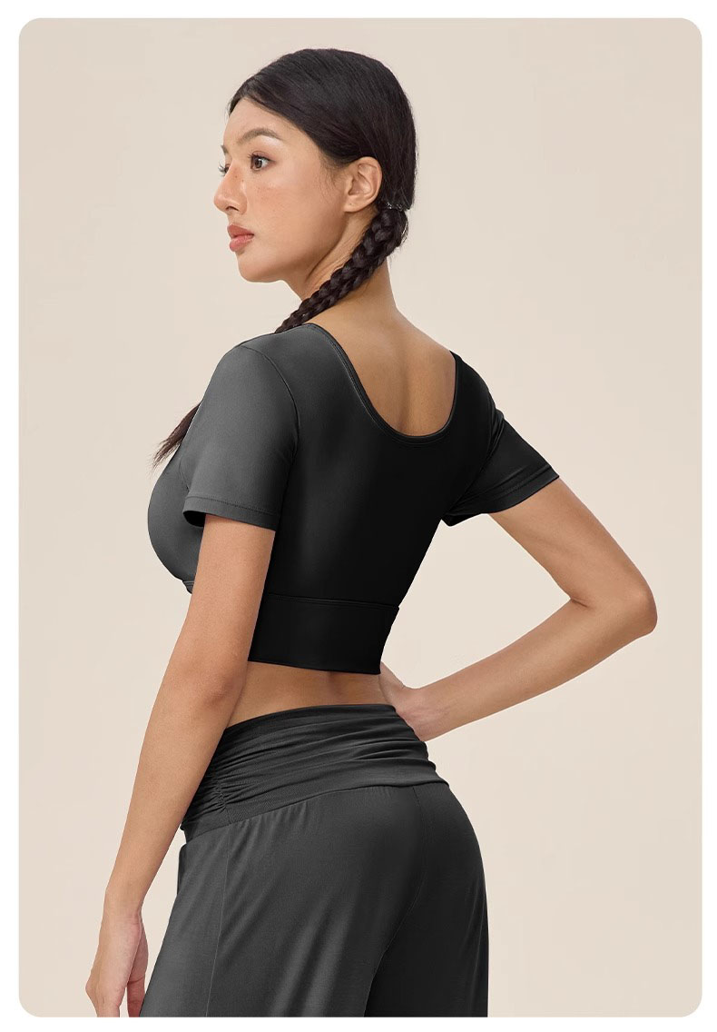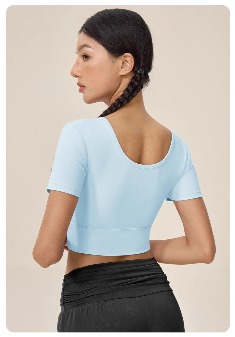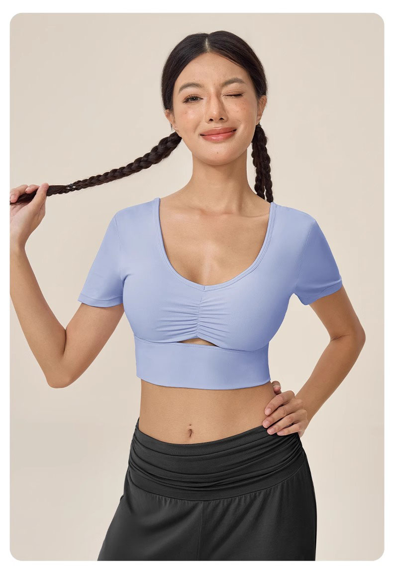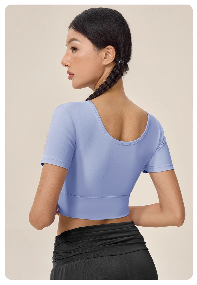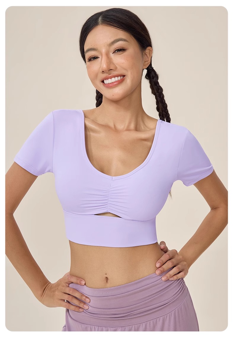 跃牌【欲动春风】系列 女瑜伽服短袖带胸垫V领性感紧身运动T恤24133