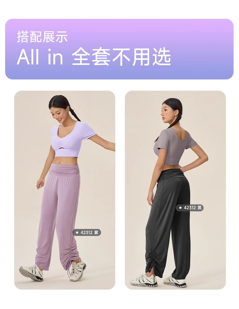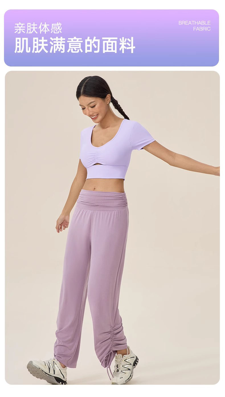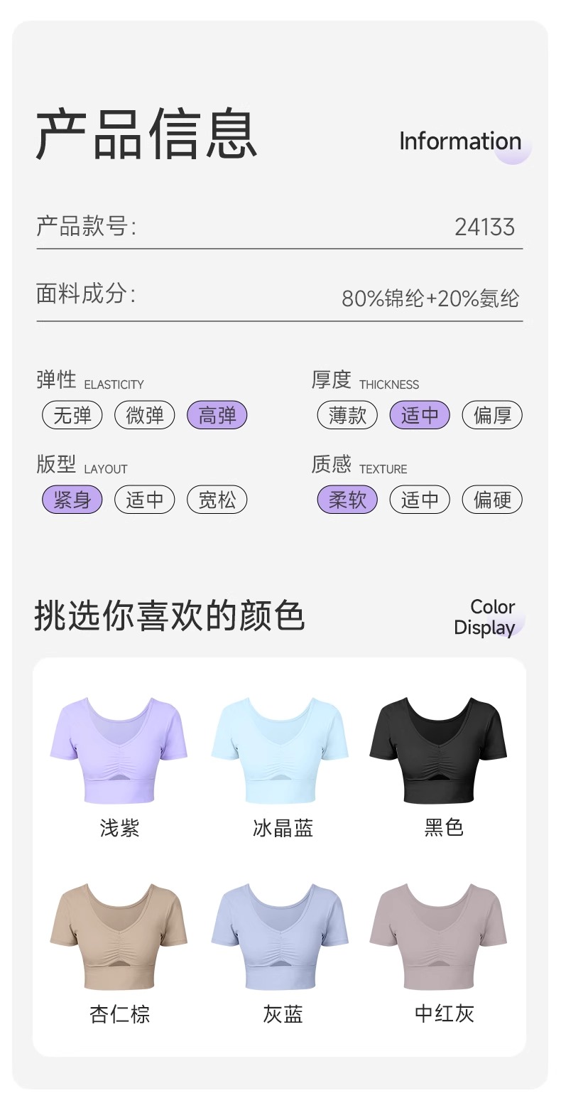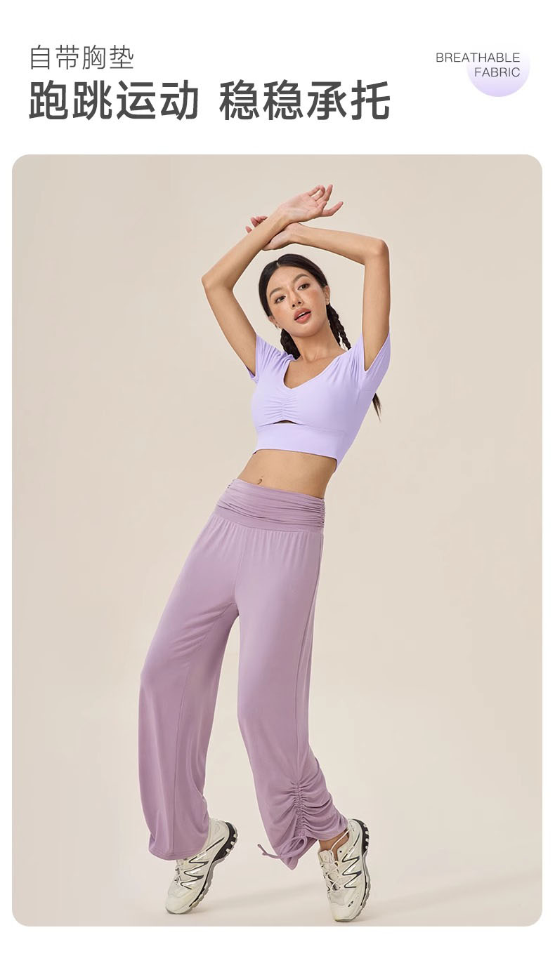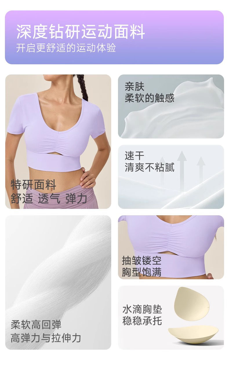 跃牌【欲动春风】系列 女瑜伽服短袖带胸垫V领性感紧身运动T恤24133