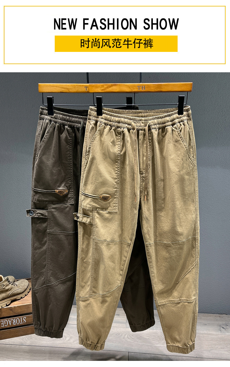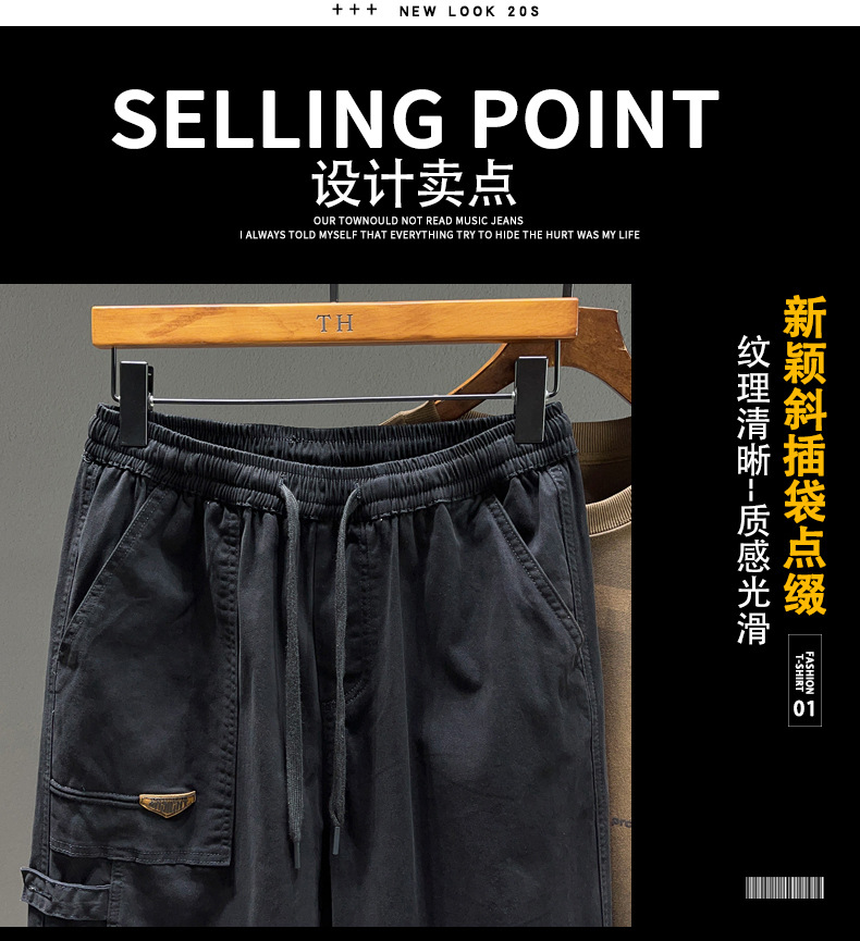 【纯棉】【DYG】大依优型大码男装抽绳松紧束脚运动休闲裤男潮牌多袋户外工装裤