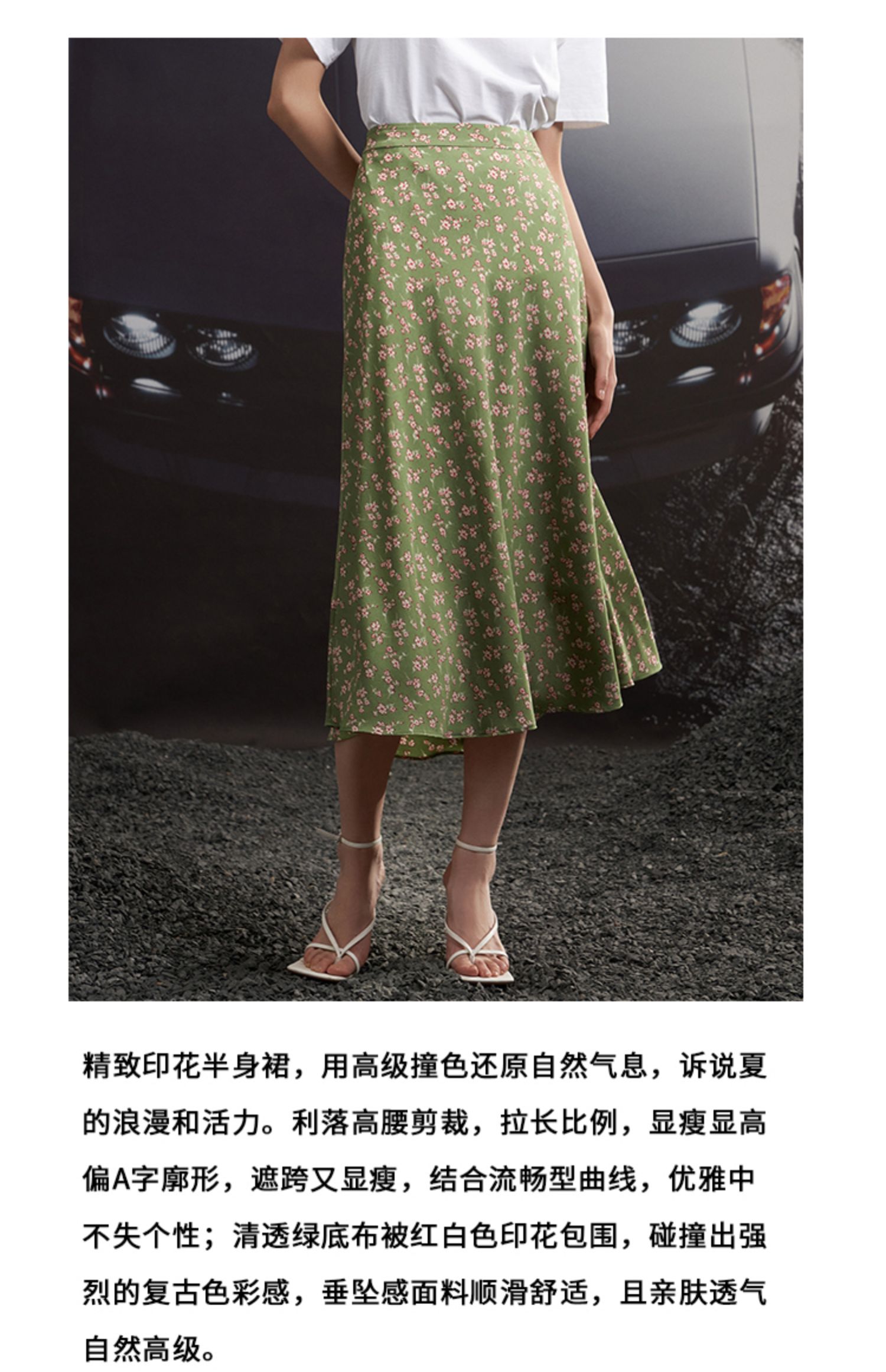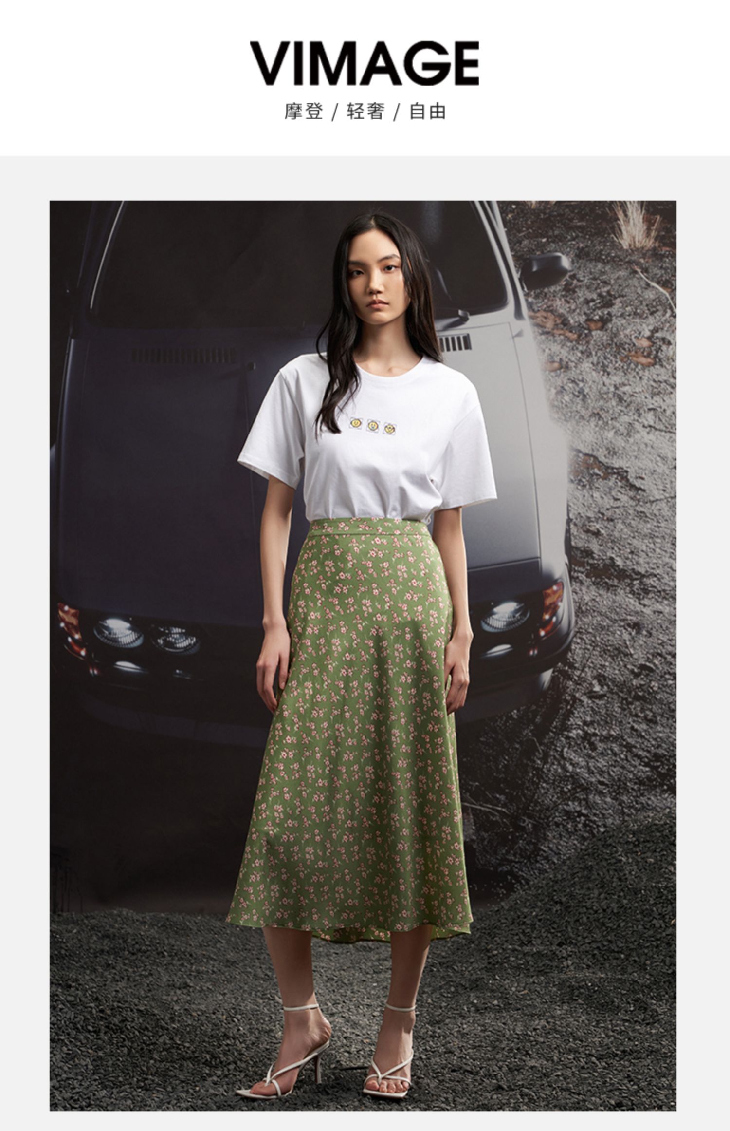 VIMAGE/纬漫纪夏季新款高腰复古印花半身裙VB2206902