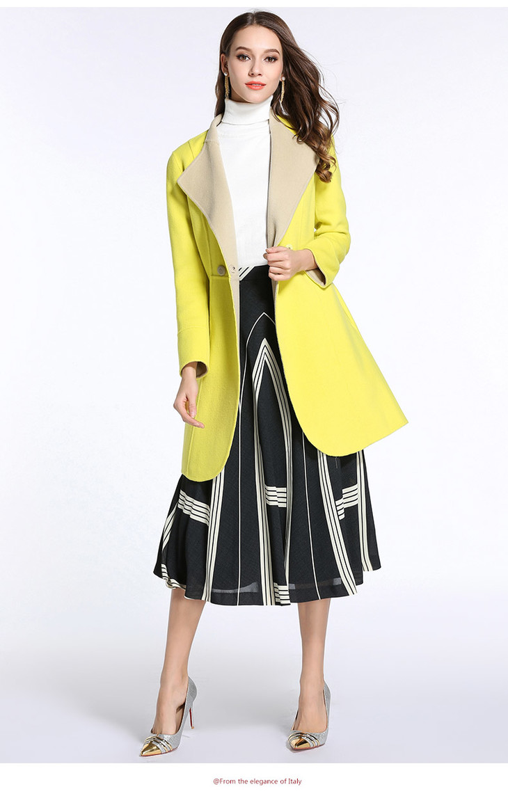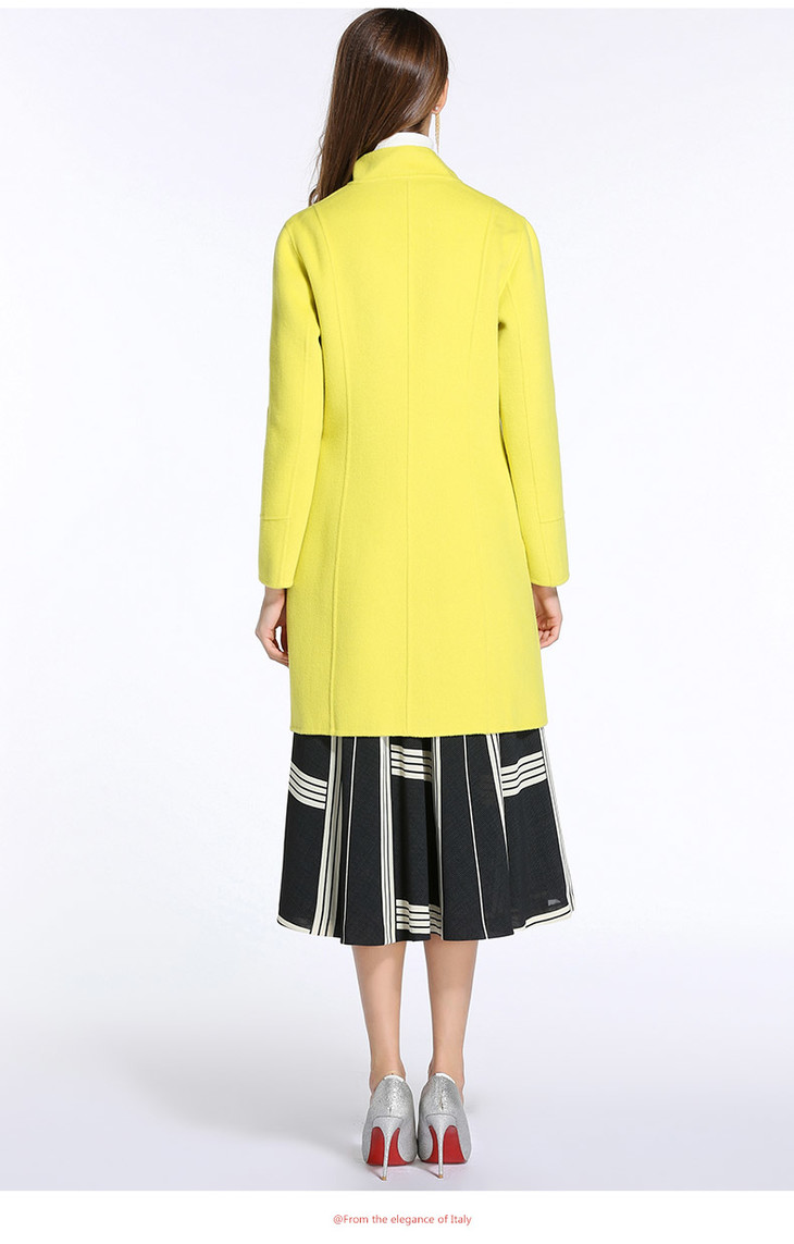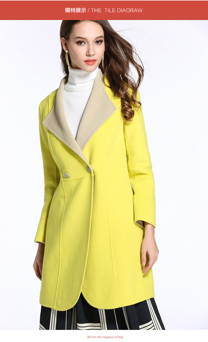 乔万尼秋冬简约时尚不对称领羊毛呢大衣女中长款外套E144A835