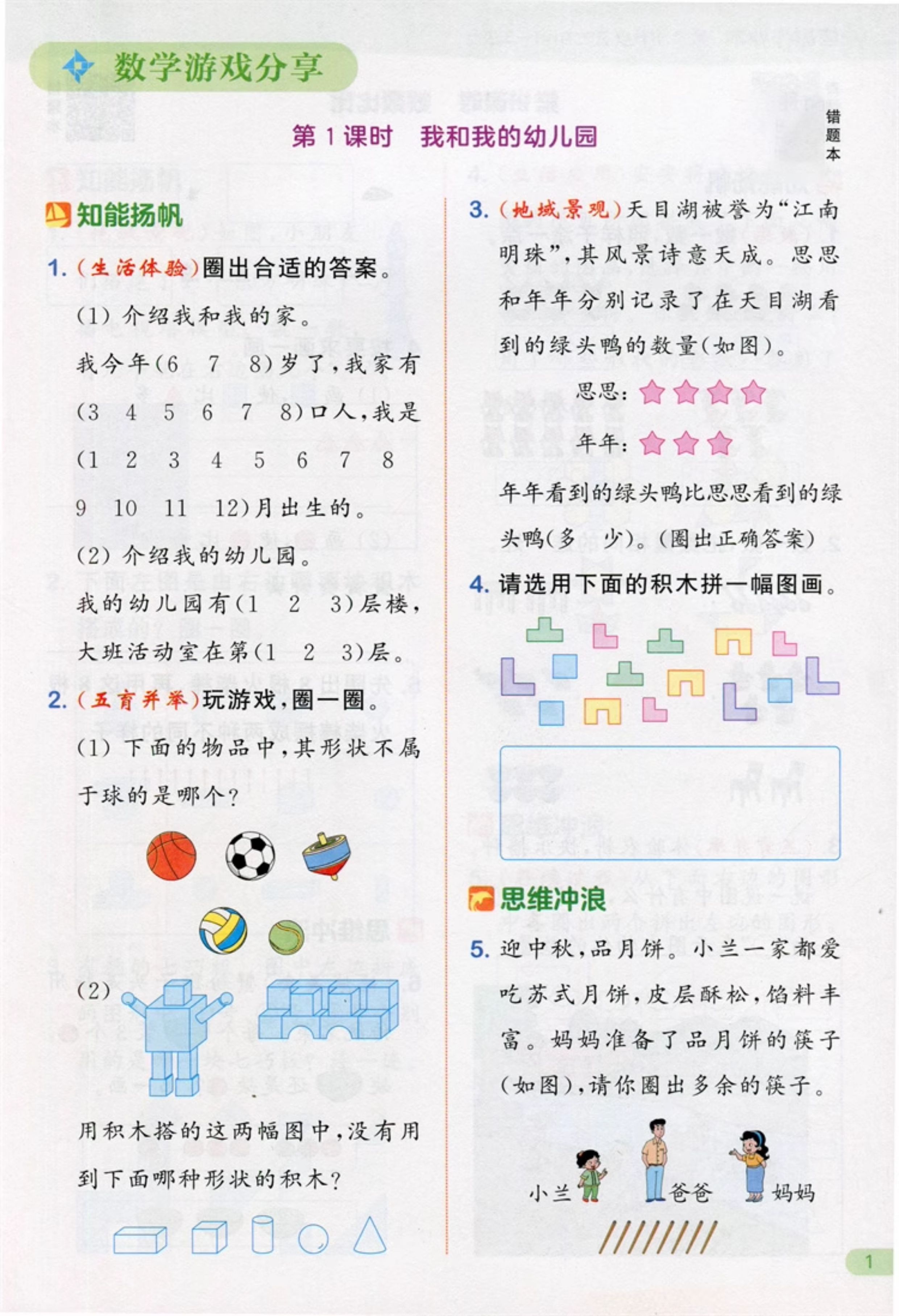 包邮 2025秋课时作业本数学1上 苏教版 小学一年级上册 1上 学生用书 小学教辅 浙江教育出版社