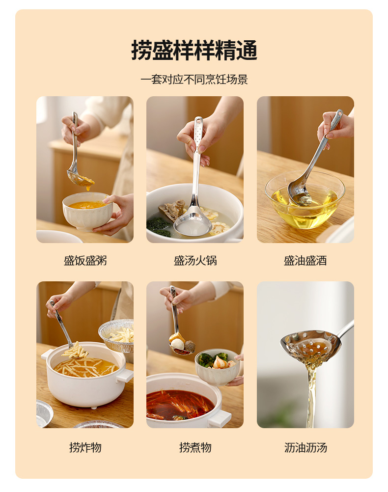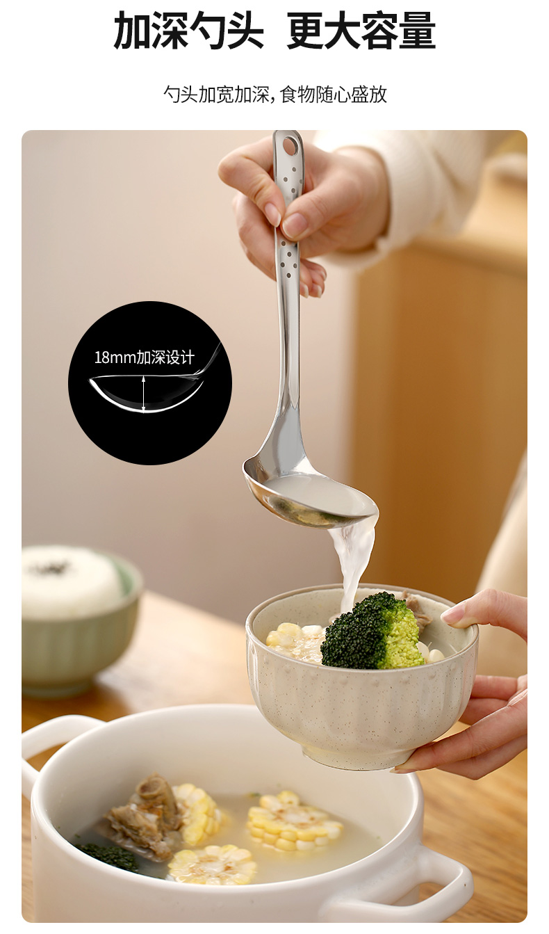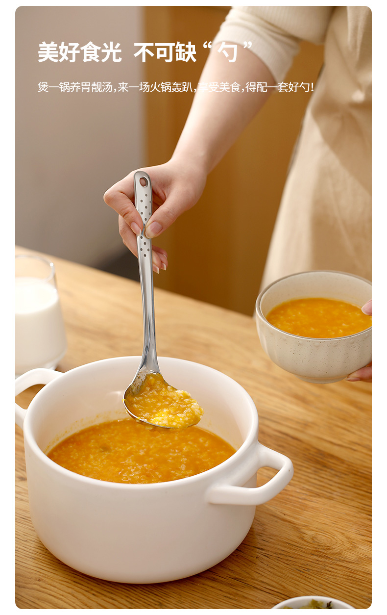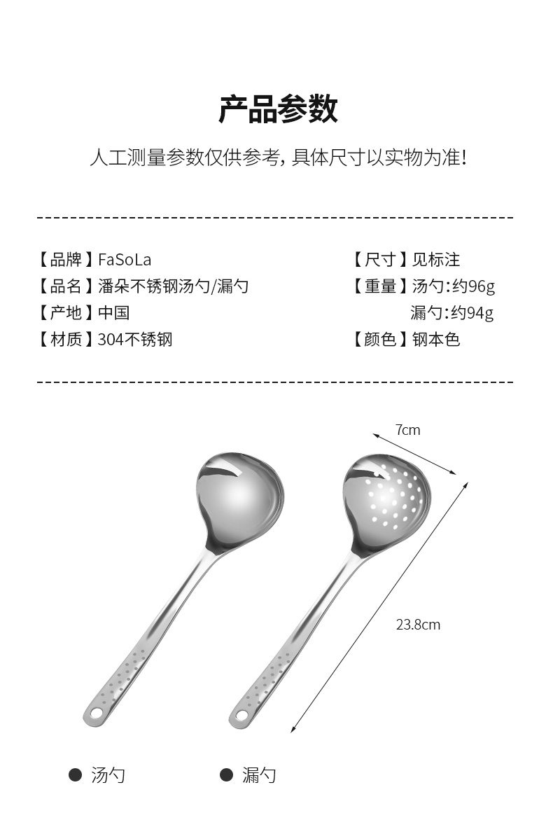 【品牌直发】FaSoLa汤勺漏勺火锅勺家用大号盛汤喝汤匙不锈钢长柄韩式干饭人专用勺子