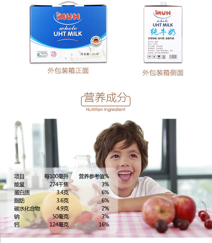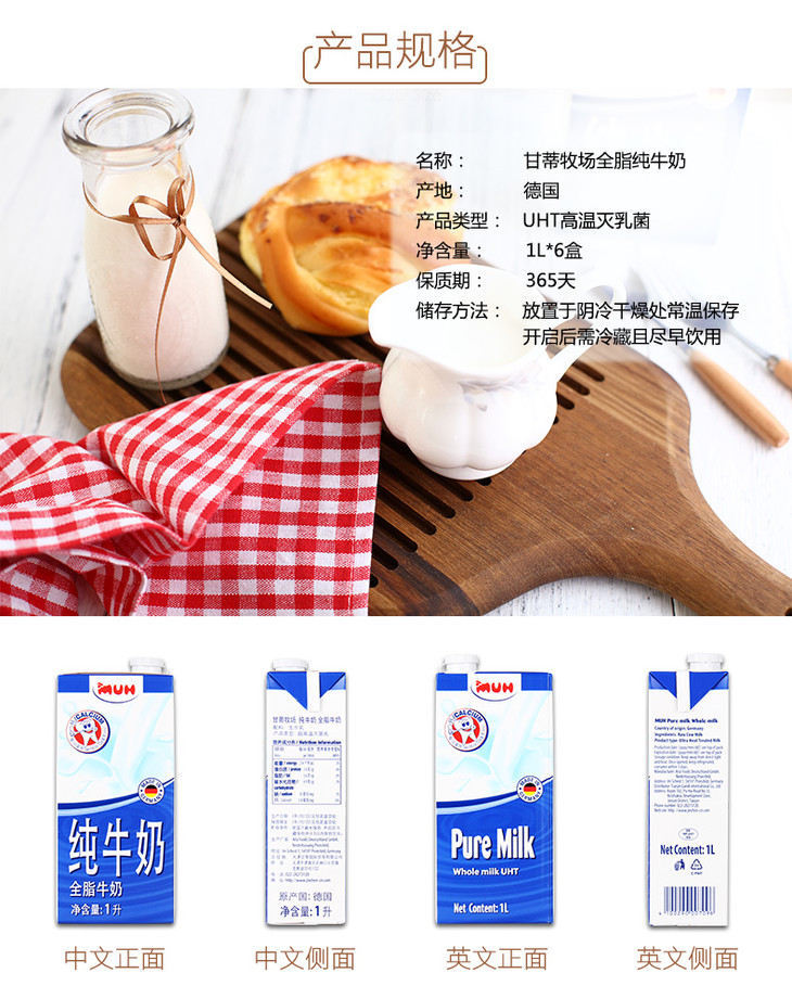 1L甘蒂牧场全脂牛奶 德国进口 纯正牛乳