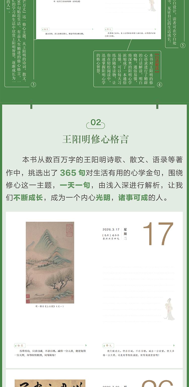 2026王阳明修心日历 追光的人 终将光芒万丈