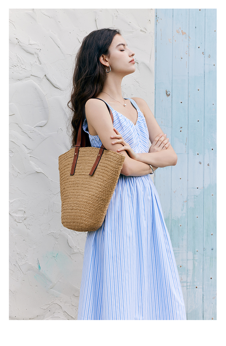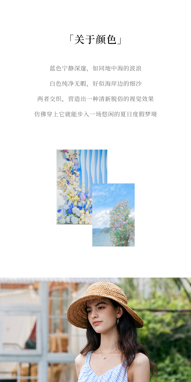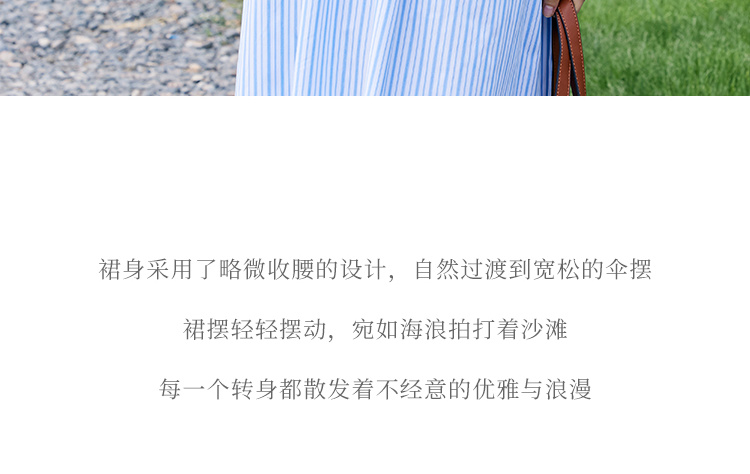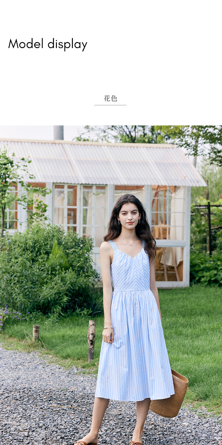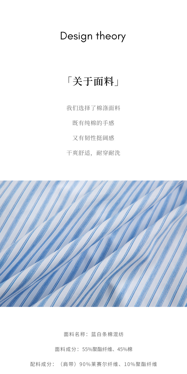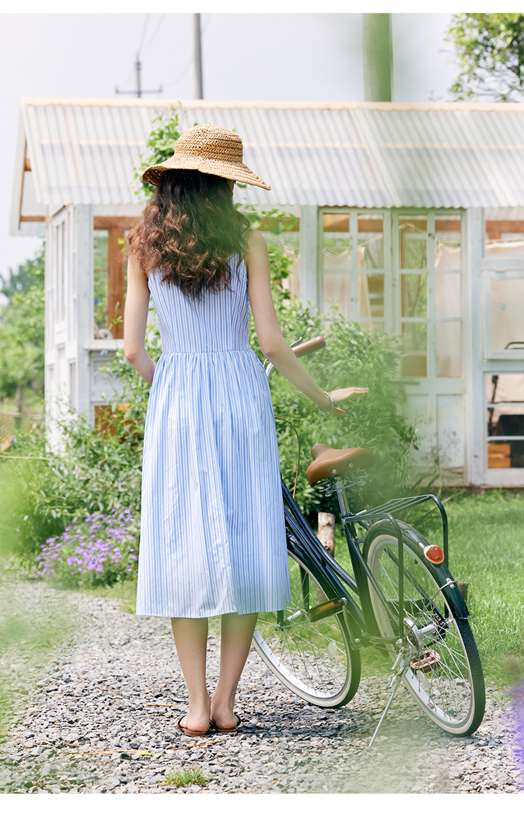 HeyDress宽肩带吊带连衣裙女夏季蓝白条纹吊带裙收腰设计显瘦裙子