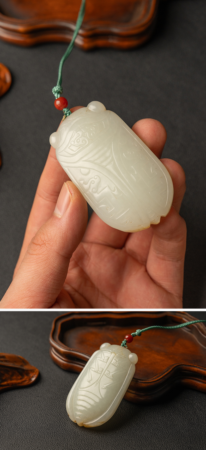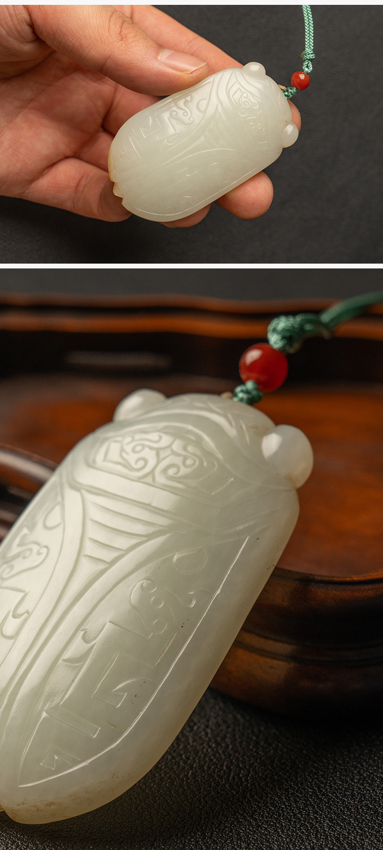 清 玉雕金蝉挂件