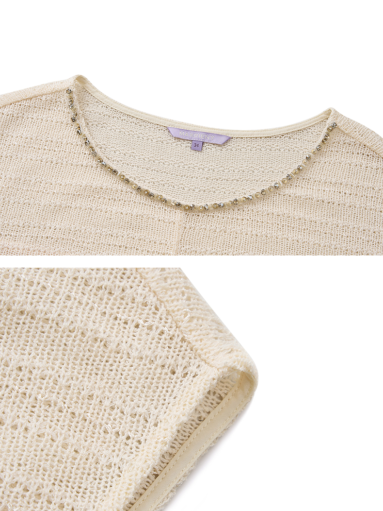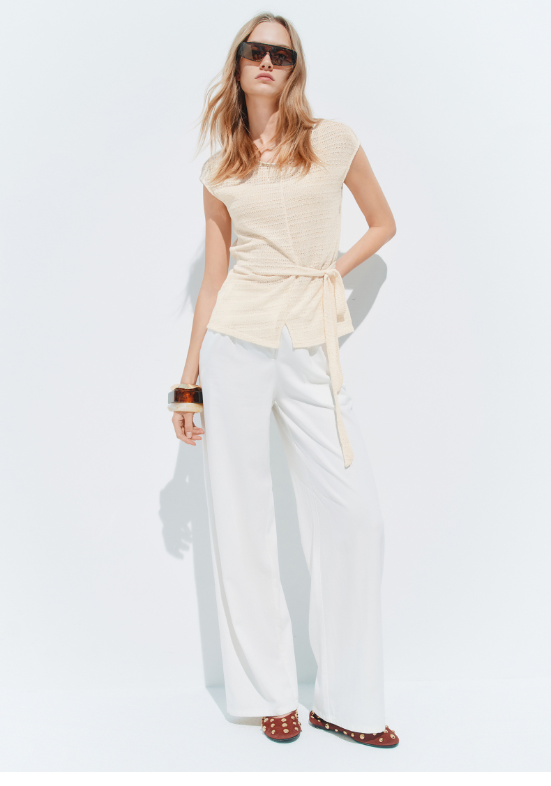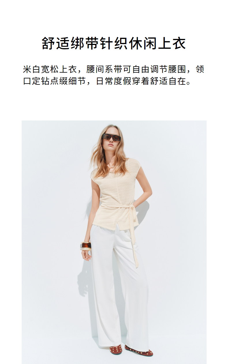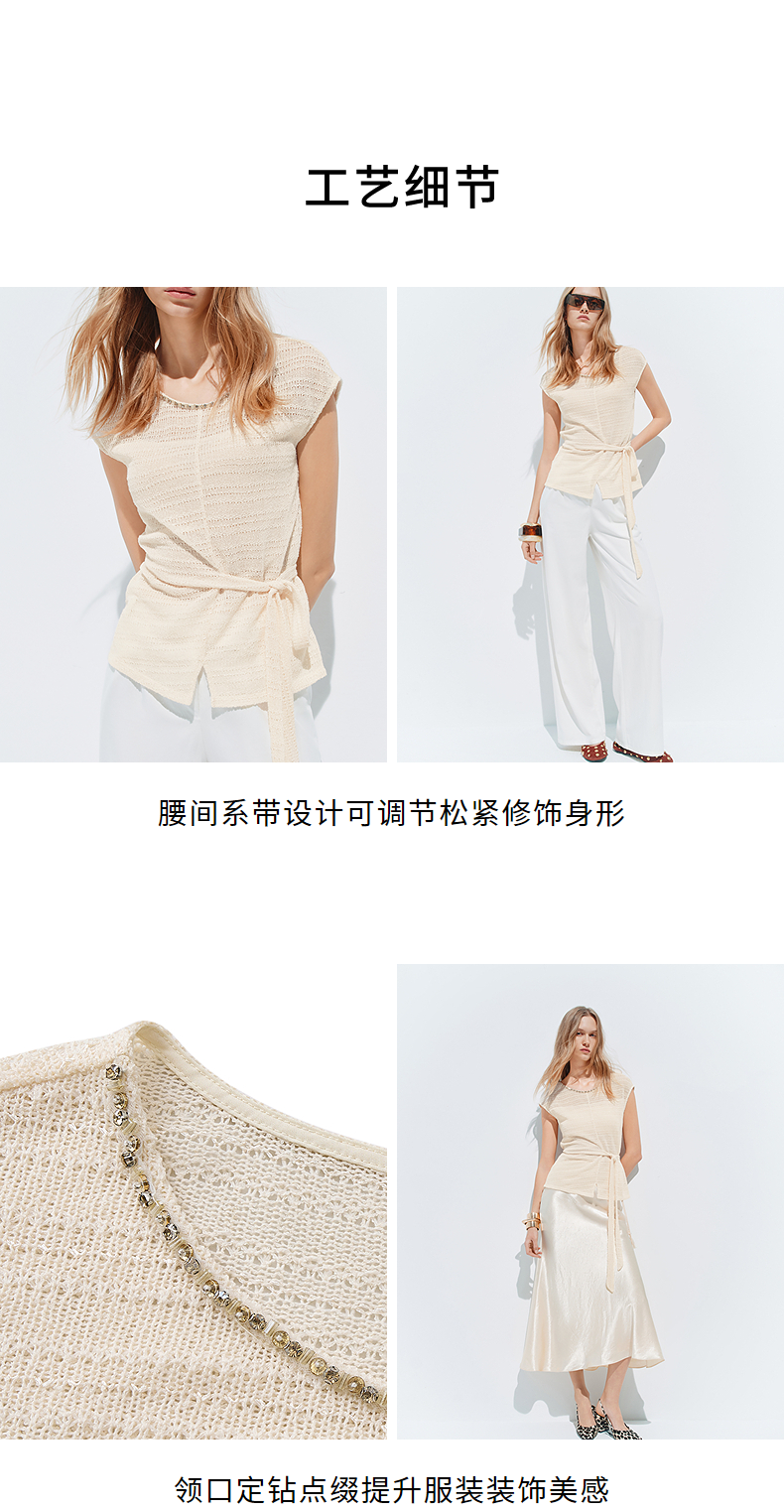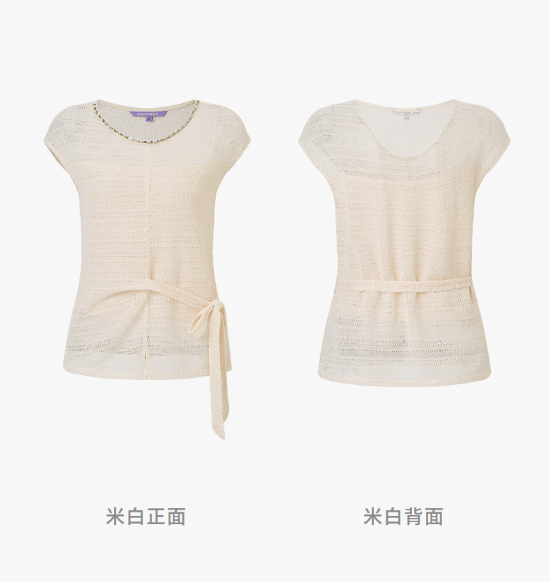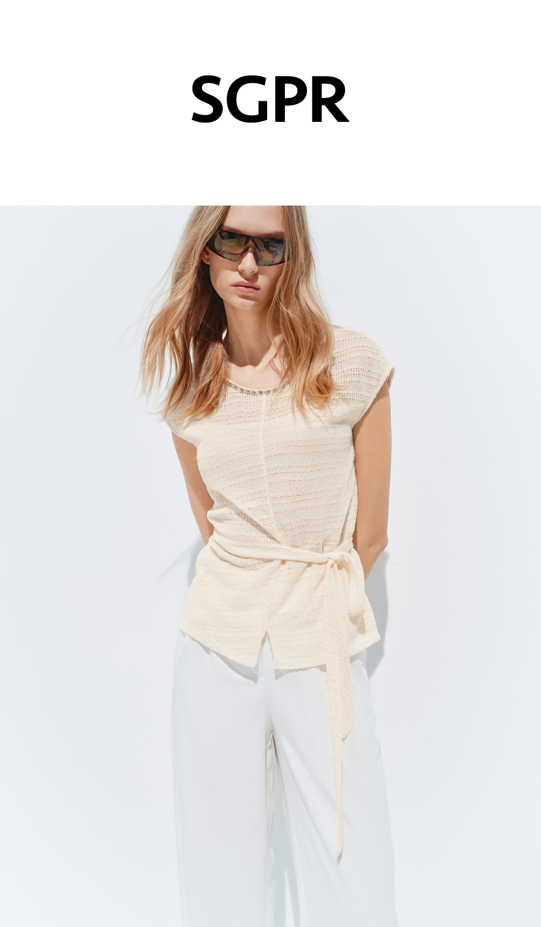 【SGPR】米白色绑带针织休闲上衣2026年夏季新款短袖宽松针织衫(货号:MU80TP012)