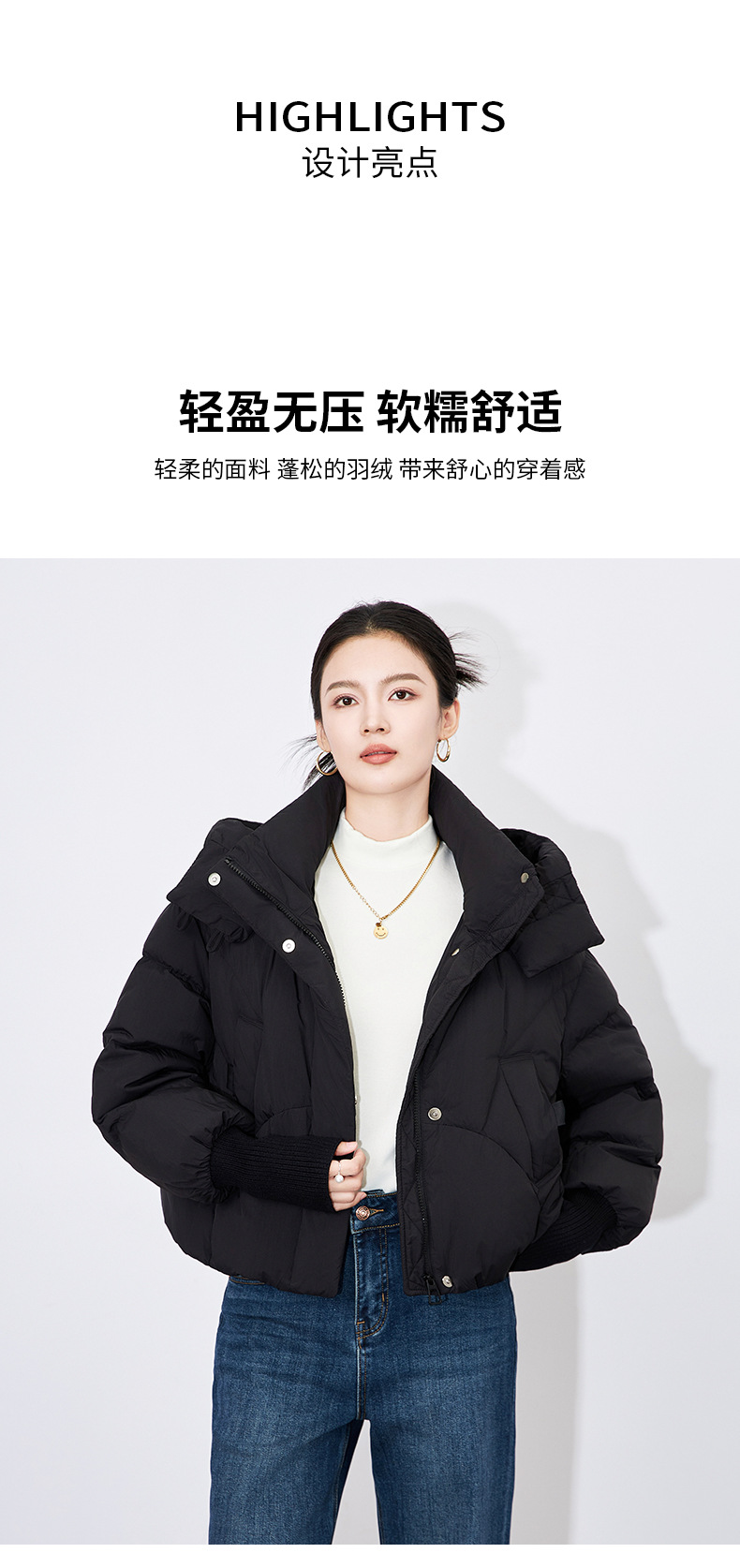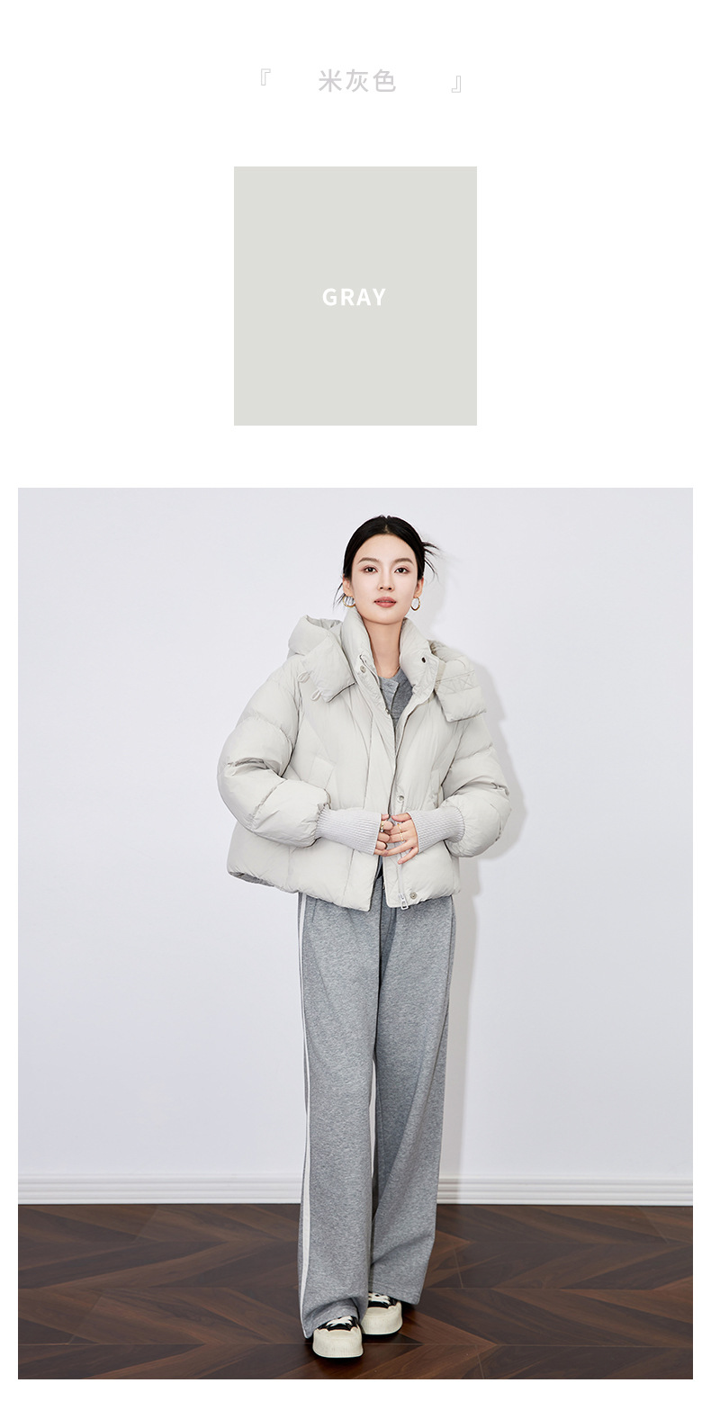 【高货wl】全新升级【铂金会员533/天猫719/差价186】(14346) 洛诗琳秋冬甜美风气质连帽廓形短款羽绒服简约保暖外套