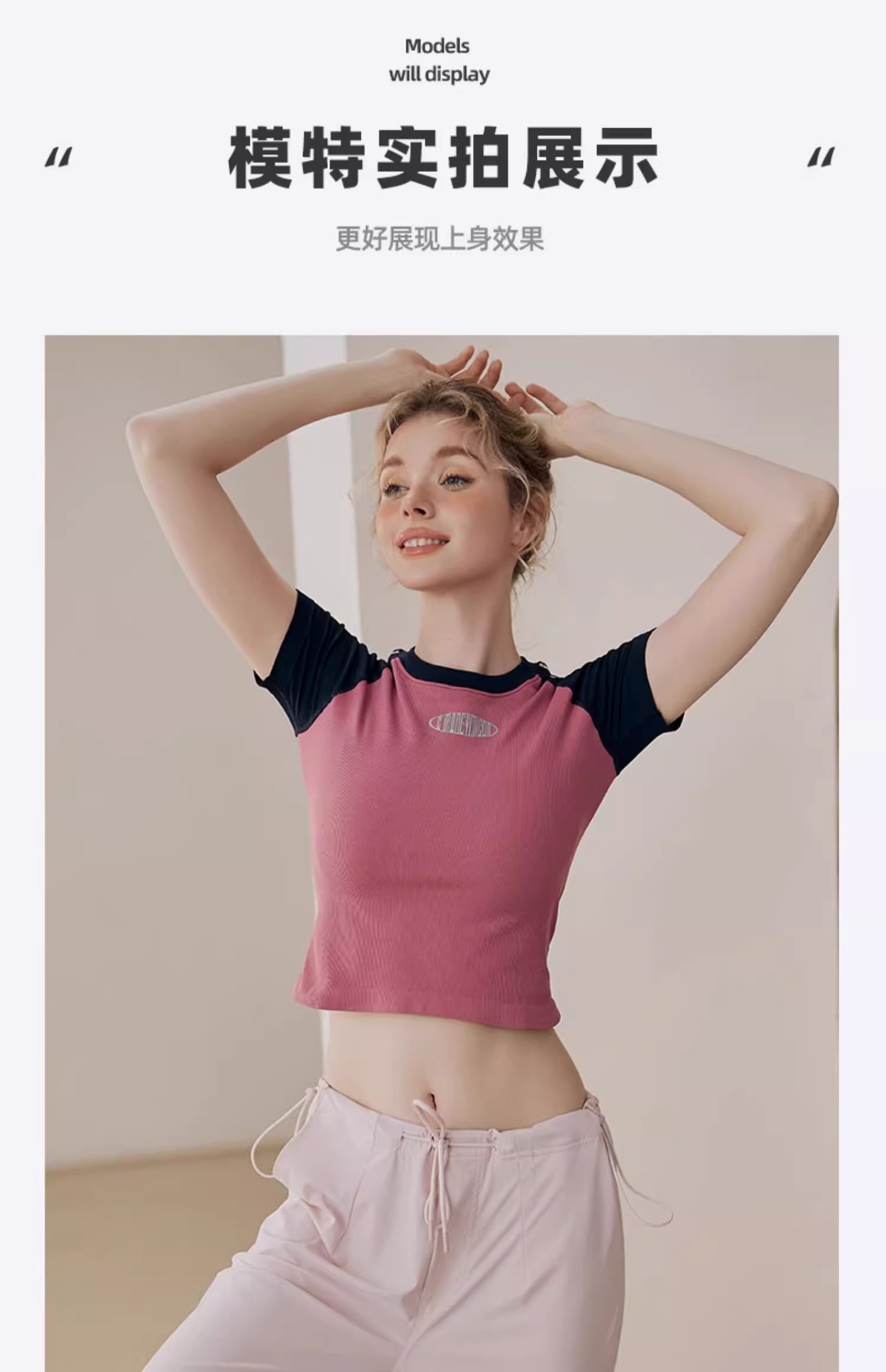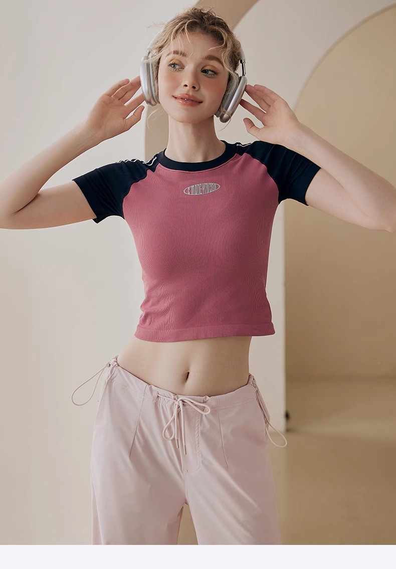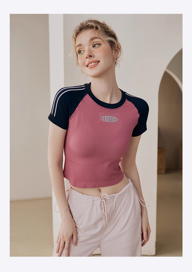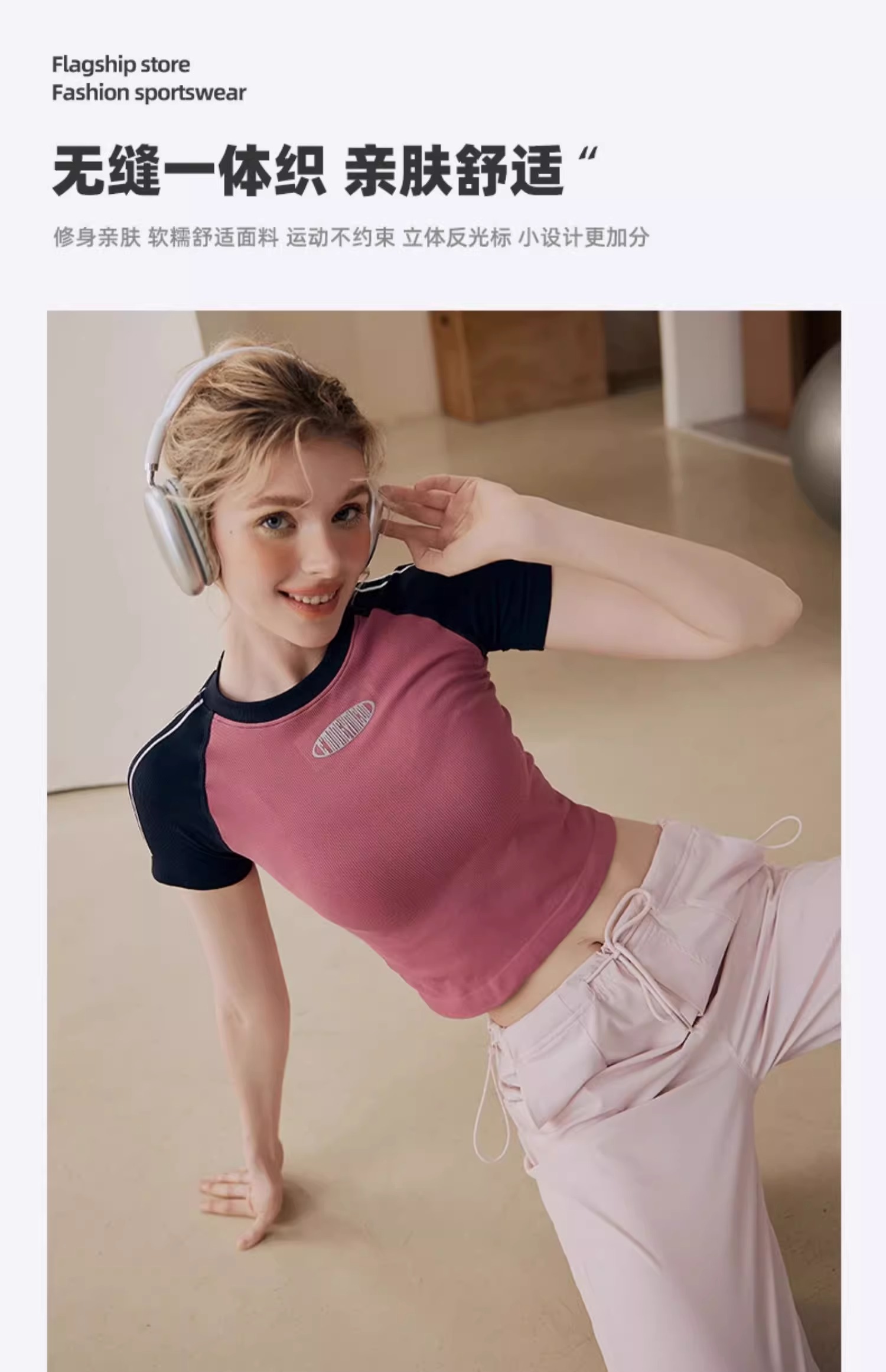 Gymicon能量符号 春夏户外舞蹈运动短袖无缝一体织瑜伽服跑步健身上衣YASY2414