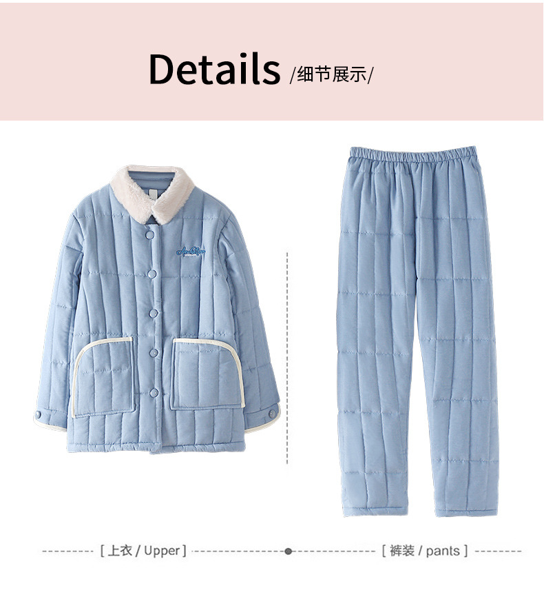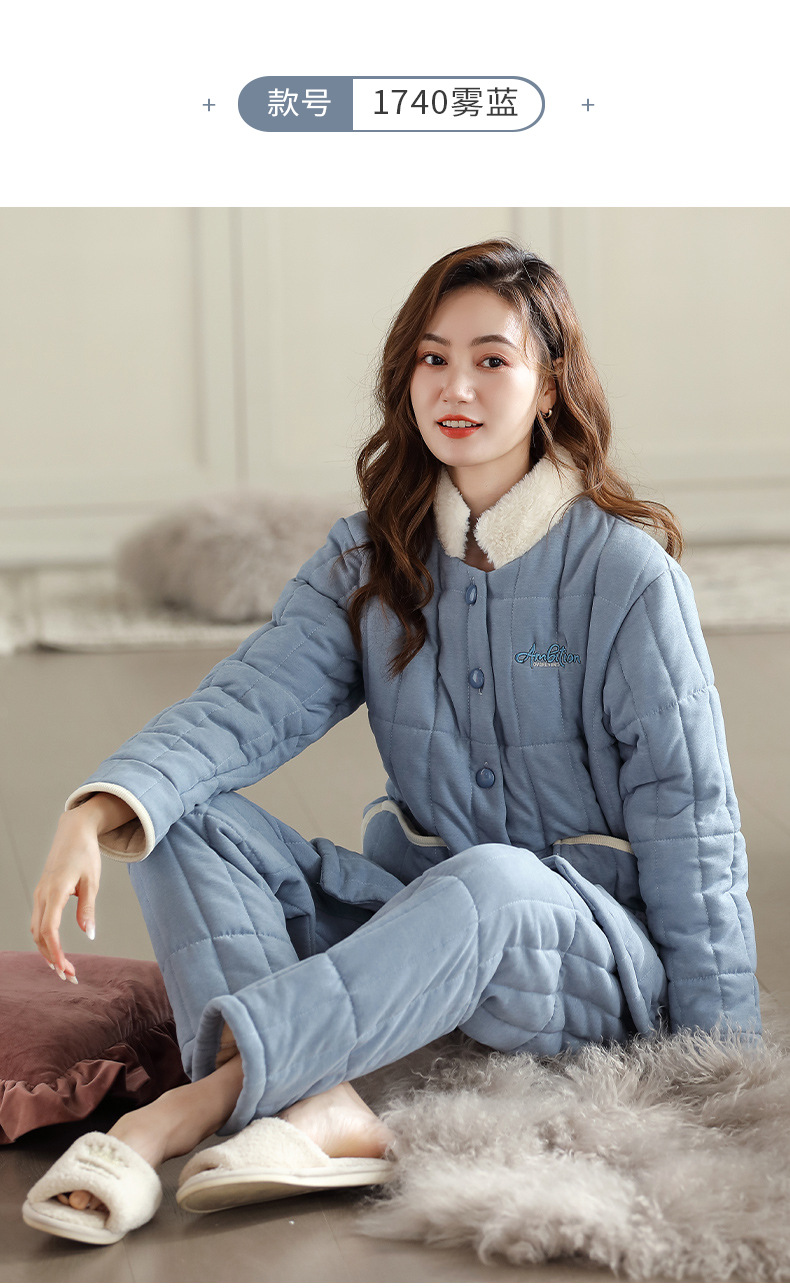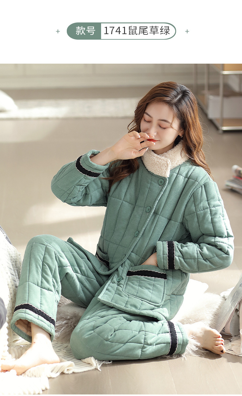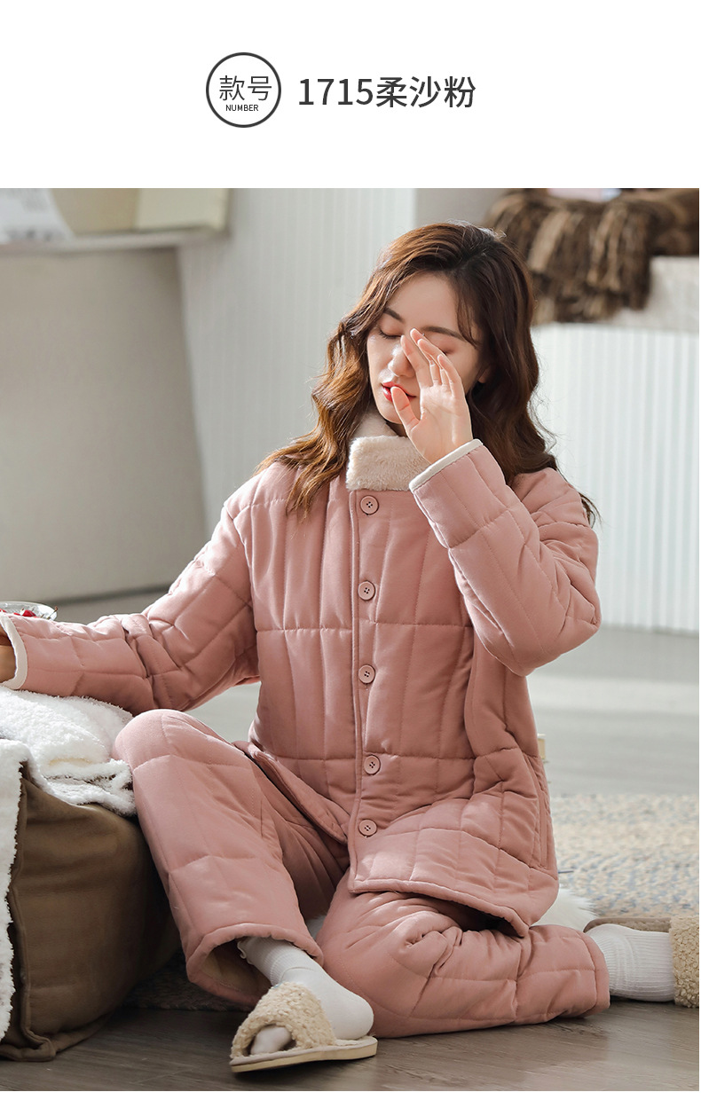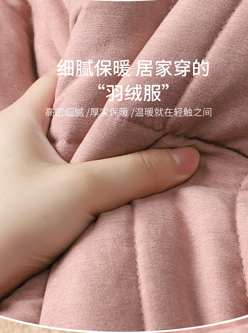 雀说 睡衣女冬季加厚加绒珊瑚绒三层夹棉袄 商品图4