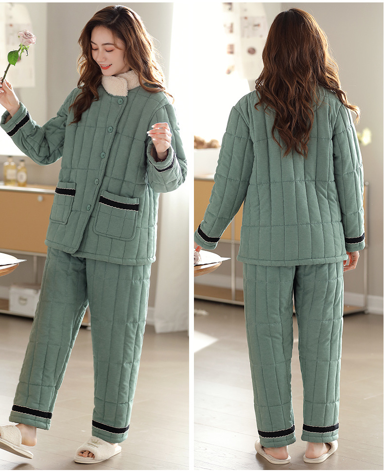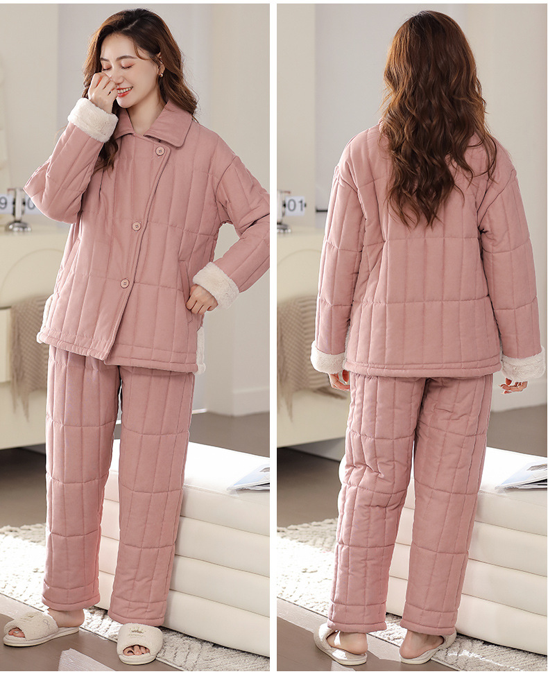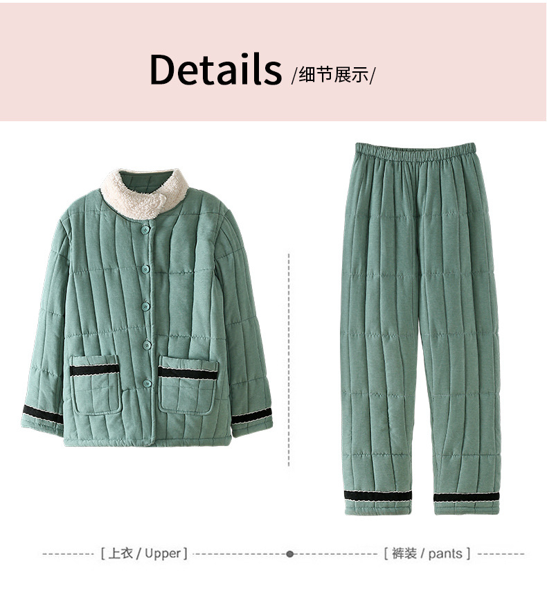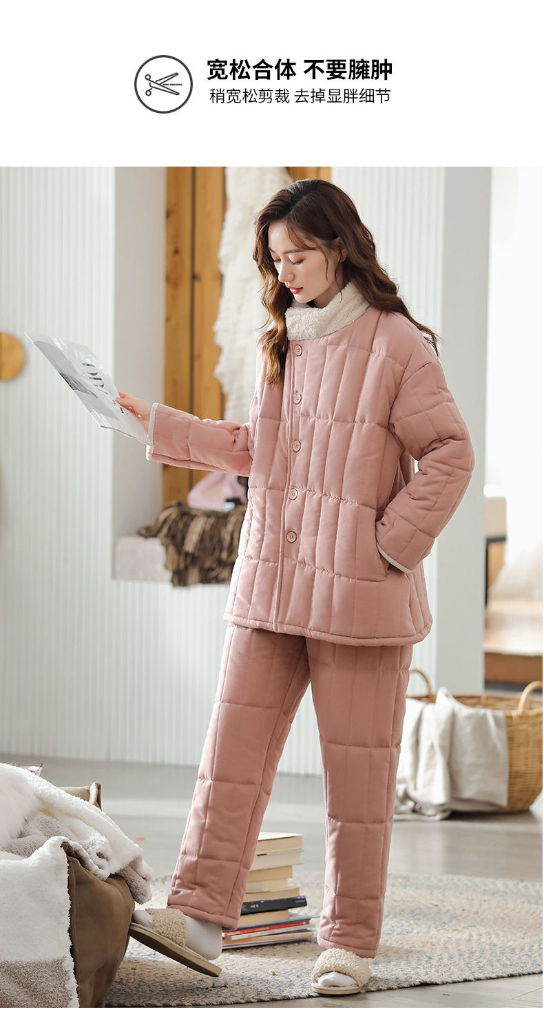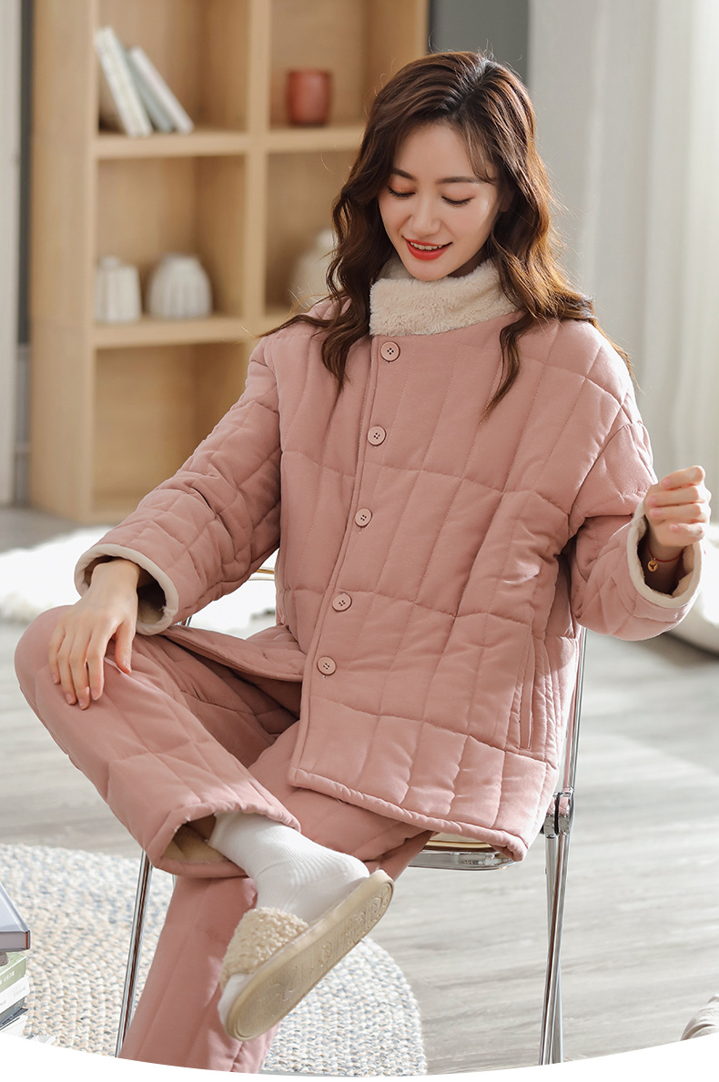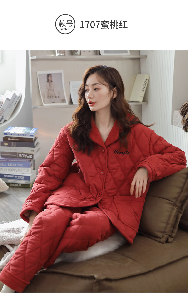 雀说 睡衣女冬季加厚加绒珊瑚绒三层夹棉袄 商品图4