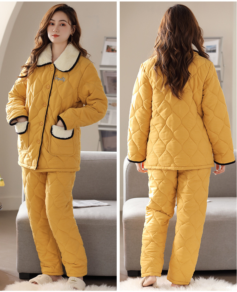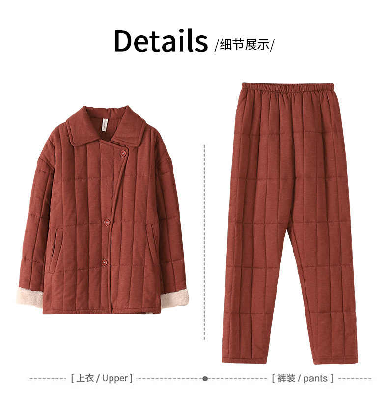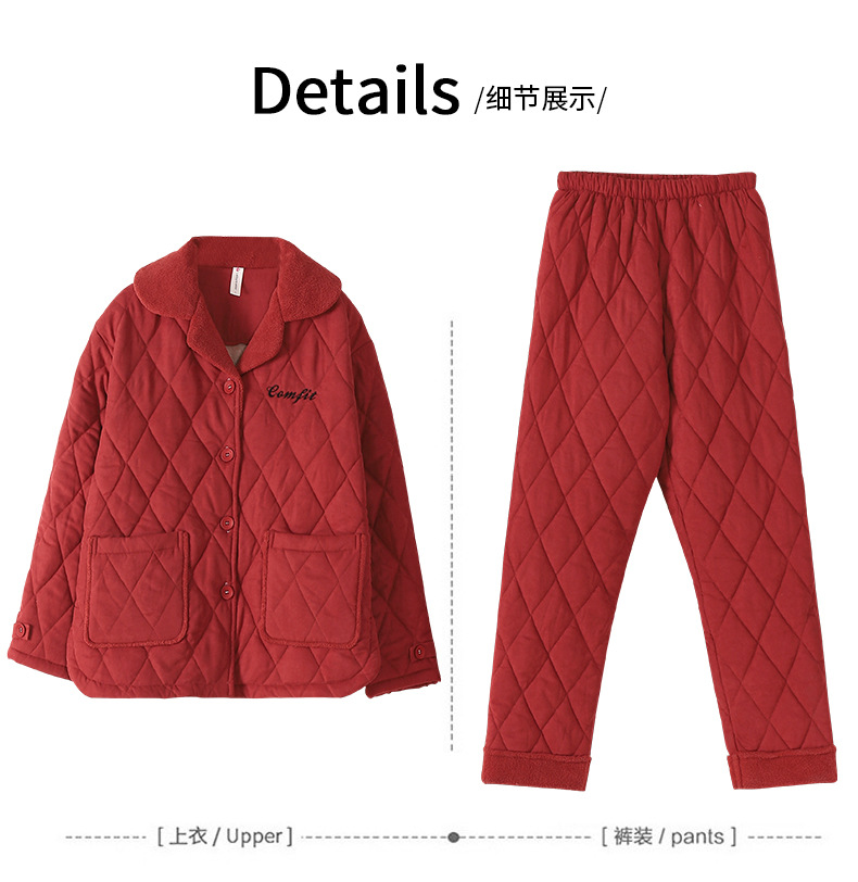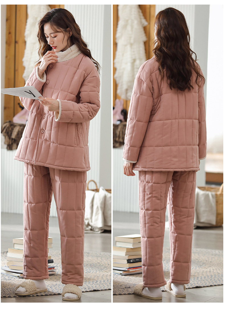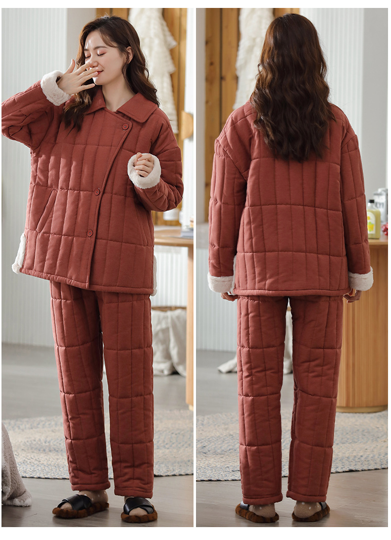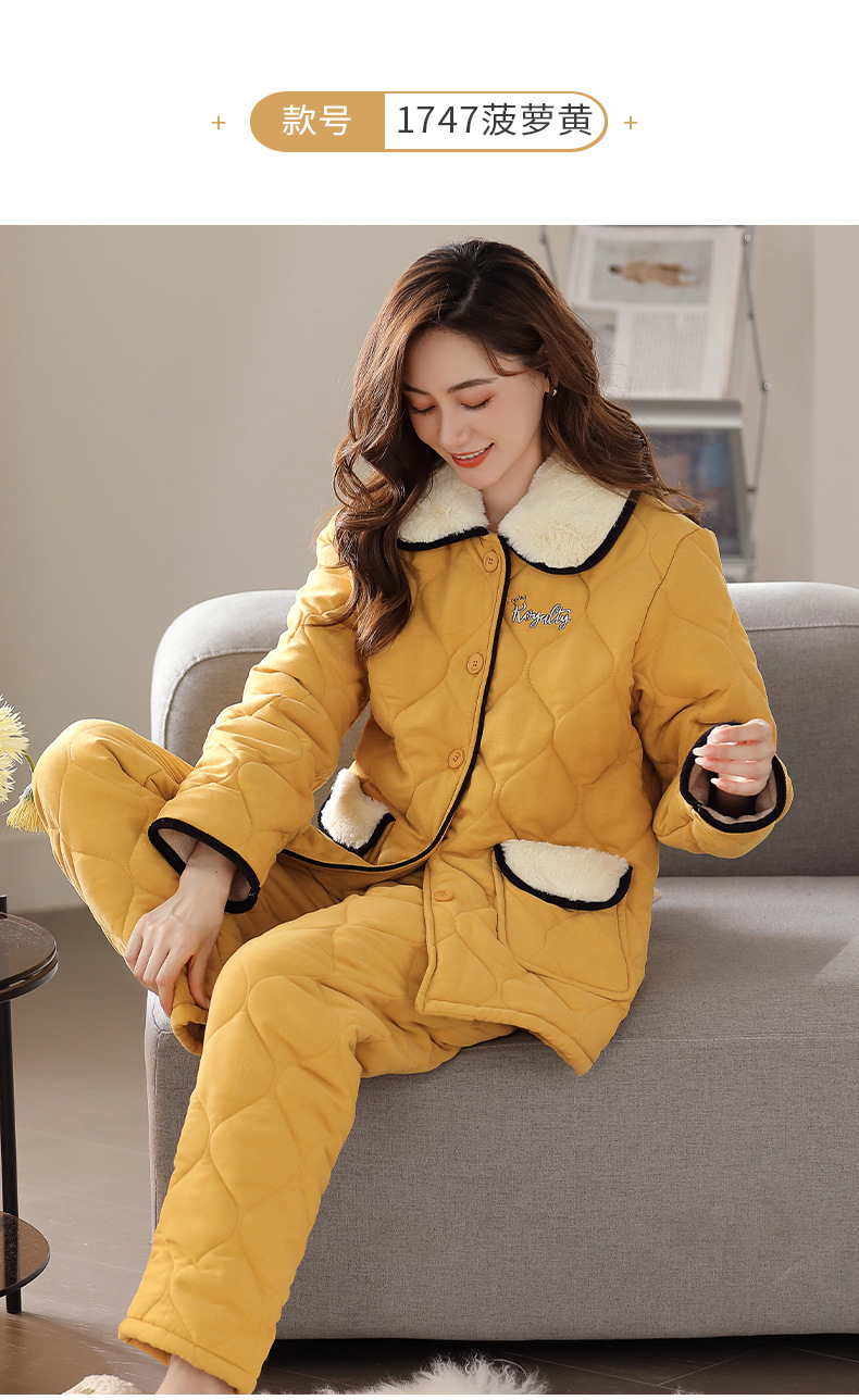 雀说 睡衣女冬季加厚加绒珊瑚绒三层夹棉袄 商品图4