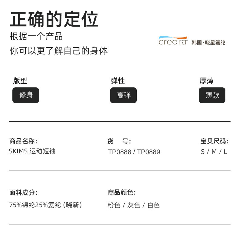 跃牌【周游世界系列】春夏新款高弹塑体修身短袖SKIMS轻薄透气运动训练健身服TP0888/TP0889
