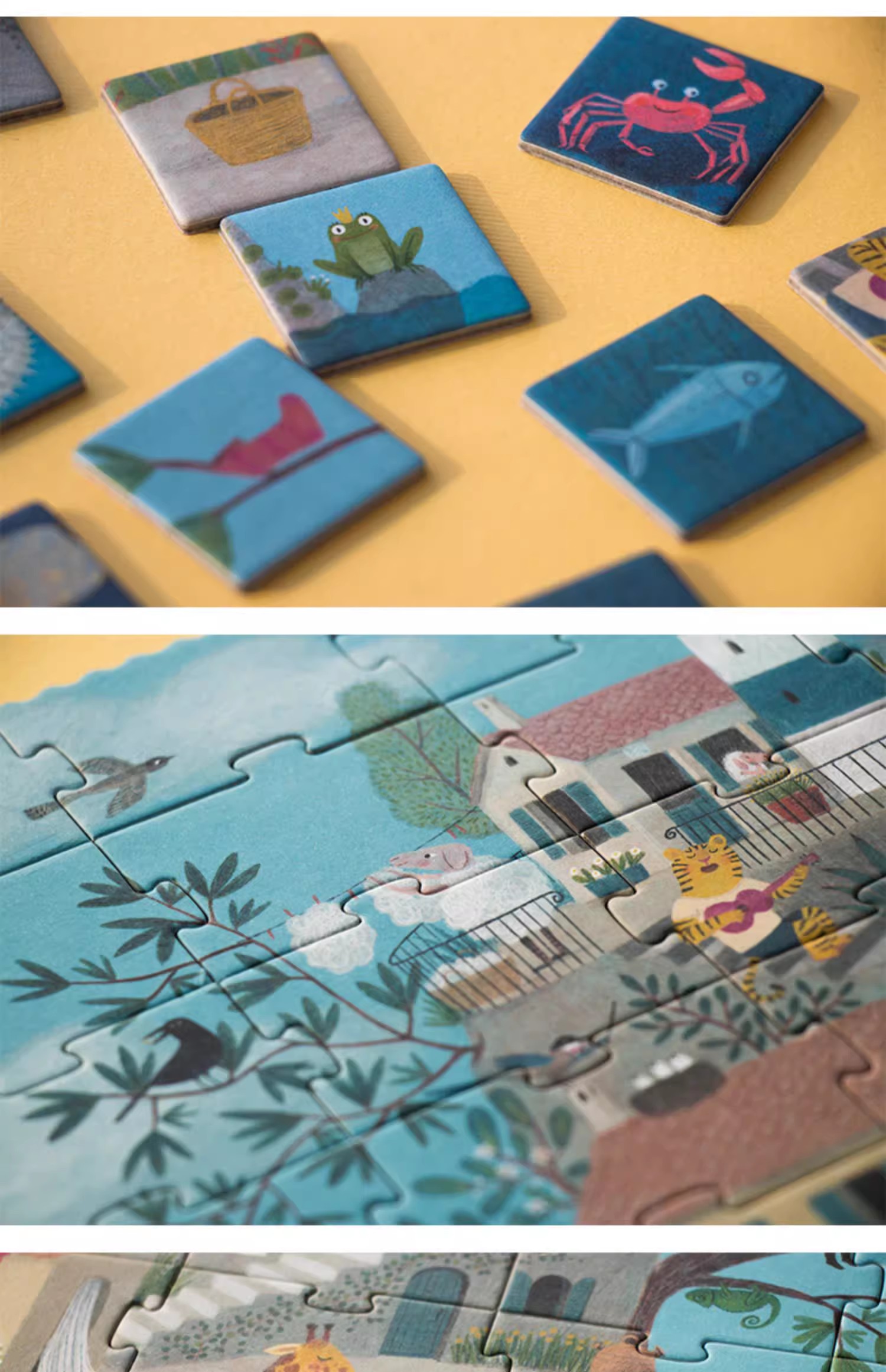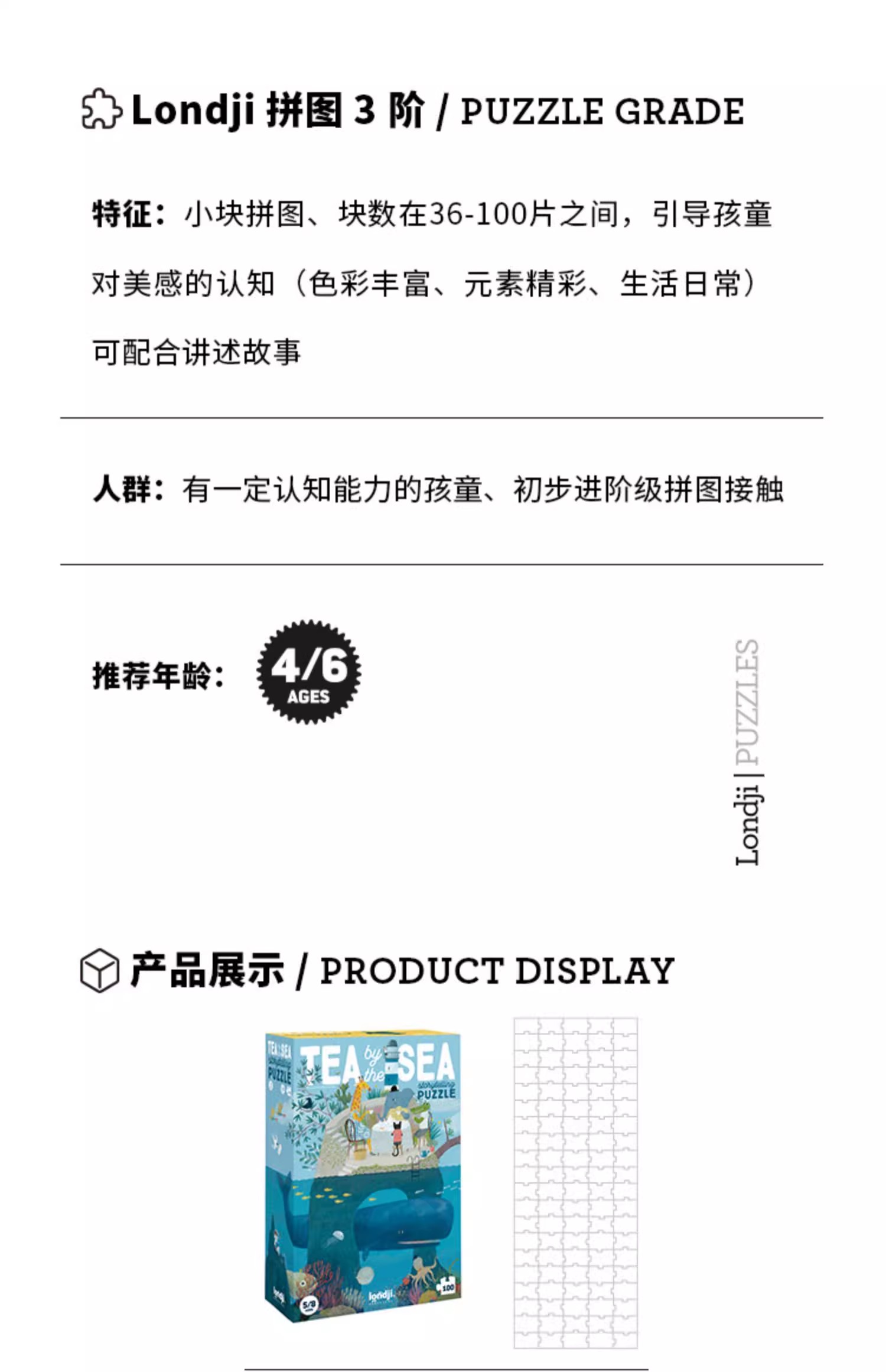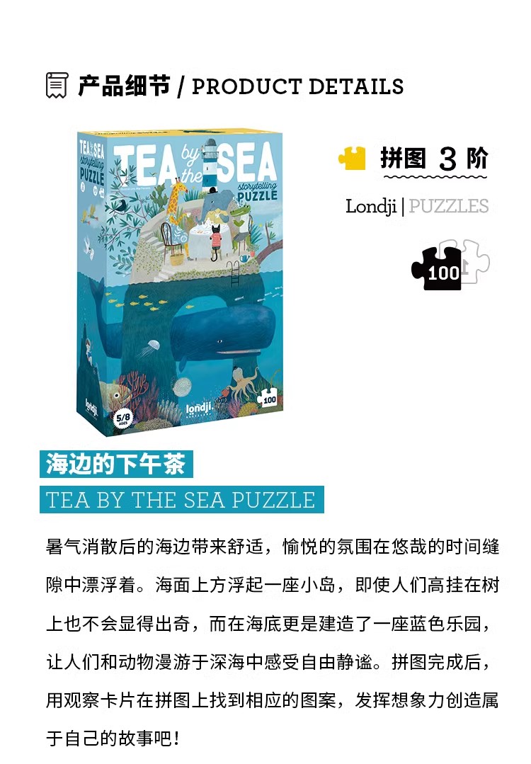 londji西班牙拼图三阶海边下午茶陆地海洋认知故事玩具4岁起男女