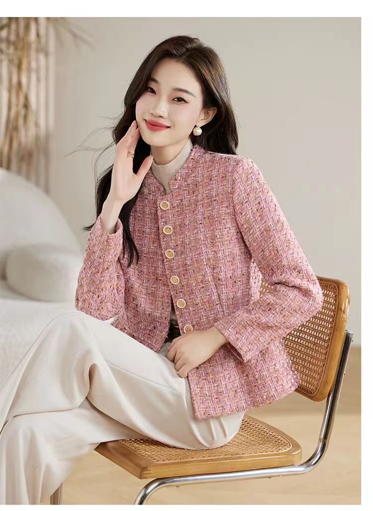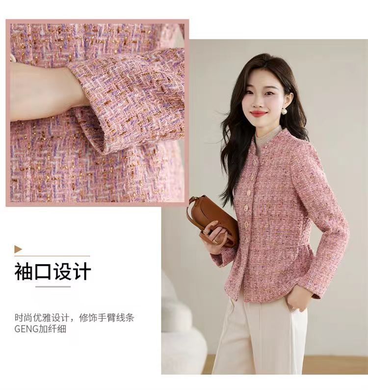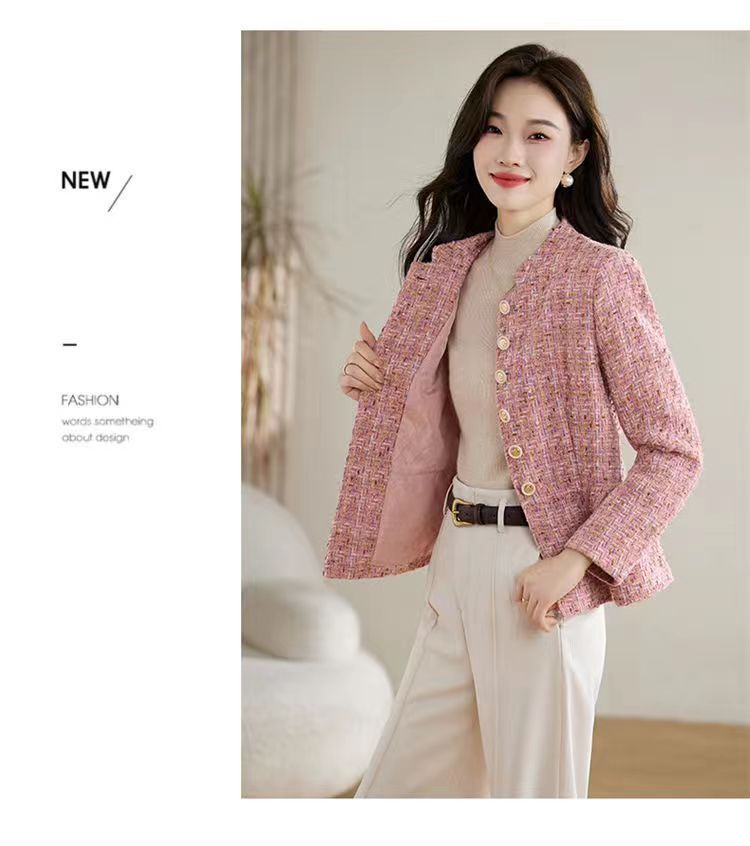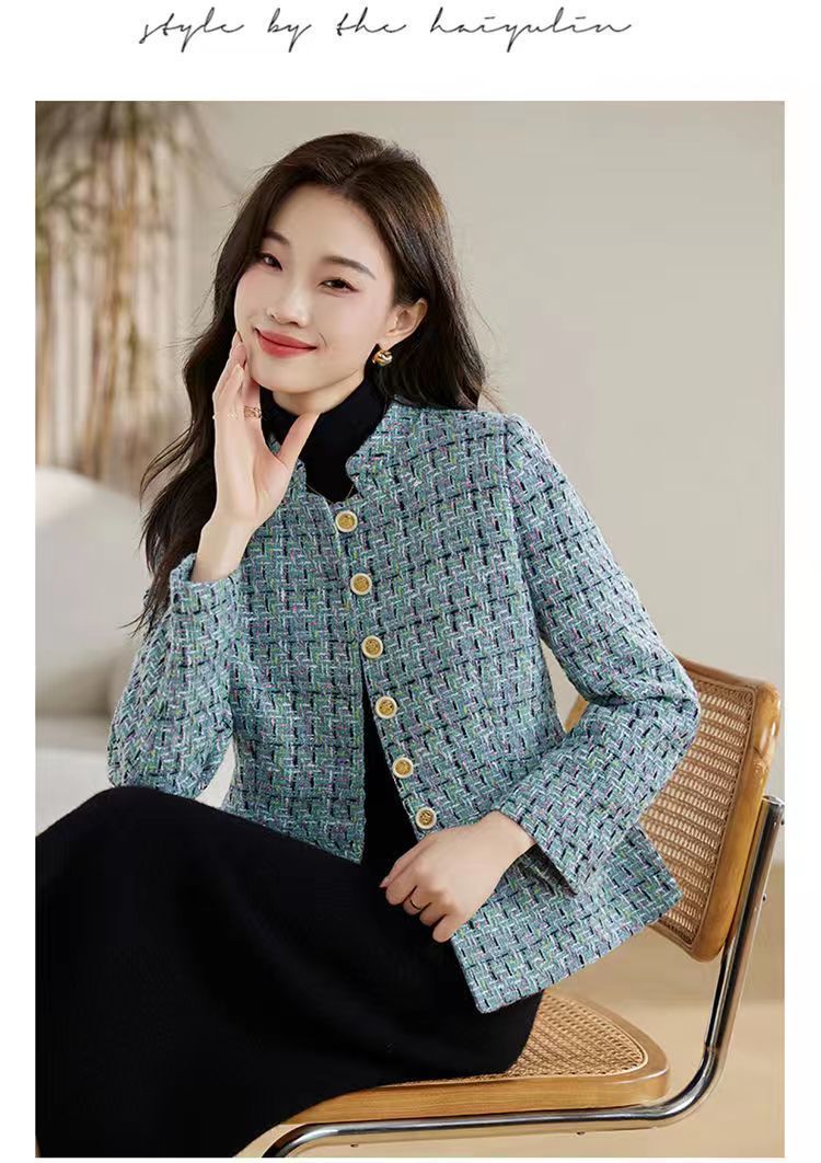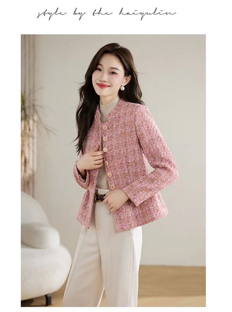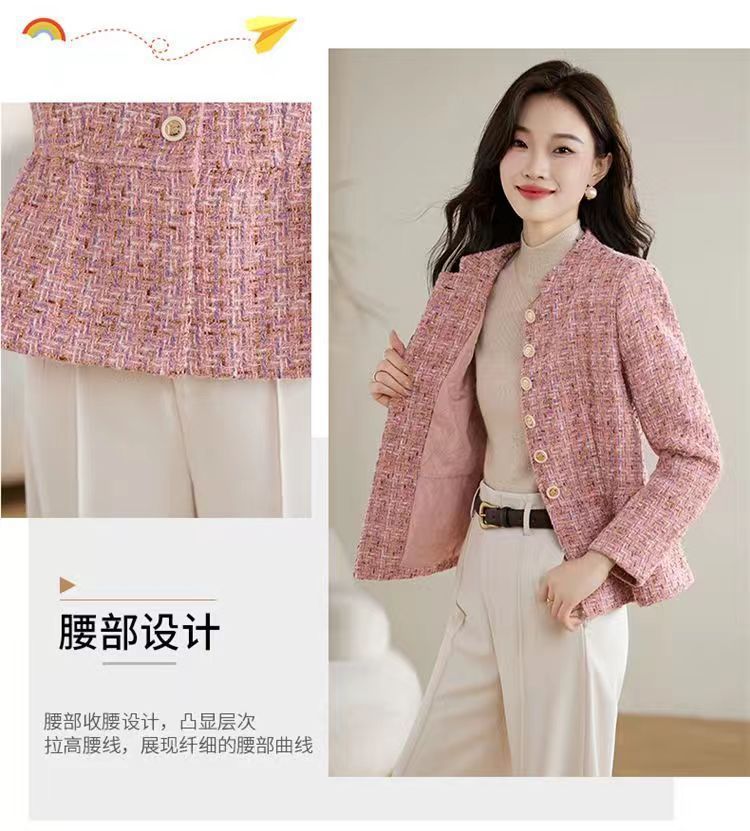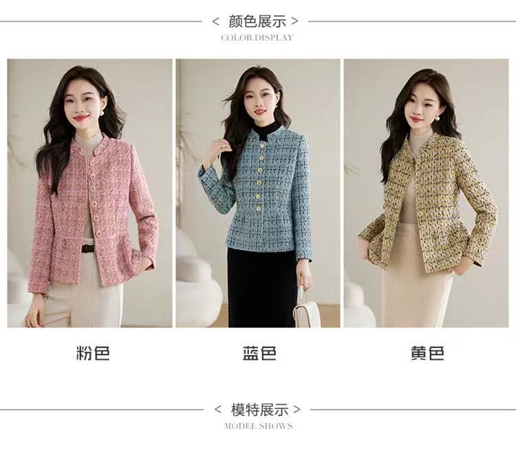 雀说新款时尚小香风外套女高级感气质百搭粗花呢短款长袖上衣AL8889