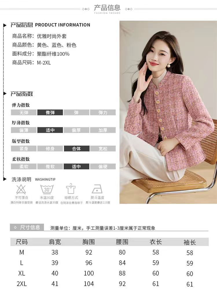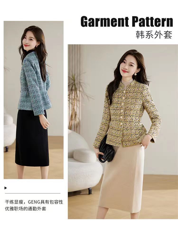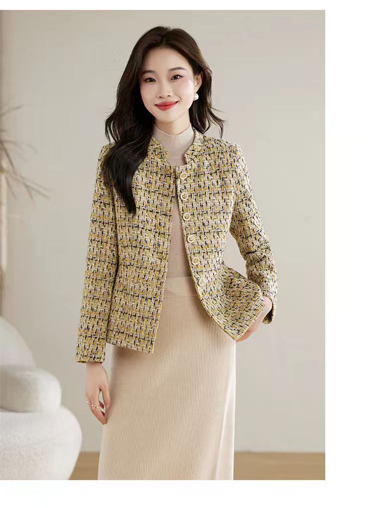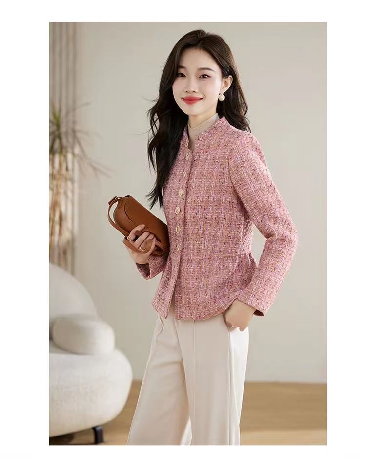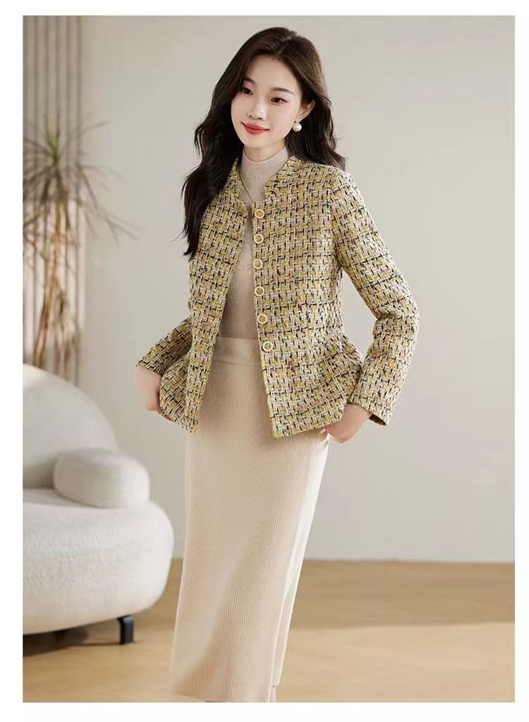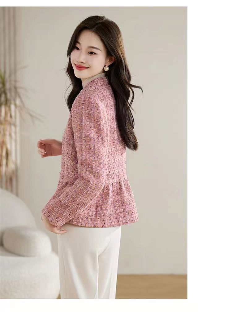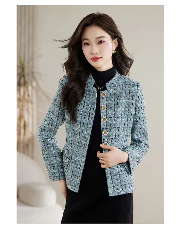 雀说新款时尚小香风外套女高级感气质百搭粗花呢短款长袖上衣AL8889