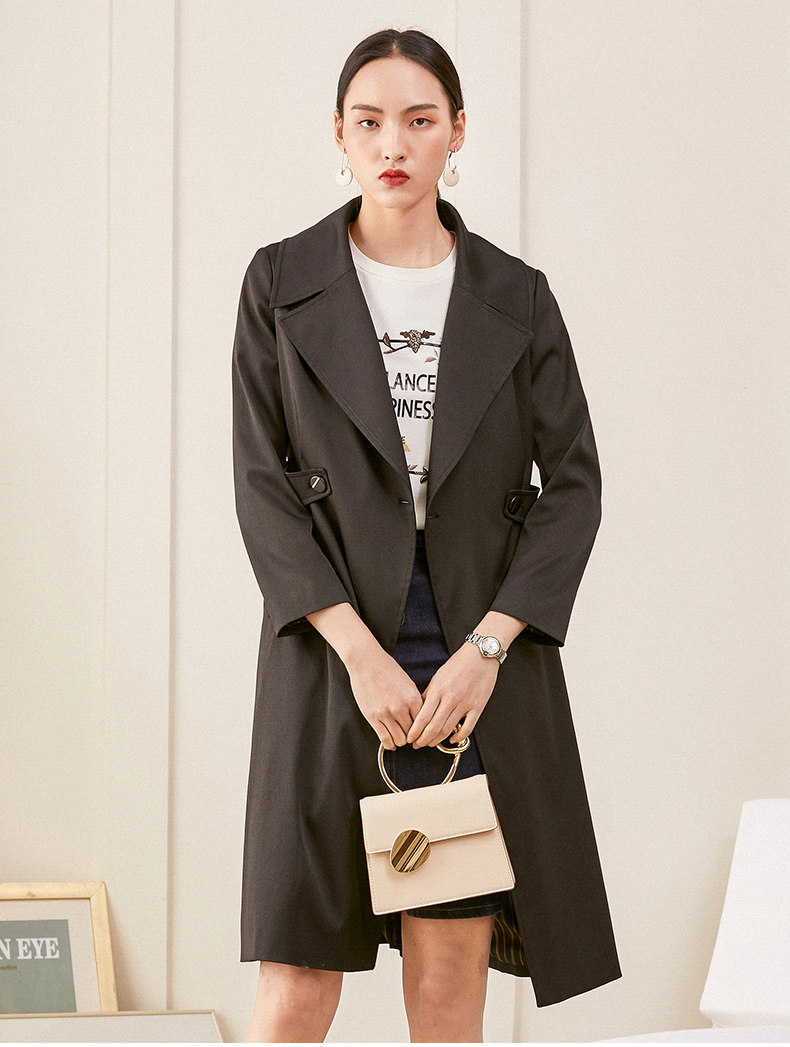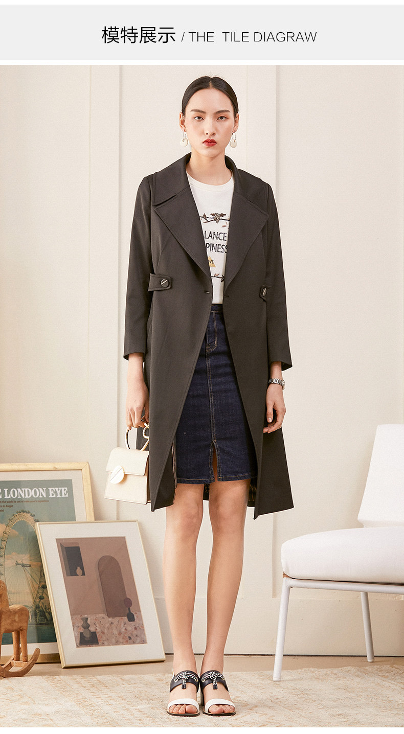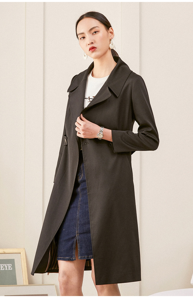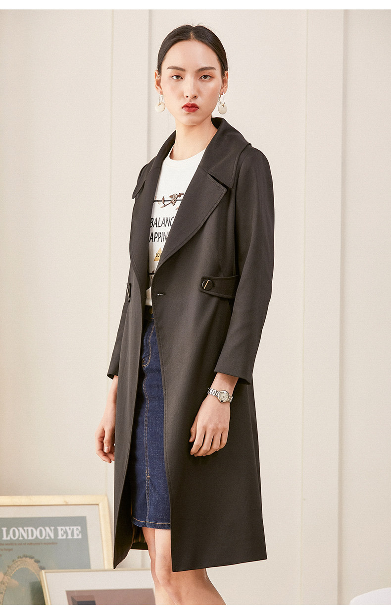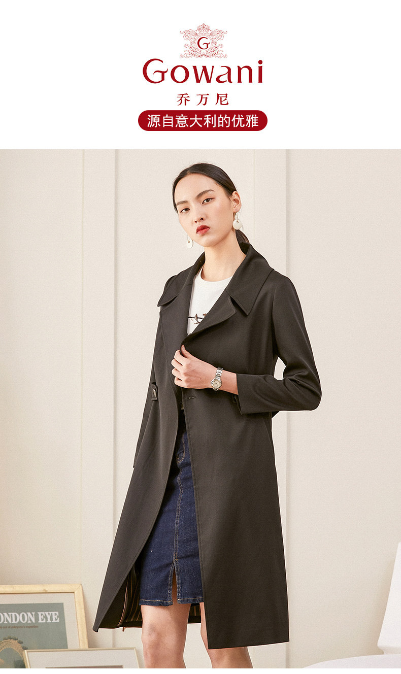 乔万尼风衣女春季新款修身英伦风长款过膝直筒休闲外套ES1A005