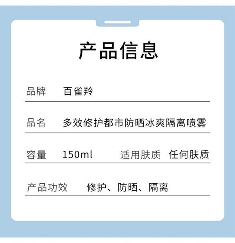 【买1瓶送1瓶】百雀羚 多效修护都市防晒冰爽隔离喷雾(试用装)