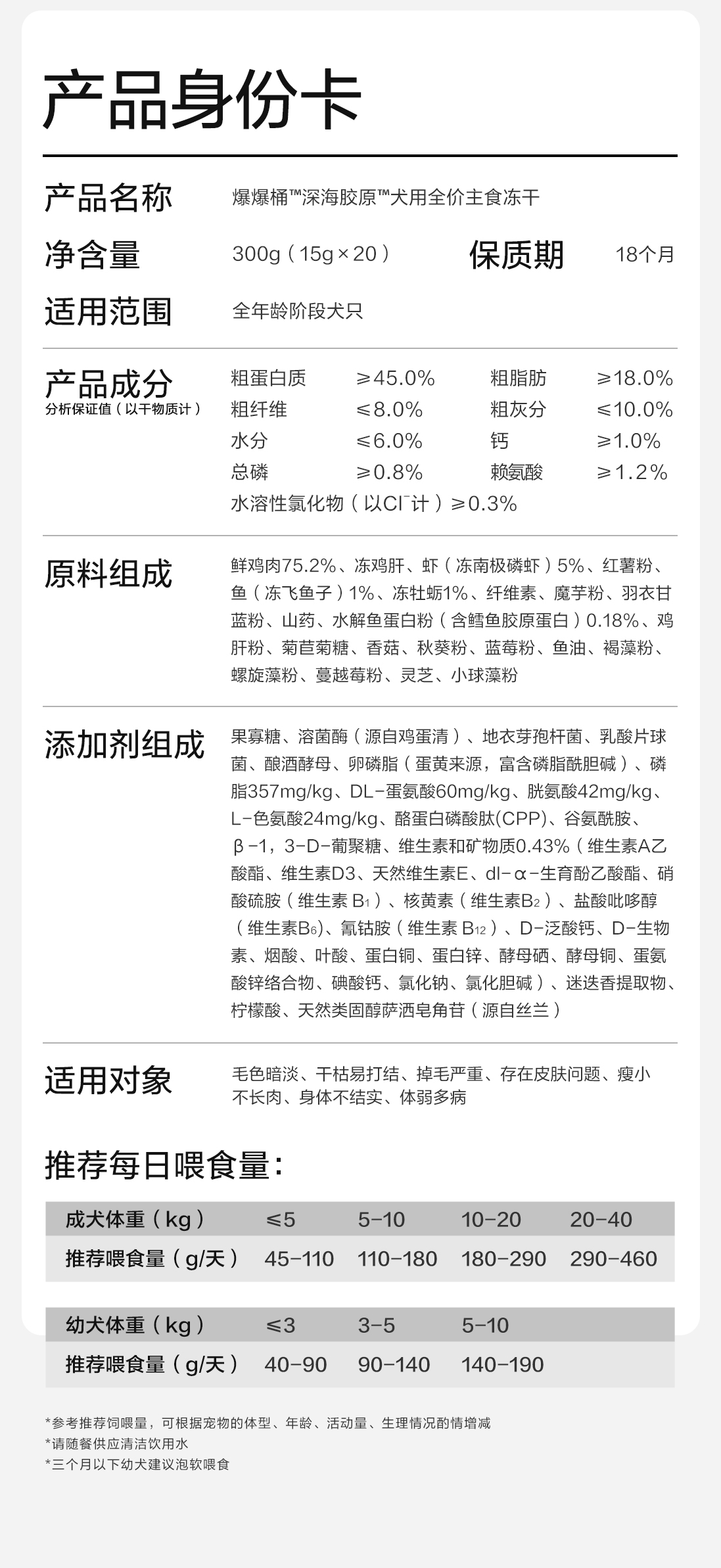 【买一送一】卫仕爆爆桶狗狗主食冻干生骨肉犬用深海磷虾×鳕鱼×飞鱼子