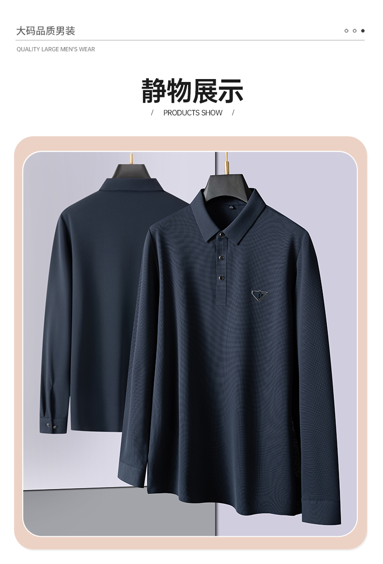 【新款DPS】大依优型大码长袖Polo衫翻领弹力加肥加大胖子上衣男士T恤肥佬打底男装