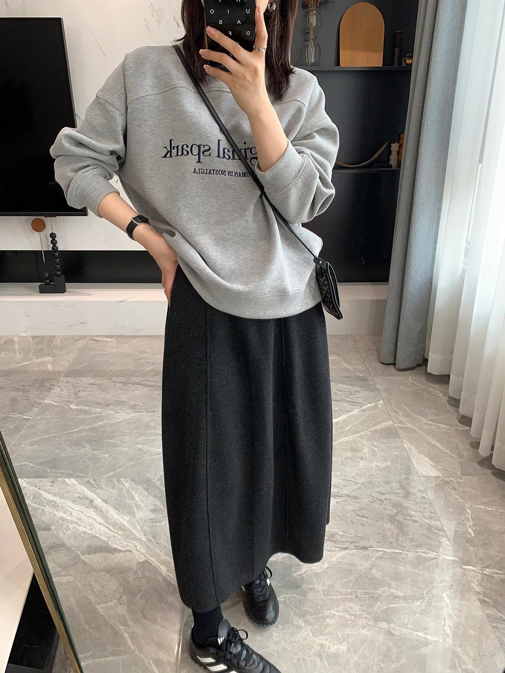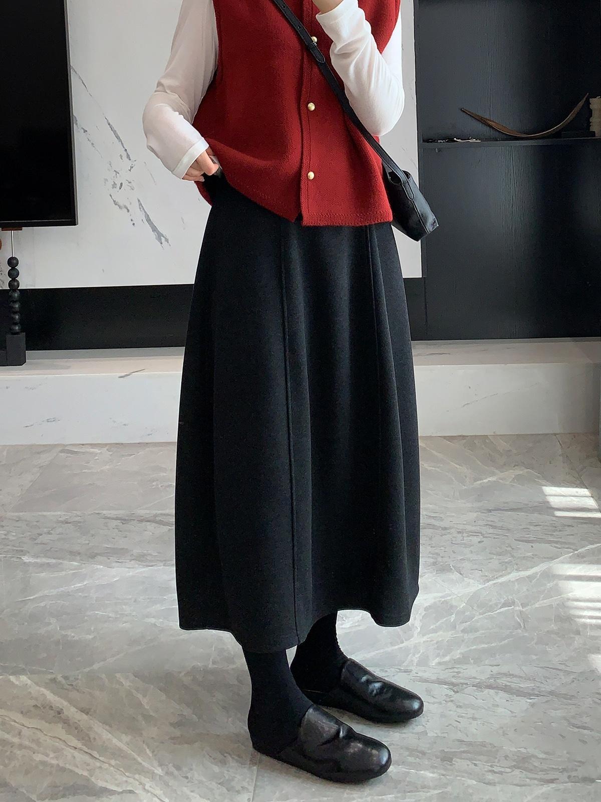 丁摩 必入半身裙秋冬醋酸羊毛A字高腰中长裙百搭花苞显瘦裙5ZF-11177