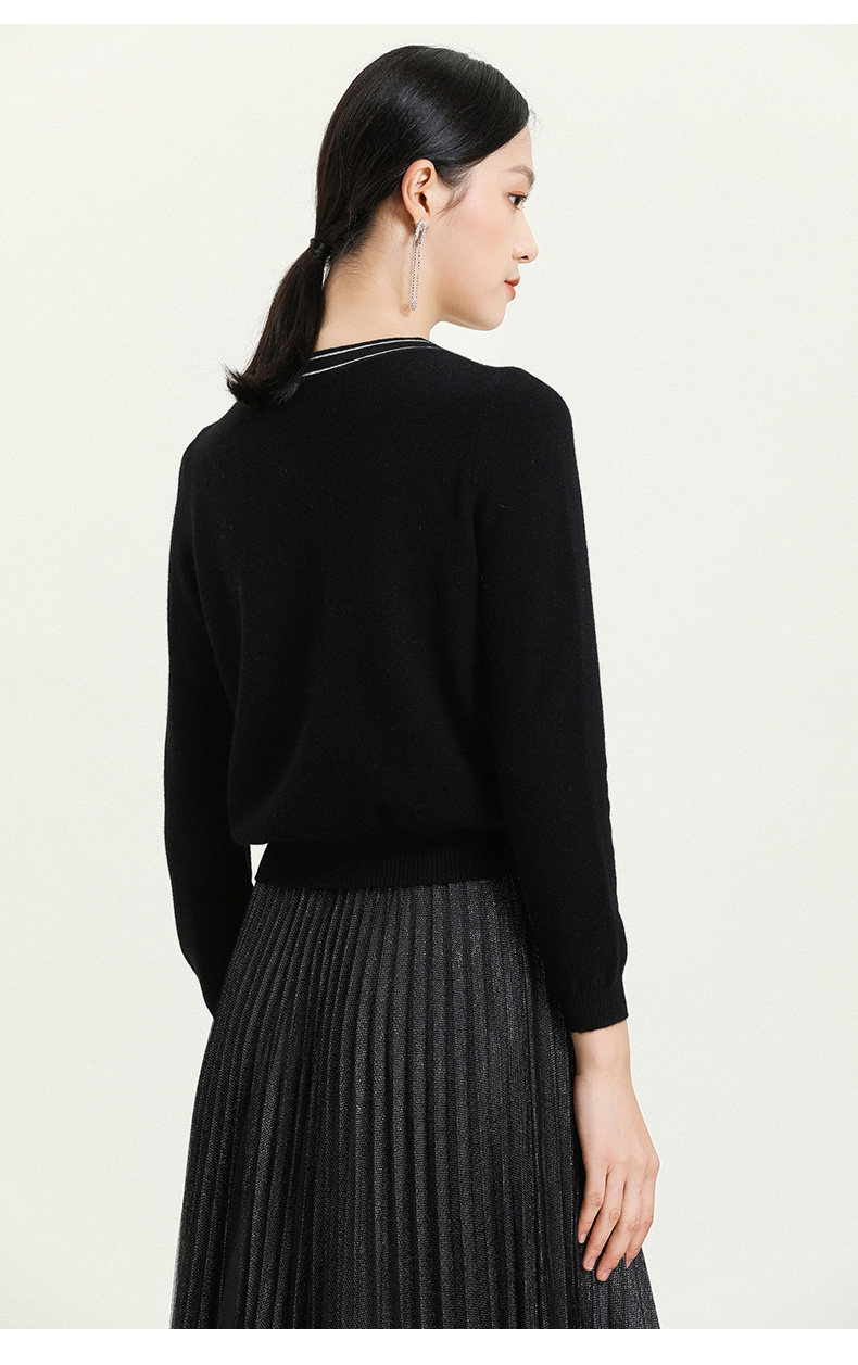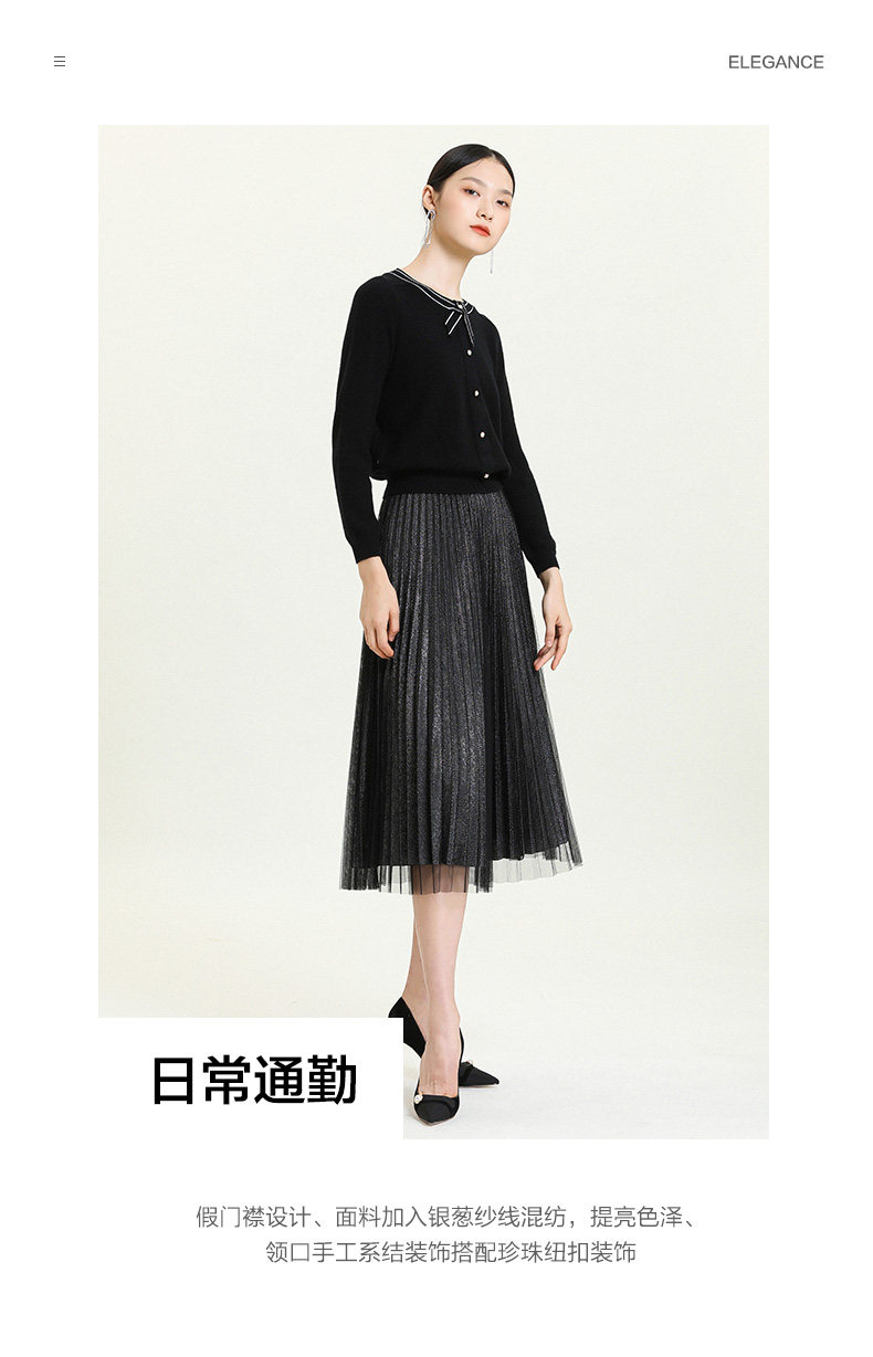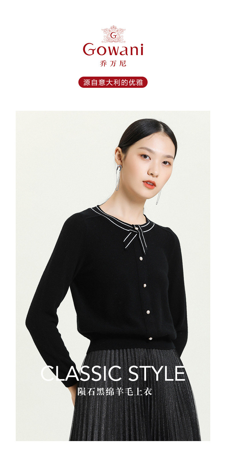 乔万尼新款100绵羊毛针织套头假门襟设计师款百搭上衣ES3M599