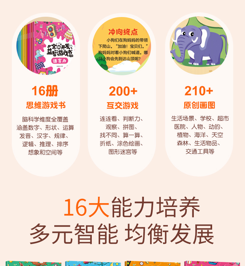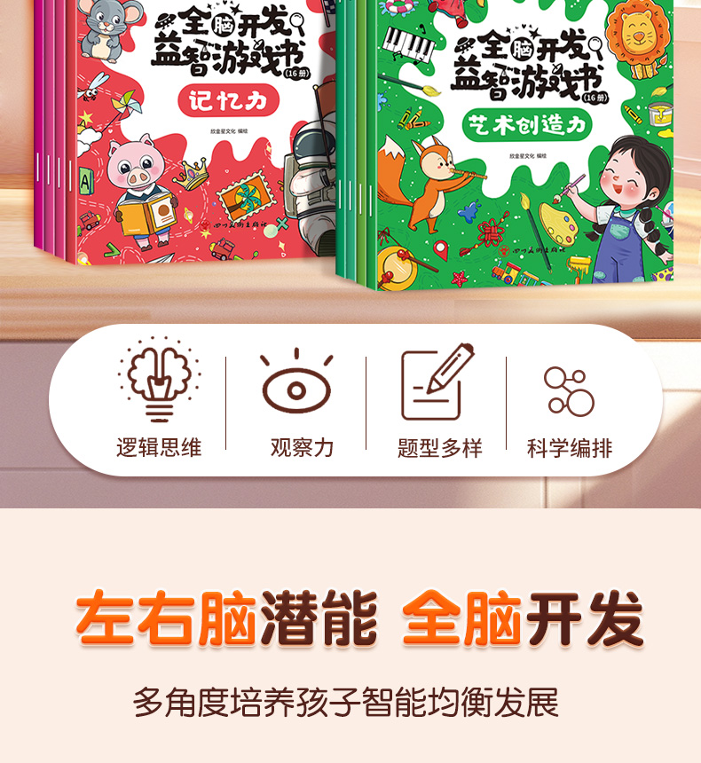 【3-7岁】全脑开发益智游戏 (全16册) 助力宝宝益智思维启蒙开发