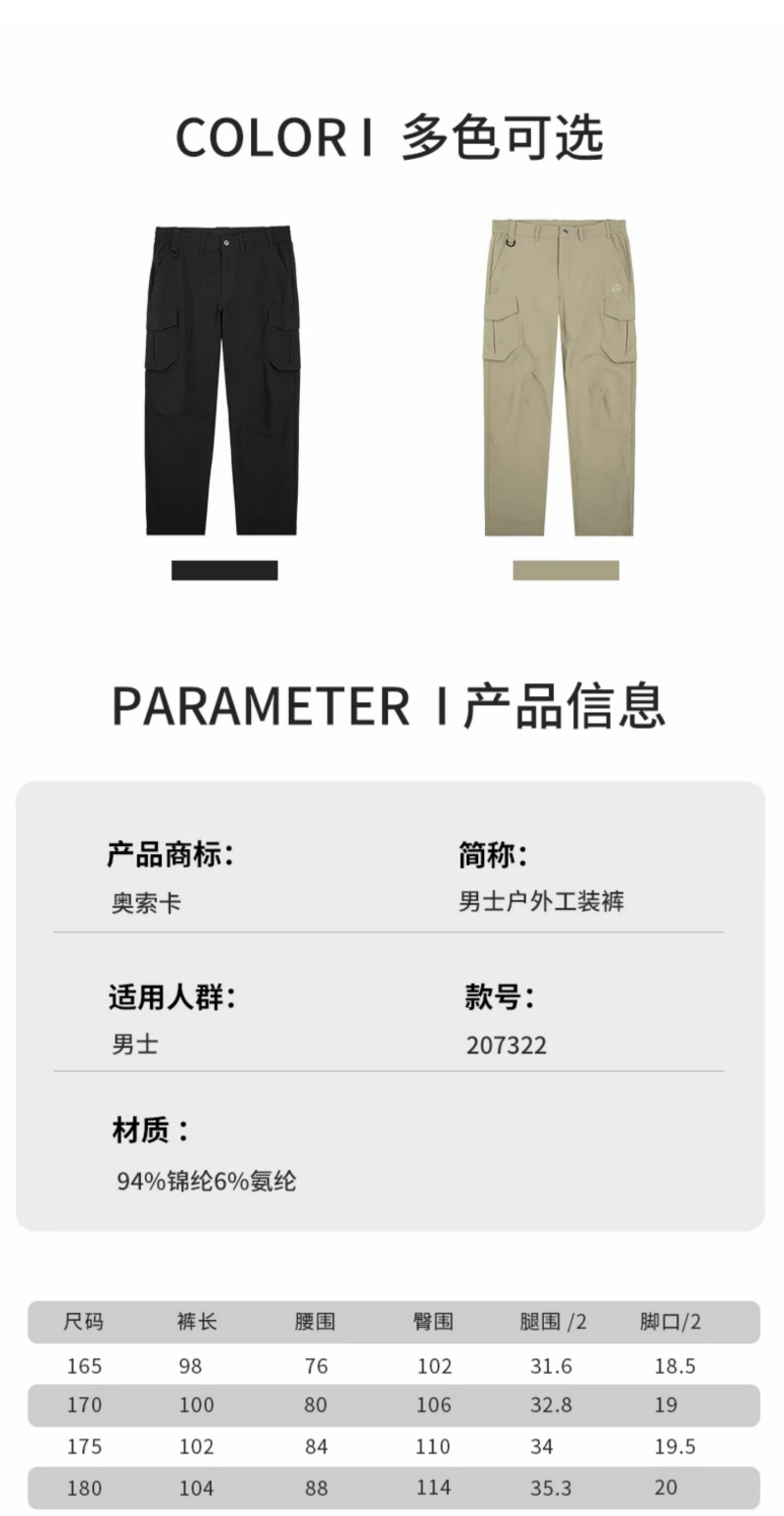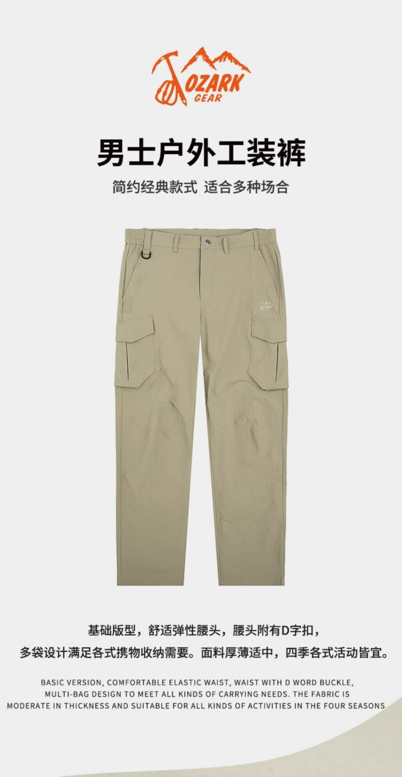 OZARK/奥索卡户外工装裤男士夏季新款多口袋设计稿休闲长裤207322