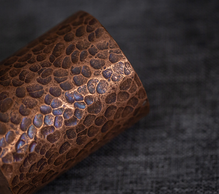 器物表面经由老师傅手工敲打,形成锤纹。
