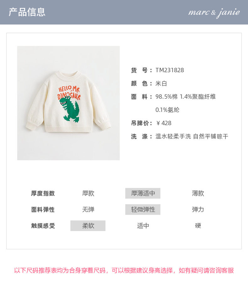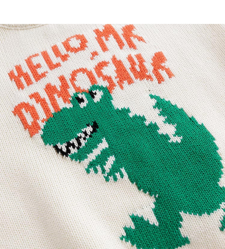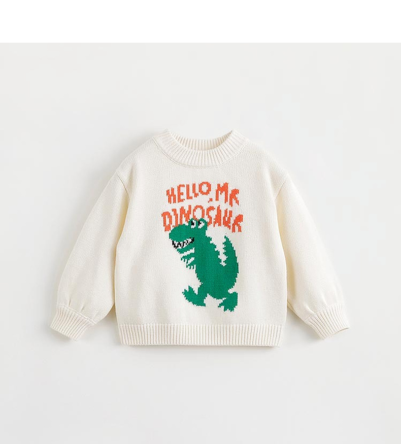 马克珍妮秋装新款 男童趣味恐龙提花宽松针织衫毛衣 231828