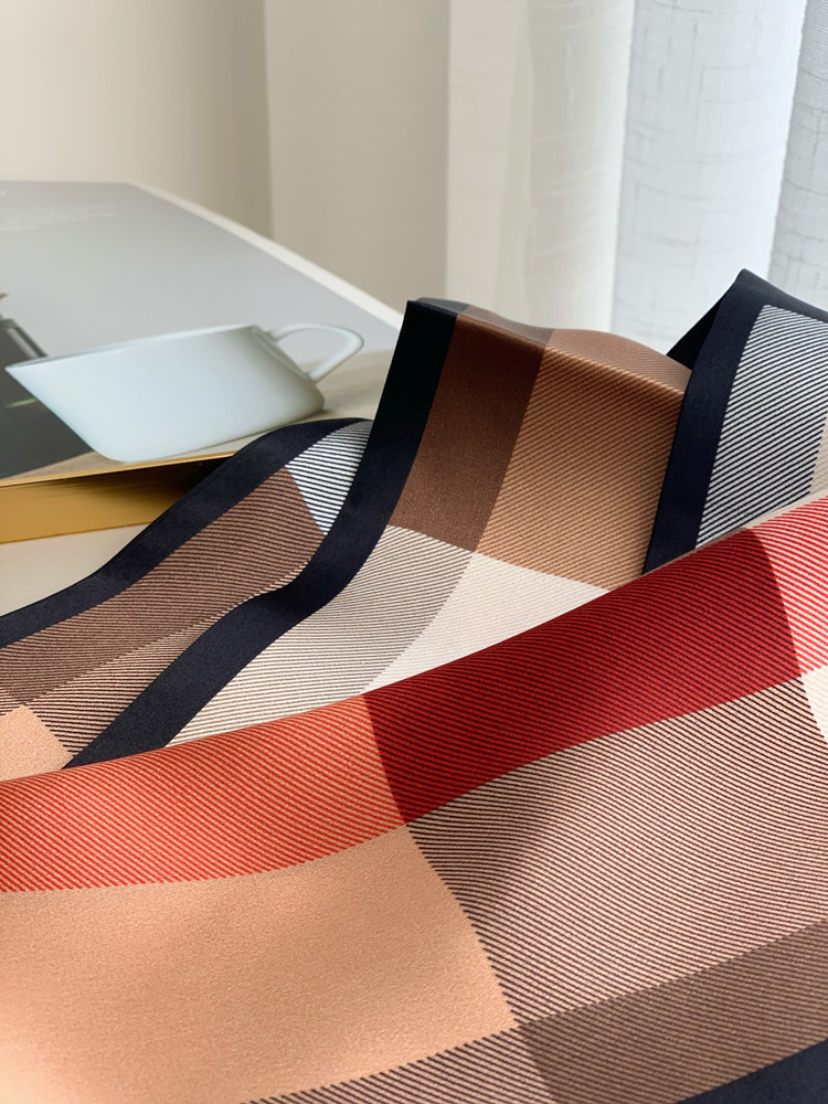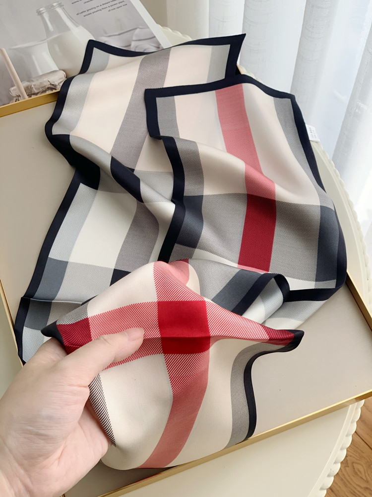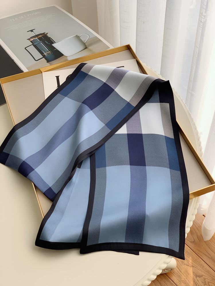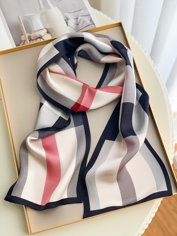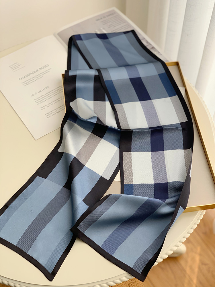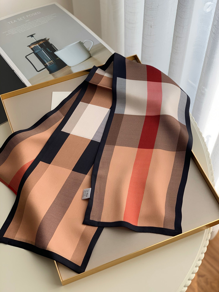 XL -TB660378377353英伦芭芭格子真丝飘带长条丝巾桑蚕丝围巾女春秋冬季双层领巾