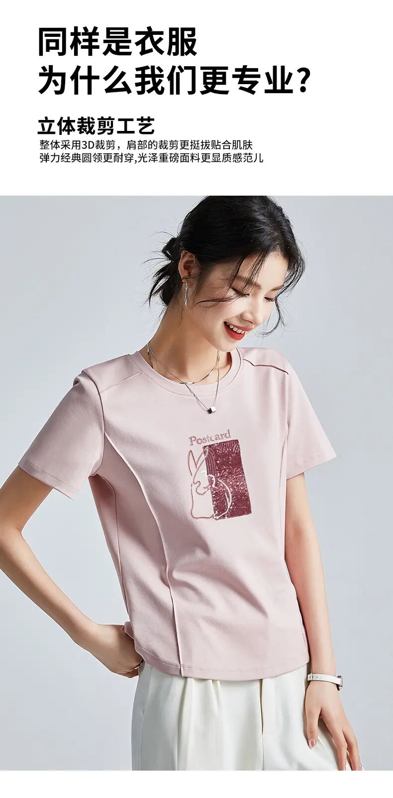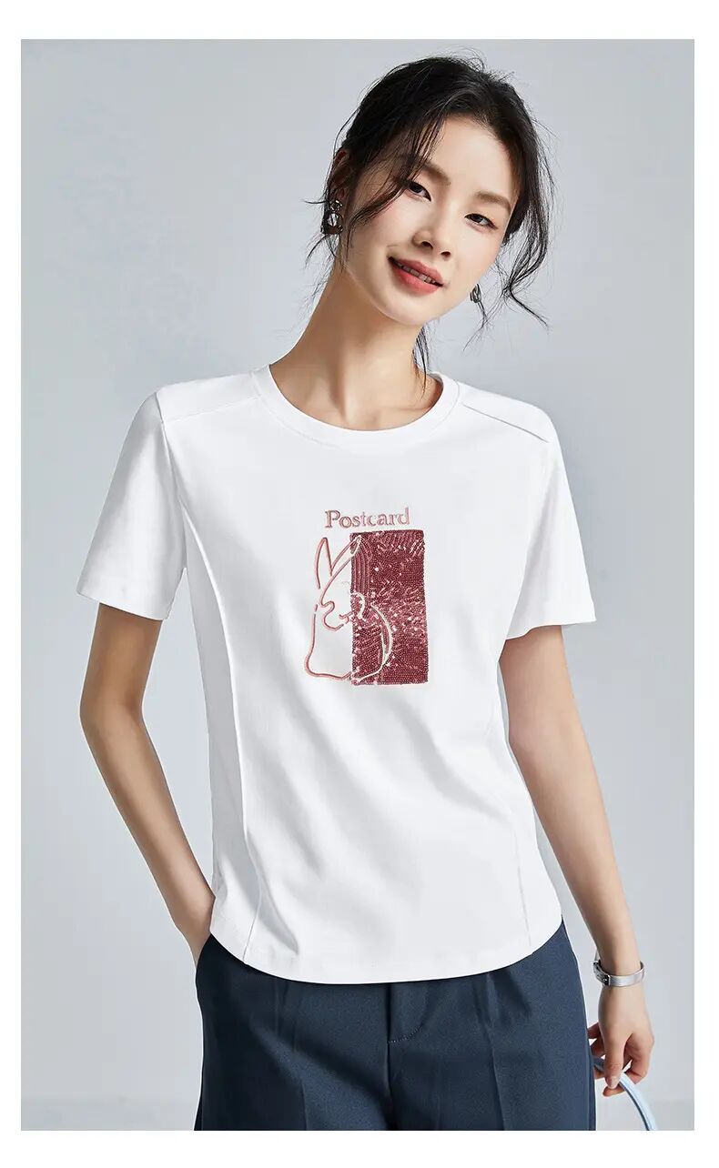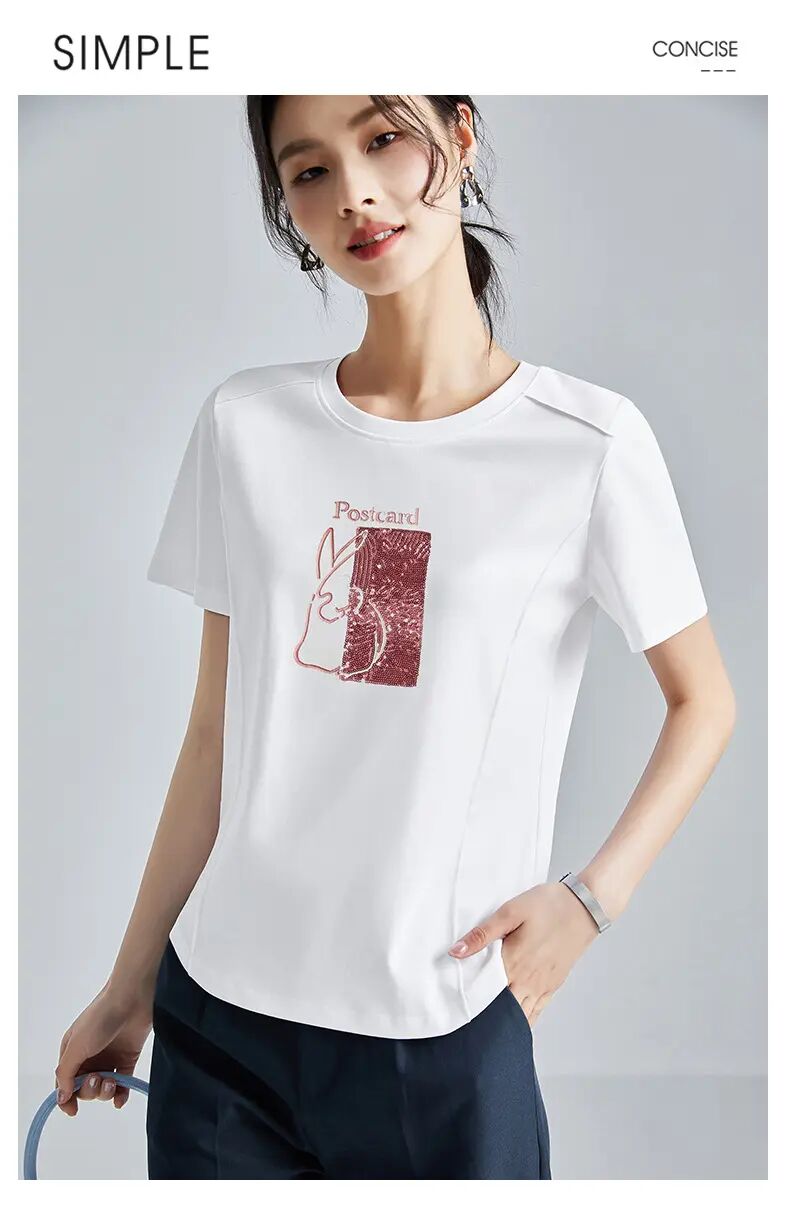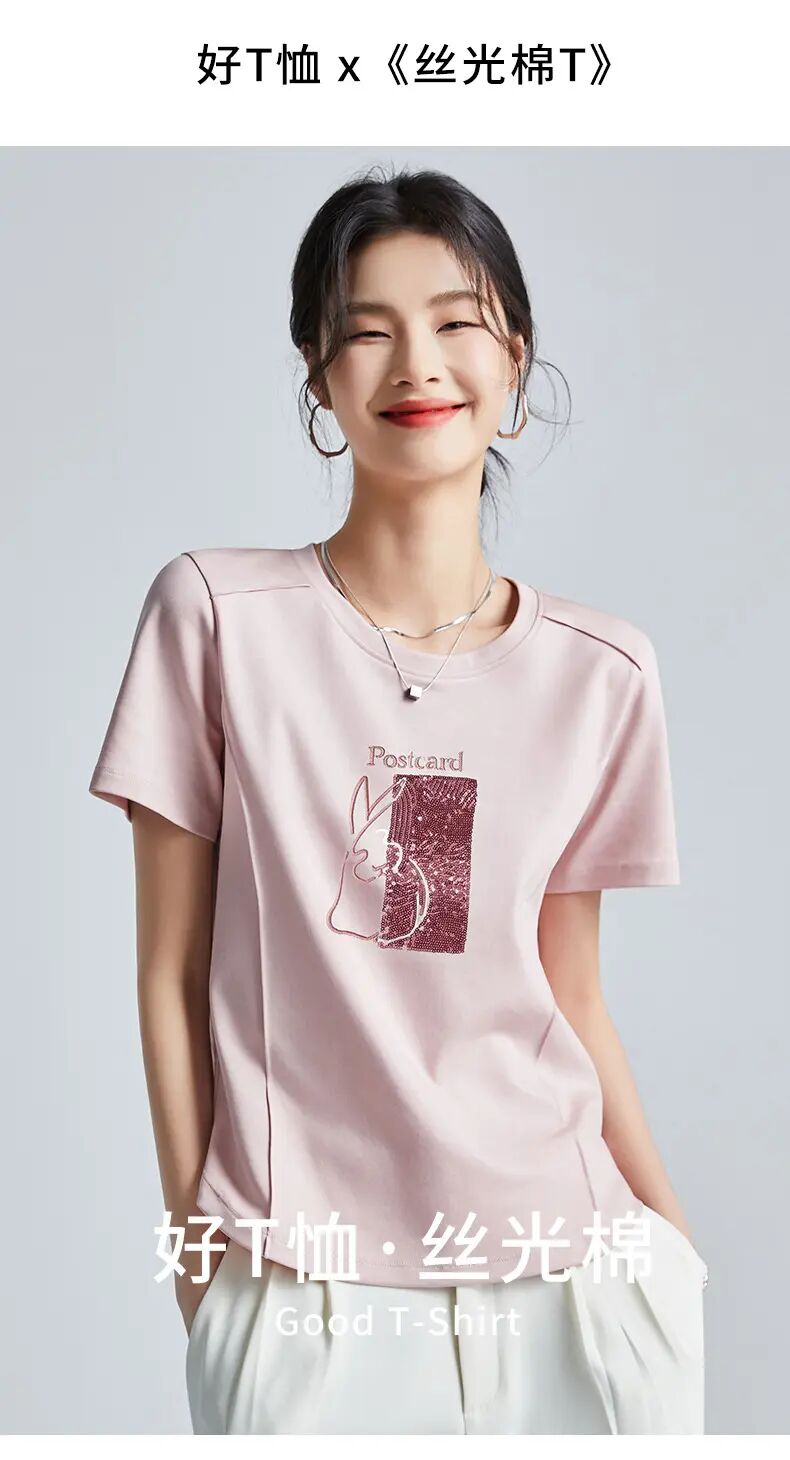 「自」全新升级【铂金会员109/天猫139/差价30】(12327)洛诗琳凉感丝光棉法式白色短袖T恤女夏季2025新款宽松刺绣圆领上衣