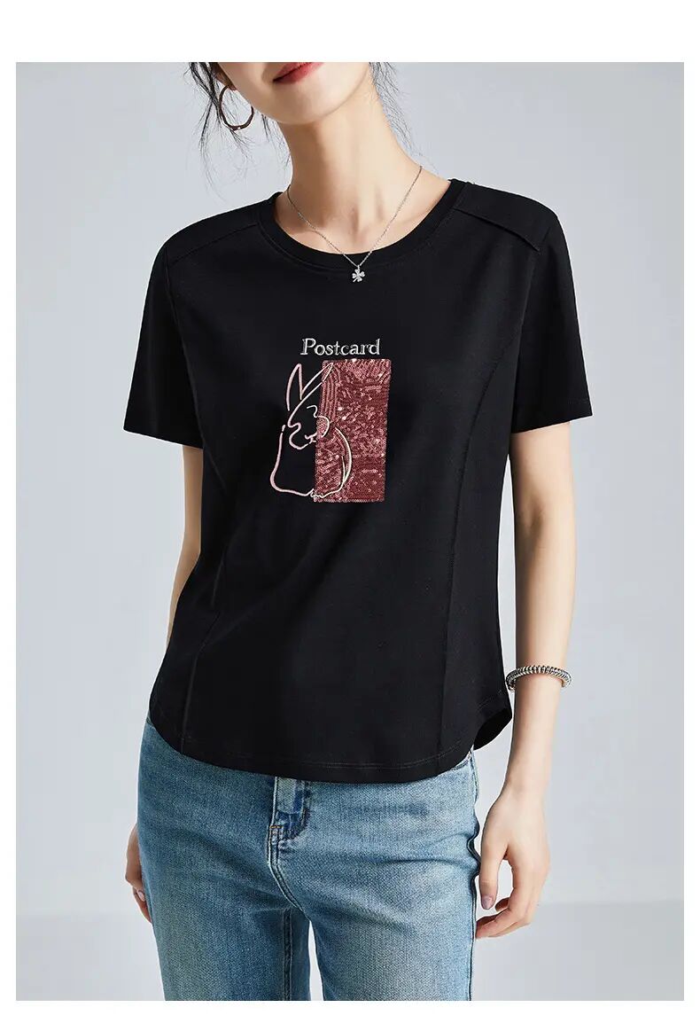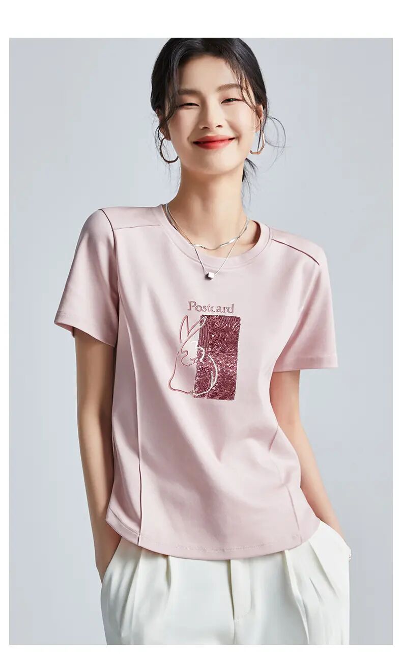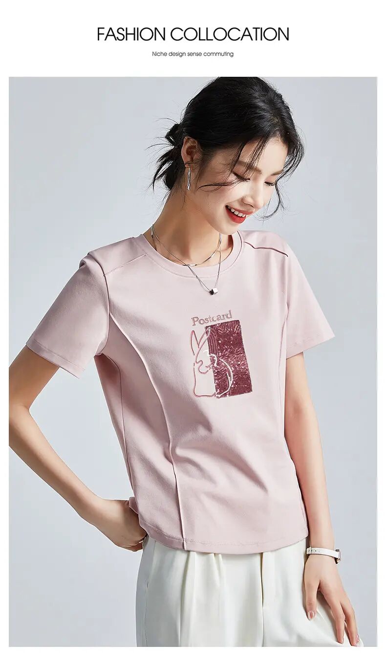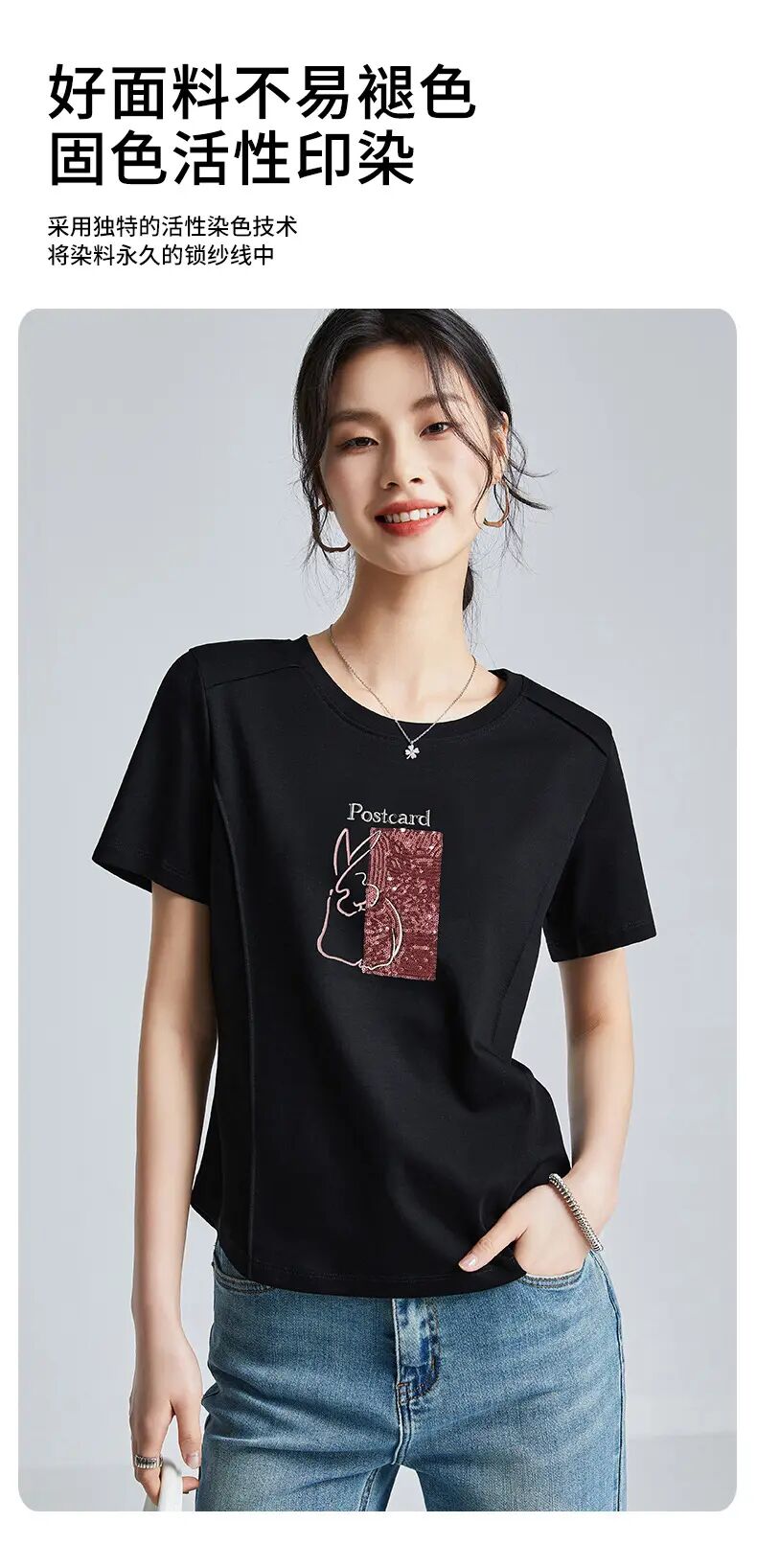 「自」全新升级【铂金会员109/天猫139/差价30】(12327)洛诗琳凉感丝光棉法式白色短袖T恤女夏季2025新款宽松刺绣圆领上衣